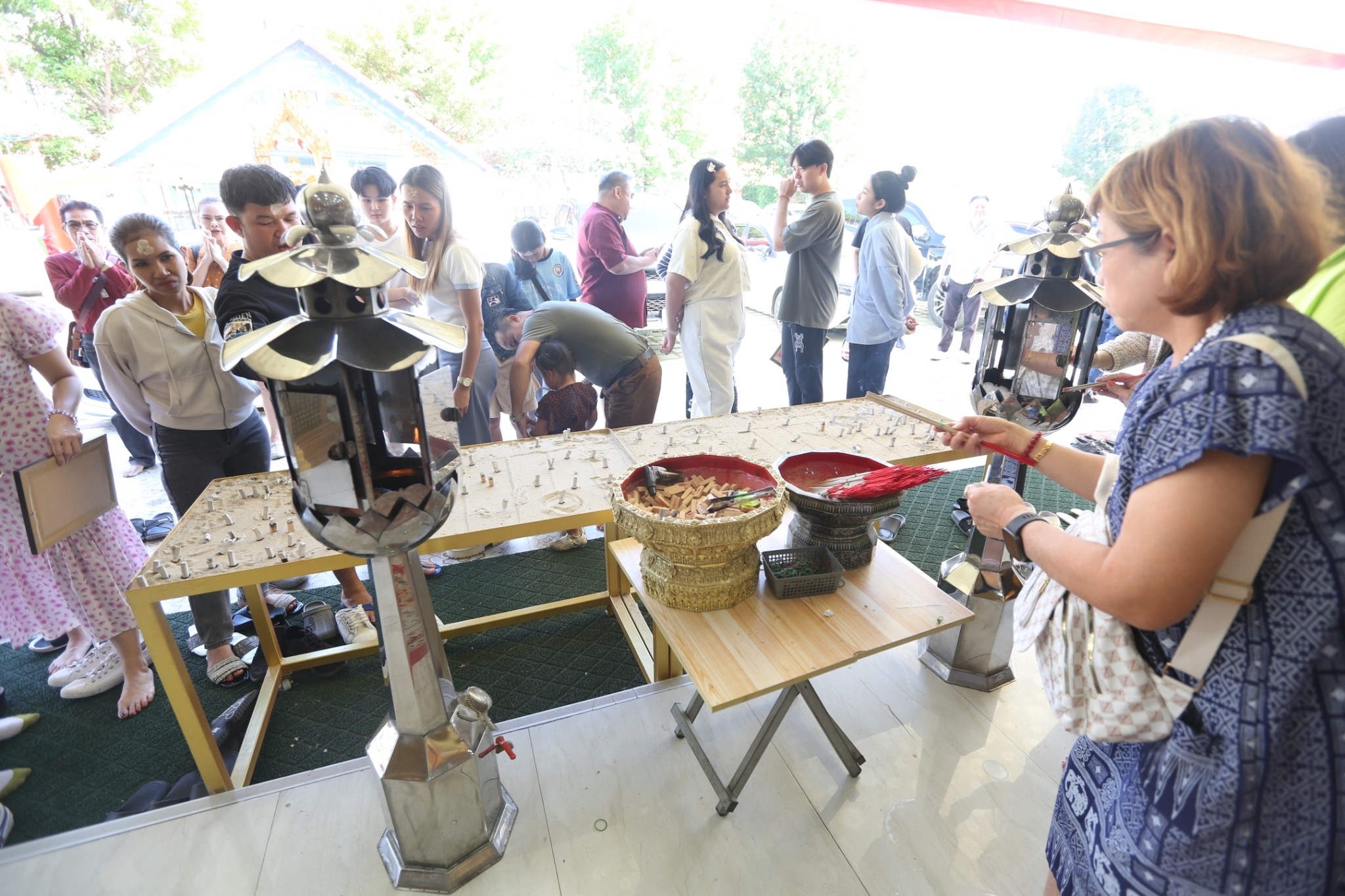 โดยที่บริเวณหน้าวิหารหลวงพ่อพูล วัดไผ่ล้อม อำเภอเมือง จังหวัดนครปฐม ประชาชนโดยเฉพาะที่สังเกตุเห็นจะเป็นคนรุ่นใหม่หนุ่มสาว ได้ชักชวนพ่อแม่ญาติพี่น้องคนในครอบครัว เข้ามาทำบุญและมีการมากราบไหว้ขอโชค และขอมงคลในการทำชีวิตให้เฮงปัง รับการทำงาน ที่จะมีขึ้นอีกไม่กี่วัน ซึ่งที่บริเวณจุดที่น่าสนใจคือที่ตำหนักกุมารสมบัติ ได้มีประชาชนเข้ามาจุดธูปเพื่อกราบไหว้ขอพร โดยเฉพาะการจุดธูปซึ่งจะมีการเสี่ยงโชคเป็นเลขสามหลัก ประจำธูปผู้ที่นิยมการเสี่ยงโชคต่างพากันมาจุดธูปเสี่ยงทายเพื่อหวังหาตัวเลขเนื่องจากจะมีการออกรางวัลสลากกินแบ่งรัฐบาลงวดประจำวันที่ 2 มกราคม 2568 ที่จะถึงนี้