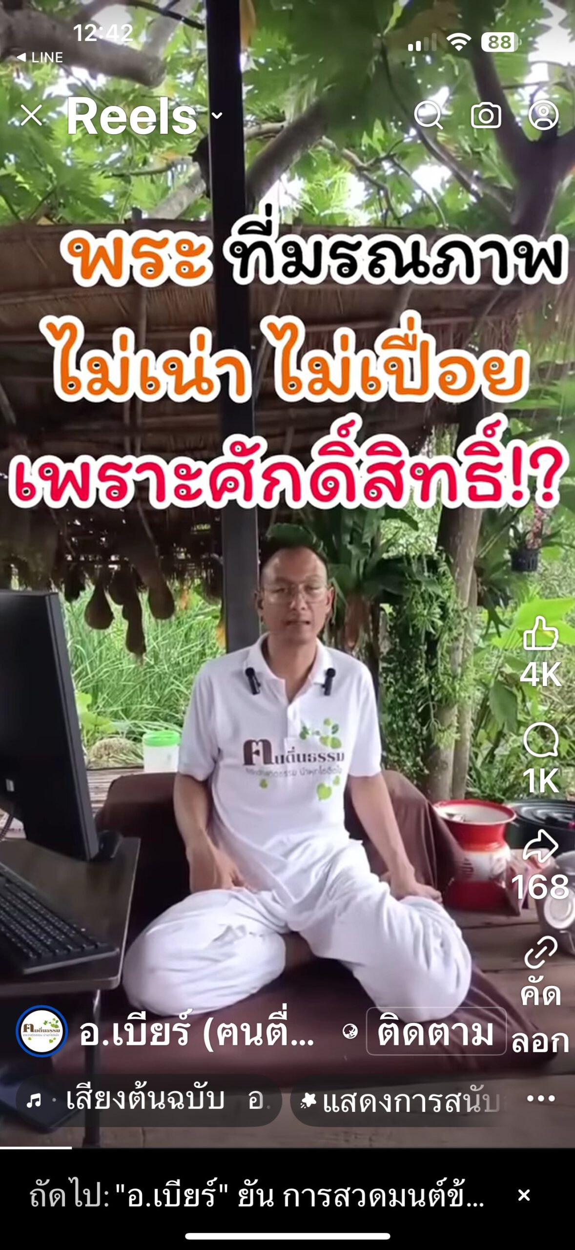 วันที่ 3 มกราคม 68 จากประเด็นร้อนแรงรับต้นปี เมื่อปรากฏมีคลิบ บนโซเชียลเพจ อ.เบียร์ (คนตื่นธรรม) ได้ปรากฏข้อความ ” พระที่มรณภาพ ไม่เน่า ไม่เปื่อย เพราะศักดิ์สิทธิ์ ?” โดยมีภาพและเสียง อ.เบียร์ ได้อ่านข้อความจากคำถามบนหน้าเพจ ซึ่งได้ตอบคำถามว่า “ศักดิ์สิทธิ์ห่าอะไรล่ะ หมาก็มีนะที่ไม่เน่าเปื่อย อันนี้กูไม่ได้ดูถูกครูบาอาจารย์นะ ครูบาอาจารย์ที่มีดีเยอะแยะไม่เกี่ยว อันนี้กูพูดถึงความเห็นต่าง ร่างกายไม่เน่าเปื่อย ร่างกายไม่เน่าเปื่อยศักดิ์สิทธิ์เนี่ยศักดิ์สิทธิ์ มึงไปดูสิต่างประเทศเนี่ยที่ไม่เน่าไม่เปื่อยเนี่ยหมาแมว พี่ตายแล้วมันไม่เน่าน่ะไปหาดูสิ เอ้อ มันจะไปเกี่ยวห่าอะไรกับศักดิ์สิทธิ์ มึงไปปรุงแต่งกันเอาเอง มีประเทศเดียวนี่แหละที่มากราบศพมากราบร่างกายที่ไม่เน่าไม่เปื่อย ไปสนใจอยู่แต่กับของทิ้งแล้วของครูบาอาจารย์ ครูบาอาจารย์ท่านทิ้งแล้วพวกมึงเอามากราบไหว้กัน เป็นของทิ้งนั่นน่ะ ใช่หรือเปล่า เอ้อ” จากนั้นคลิปก็ได้ตัดจบลงไป