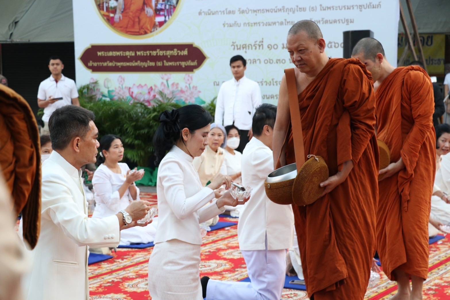 วันที่ 10 มกราคม 2568 เวลา 07.00 น. นายอรรษิษฐ์ สัมพันธรัตน์ ปลัดกระทรวงมหาดไทย เป็นประธานพิธีตักบาตรและบรรยายธรรม “โครงการร้อยใจไทยสืบสานราชธรรมทั้งแผ่นดิน” ถวายเป็นพระราชกุศลแด่พระบาทสมเด็จพระเจ้าอยู่หัว เพื่อเฉลิมพระเกียรติเนื่องในโอกาสมหามงคลเฉลิมพระชนมพรรษา 6 รอบ 72 พรรษา ณ ลานหน้าพระร่วงโรจนฤทธิ์ องค์พระปฐมเจดีย์ อ.เมืองนครปฐม จ.นครปฐม โดยได้รับเมตตาจากพระเดชพระคุณพระราชวัชรสุทธิวงศ์ (เจ้าคุณอารยวังโส) เจ้าอาวาสวัดป่าพุทธพจน์หริภุญไชย (ธ) ในพระราชูปถัมภ์ฯ เป็นประธานสงฆ์และบรรยายธรรมบูชาคุณพระรัตนตรัยและประกาศราชธรรม โดยมี นางจิณณารัชช์ สัมพันธรัตน์ นายกสมาคมแม่บ้านมหาดไทย นายสันติธร ยิ้มละมัย รองปลัดกระทรวงมหาดไทย นางดวงกมล ยิ้มละมัย นางจิรวรรณ เพ็ญพาส นางกัญญา จุนถิระพงศ์ อุปนายกสมาคมแม่บ้านมหาดไทย ร่วมในพิธี พร้อมด้วย นางสาวอโรชา นันทมนตรี ผู้ว่าราชการจังหวัดนครปฐม พร้อมด้วยนายยงยุทธ สวนทอง นายปรีชา ดิลกพรเมธี และนายอรรถวุฒิ พึ่งเนียม รองผู้ว่าราชการจังหวัดนครปฐม ได้นำหัวหน้าส่วนราชการ นายอำเภอ ภาคส่วนต่าง ๆ และพุทธศาสนิกชน ร่วมในกิจกรรมเป็นจำนวนมาก