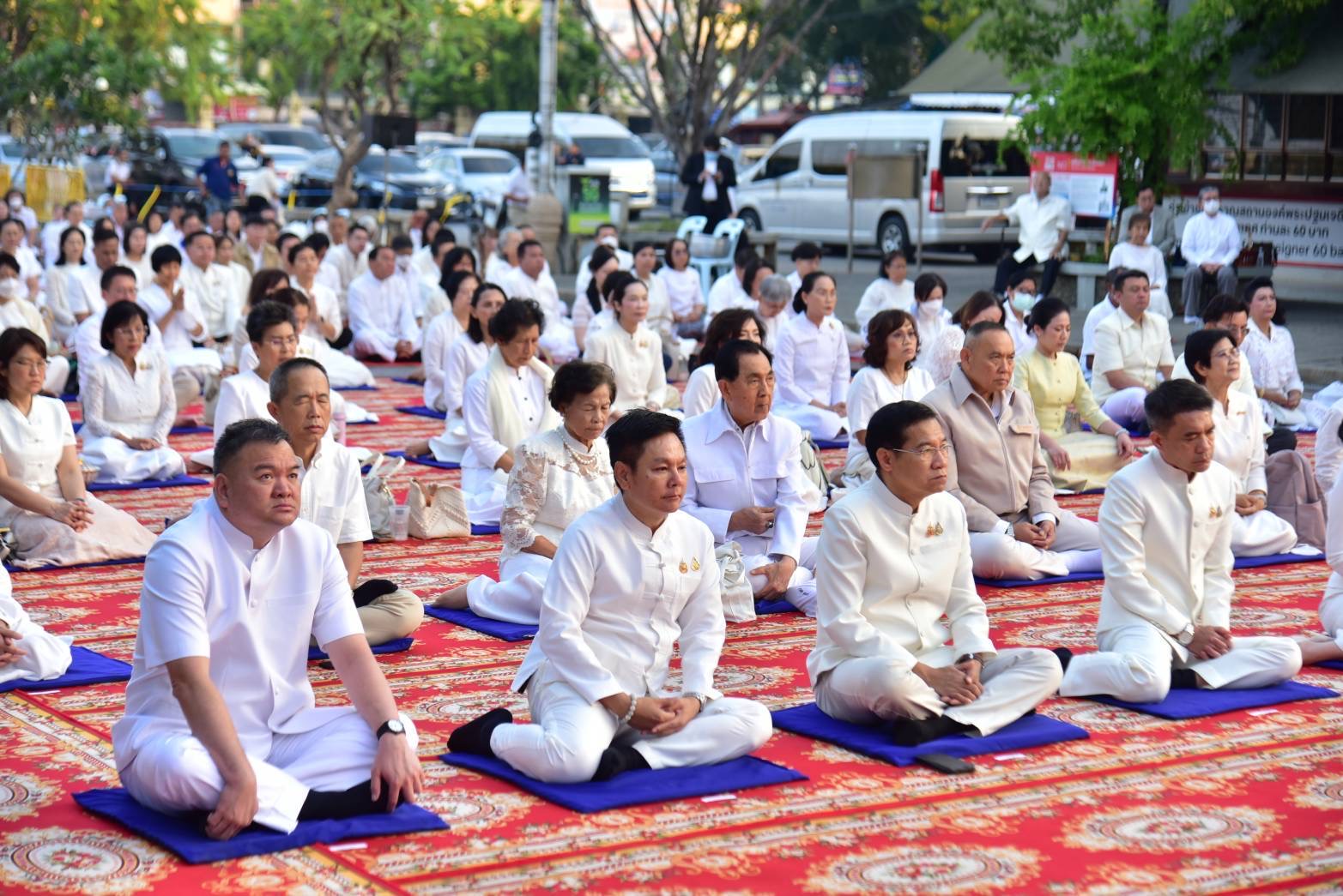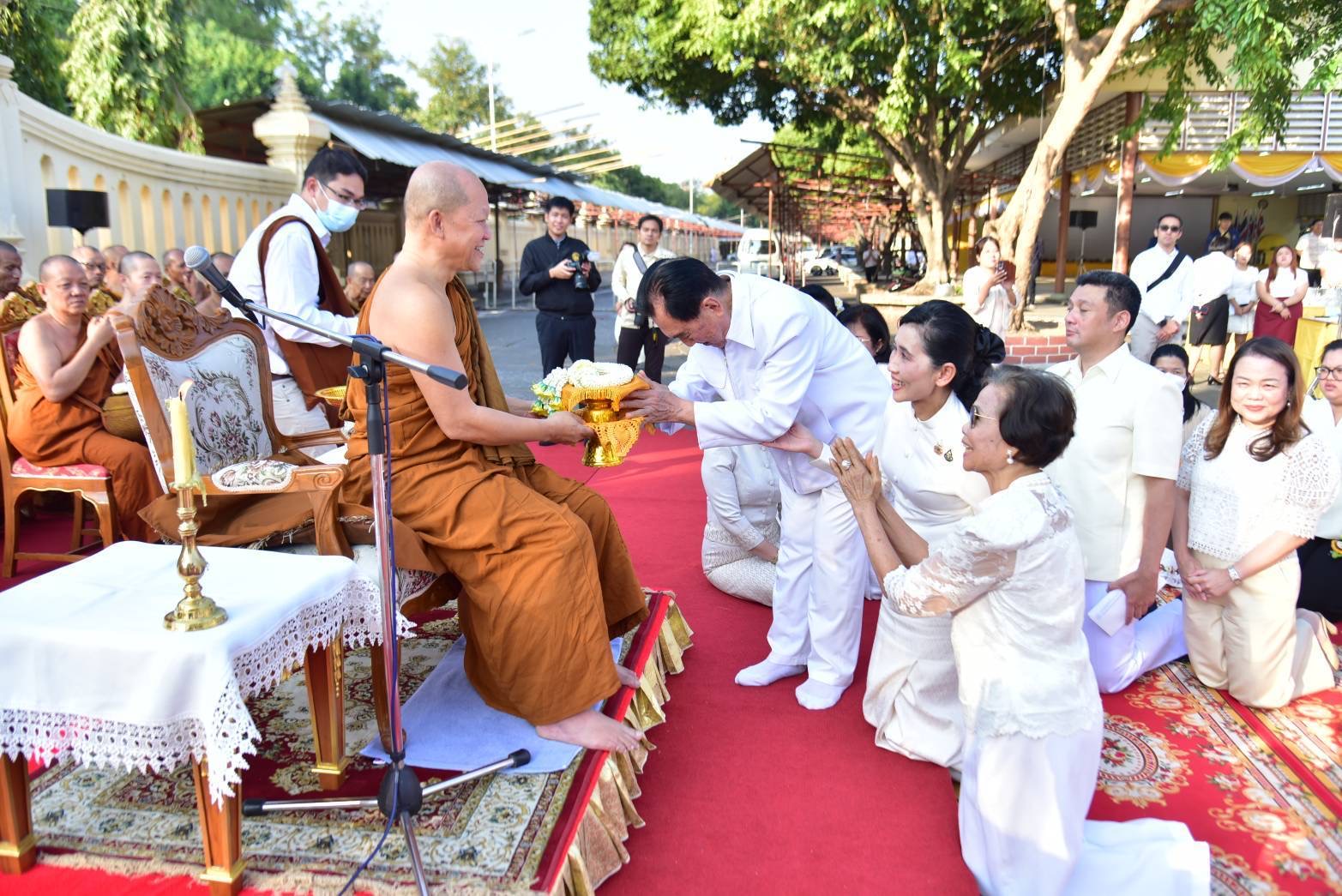 โอกาสนี้ พระราชวัชรสุทธิวงศ์ กล่าวสัมโมทนียกถา ความตอนหนึ่งว่า ความศักดิ์สิทธิ์ของการปกครองเกิดขึ้นจากความจริงใจทั้งหลายของคนที่เคารพธรรม ด้วยแรงปรารถนาอยากให้บ้านเมืองมีความสงบสุข ผู้ประพฤติธรรม ผู้ปกครองแผ่นดินทั้งหลายต้องเคารพธรรม ต้องมีธรรม สร้างธรรมให้ประชาชน พรั่งพร้อมไพบูลย์ด้วยคุณธรรมและความดี ทั้งนี้ ด้วยบทบาทและหน้าที่ต้องใช้ธรรมะเป็นเครื่องกล่อมเกลาจิตใจให้เป็นผู้มีคำว่า “ให้” ประเทศชาติก็จะพ้นวิกฤตการณ์ได้ โดยการให้นั้น ต้องให้สิ่งที่ควรให้ ให้สิ่งที่ให้ได้ สิ่งที่มีประโยชน์กับผู้รับ เพื่อเขาจะได้กลับมาเป็นผู้มีศีลเช่นเดียวกับผู้ให้ รู้สิ่งที่ควรสงเคราะห์ รู้สิ่งที่ไม่ควรสงเคราะห์ เมื่อมีการให้ที่ถูกต้อง ก็จะสร้างความมีศีลขึ้นมา เรียกว่า “ให้ที่มีอารยธรรม” และท้ายที่สุดการระงับยับยั้งกิเลสก็จะเกิดขึ้น “การยับยั้งชั่งใจเป็นเรื่องใหญ่มาก ต้องควบคุมตนเองได้ ไม่หวั่นไหวต่อโลกธรรม ประพฤติปฏิบัติชอบ ซื่อตรงต่อธรรม ผู้นำและผู้ปกครองต้องมีตบะ ควบคุมความโกรธได้ ควบคุมความเกลียดได้ หากเกิดความโกรธเกลียดขึ้นกับใครก็แล้วแต่ เมื่อใครเห็นใครพบก็จะเกลียดเราเช่นกัน ต้องควบคุมกล่อมเกลาจิตใจตลอดเวลา ให้เมตตา ให้ความรักต่อเพื่อนทั้งหลายอย่างเสมอกัน ด้วยการแผ่เมตตา ต้องมีสัมปชัญญะเสมอ สิ่งที่ต้องมีและรักษาไว้ คือ ความดี สิ่งที่ต้องละทิ้ง คือ ความชั่ว และต้องยึดหลักความเพียรชอบอยู่เสมอ โดยไม่เสียศีลไม่ผิดธรรม ต้องไม่ผิดกฎหมาย ต้องไม่ผิดกฎของสังคมและกฎของธรรม ถ้ายึดธรรมไว้ อดทนอดกลั้น รับได้ทุกเรื่อง หาทางบริหารจัดการให้ได้โดยไม่ทำบาปไม่ทำผิด และไม่เบียดเบียนใคร ก็จะเป็นผู้นำและผู้ปกครองผู้มีราชธรรม ดังพระบาทสมเด็จพระบรมชนกาธิเบศร มหาภูมิพลอดุลยเดชมหาราช บรมนาถบพิตร และพระบาทสมเด็จพระเจ้าอยู่หัว ผู้ทรงพระคุณอันประเสริฐ ยึดเหนี่ยวจิตใจของประชาชนคนไทยทั้งปวง จึงเป็นที่มาของโครงการร้อยใจไทยสืบสานราชธรรมทั้งแผ่นดิน”