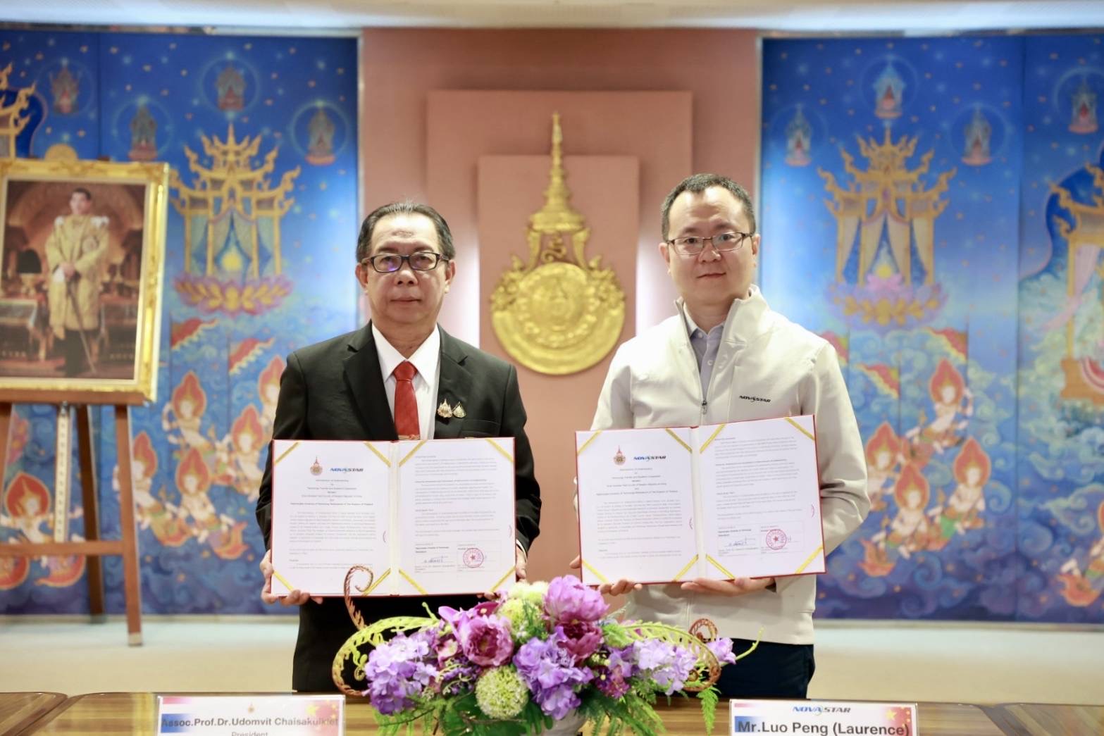 วันจันทร์ที่ 13 มกราคม 2568 มทร.รัตนโกสินทร์ นำโดย รศ.ดร.อุดมวิทย์ ไชยสกุลเกียรติ อธิการบดี ลงนามบันทึกความตกลงร่วมมือทางวิชาการ (MOU) กับ บริษัทซีอาน โนว่าสตาร์ เทค จำกัด สาธารณรัฐประชาชนจีนโดยมีนายลอเรนซ์ หลัว เผิง ผู้อำนวยการด้านหลักสูตรมหาวิทยาลัย บริษัทซีอาน โนว่าสตาร์ เทค จำกัด และร่วมพูดคุยแลกเปลี่ยนความคิดเห็นเกี่ยวกับกิจกรรมความร่วมมือที่จะดำเนินการร่วมกันในอนาคต ซึ่งการลงนามในครั้งนี้จะนำไปสู่การก่อตั้งศูนย์การฝึกอบรมด้านการควบคุมการแสดงผลแอลอีดี ของโนว่าสตาร์ในพื้นที่ของ มทร.รัตนโกสินทร์ รวมถึงการบูรณาการหลักสูตรการฝึกอบรมมาตรฐานของโนว่าสตาร์กับหลักสูตรของมหาวิทยาลัย การจัดอบรมให้กับบุคคลภายนอก ซึ่งสอดคล้องกับนโยบายของท่านอธิการบดีในการจัดการศึกษาที่บูรณาการเข้ากับการทำงานหรือ CWIE อันจะนำไปสู่ความสามารถในการหางานทำได้ของบัณฑิต ณ ห้องประชุมคเชนทร์ ชั้น 3 อาคารสำนักงานอธิการบดี มทร.รัตนโกสินทร์ ศาลายา
