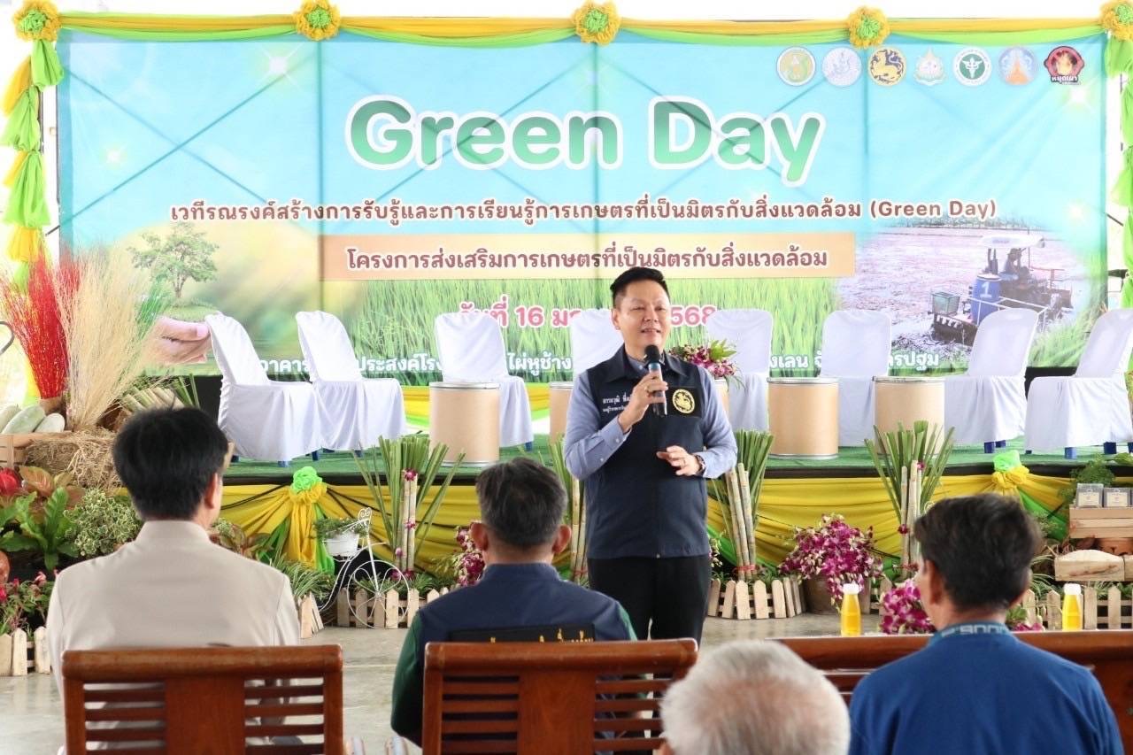 วันที่ 16 มกราคม 2568 เวลา 10.30 น.นางสาวอโรชา นันทมนตรี ผู้ว่าราชการจังหวัดนครปฐม มอบหมายให้ นายอรรถวุฒิ พึ่งเนียม รองผู้ว่าราชการจังหวัดนครปฐม เป็นประธานเปิดเวทีรณรงค์สร้างการรับรู้และการเรียนรู้การเกษตรที่เป็นมิตรกับสิ่งแวดล้อม(Green Day) ประจำปีงบประมาณ พ.ศ.2568 ณ อาคารอเนกประสงค์โรงเรียนวัดไผ่หูช้าง ตำบลไผ่หูช้าง อำเภอบางเลน
