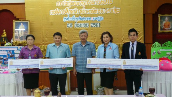 โดยก่อนระเบียบวาระการประชุมได้มีพิธีการมอบเกียรติบัตรให้กับสถานศึกษาที่เข้าร่วมจัดนิทรรศการ การศึกษาสำหรับคนพิการและผู้ด้อยโอกาสจังหวัดนครปฐม จำนวน9แห่ง มี1.โรงเรียนวัดไร่ขิงวิทยา 2.โรงเรียนภัทรยาน 3.โรงเรียนฟ้าใสวิทยา 4.โรงเรียนโสตศึกษาจังหวัดนครปฐม 5.ศูนย์การศึกษานอกระบบและการศึกษาตามอัธยาศัยอำเภอสามพราน 6.ศูนย์การศึกษาพิเศษเขตการศึกษา1จังหวัดนครปฐม 7.ศูนย์การศึกษาพิเศษเขตการศึกษา1จังหวัดนครปฐมหน่วยบริการเมืองนครปฐม 8.ศูนย์การศึกษาพิเศษเขตการศึกษา1จังหวัดนครปฐมหน่วยบริการกำแพงแสน 9.ศูนย์การศึกษาพิเศษเขตการศึกษา1จังหวัดนครปฐมหน่วยบริการดอนตูม และพิธีมอบคูปองการศึกษาเพื่อรับบริการสิ่งอำนวยความสะดวก สื่อ บริการและความช่วยเหลืออื่นใดทางการศึกษา สำหรับนักเรียนที่มีความต้องการจำเป็นพิเศษปีการศึกษา 2561 ให้แก่ โรงเรียนในสังกัดสำนักงานเขตพื้นที่การศึกษาประถมศึกษานครปฐมเขต1จังหวัดนครปฐม จำนวน 33 โรงเรียน จำนวนเงิน 234,694 บาท โรงเรียนในสังกัดสำนักงานเขตพื้นที่การศึกษาประถมศึกษานครปฐมเขต2 จำนวน 25 โรงเรียน จำนวนเงิน 204,011 บาท โรงเรียนในสังกัดสำนักงานเขตพื้นที่การศึกษามัธยมศึกษาเขต9จังหวัดนครปฐม จำนวน5โรงเรียน จำนวนเงิน 65,014 บาทและศูนย์การศึกษาพิเศษเขตการศึกษา1จังหวัดนครปฐม จำนวนเงิน 317,125 บาท รวมเป็นเงินทั้งสิ้น 820,844 บาท