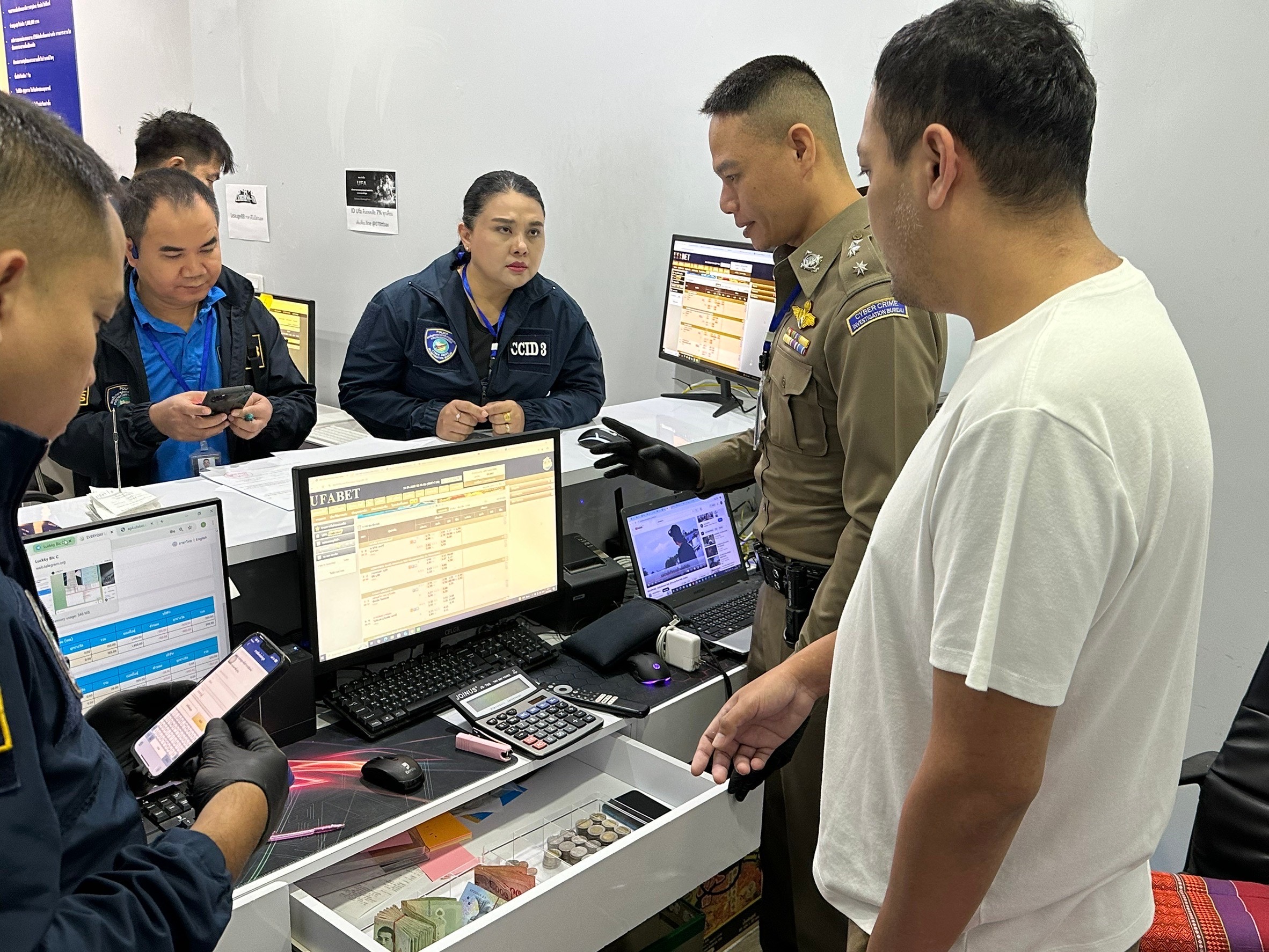 ต่อมาวันนี้ ๒๔ ม.ค.๖๘ เจ้าหน้าที่ตำรวจ กก.๒ บก.สอท.๓ นำหมายค้น ศาลแขวงอุบลราชธานี ที่ ๔/๒๕๖๘ ลง ๒๒ ม.ค.๖๘ เข้าค้นห้องเช่าไม่ทราบบ้านเลขที่ ซ.ธรรมวิถี ๔ ต.ในเมือง อ.เมืองอุบลราชธานี จ.อุบลราชธานี เป็นอาคารพานิชย์ 2 ชั้น ด้านหน้าเป็นประตูกระจกติดฟิล์มทึบปกปิด ทำการเปิดรับทายผลฟุตบอลออนไลน์ ซึ่งมีประชาชนทั้งเด็ก และเยาวชนทั่วไปสามารถเข้าร่วมเล่นการพนันทายผลฟุตบอลออนไลน์ได้ทุกวัน อีกทั้งยังตั้งอยู่ห่างจากสถานศึกษาในตัวเมืองอุบลราชธานี เพียงแค่ 500 ม.
