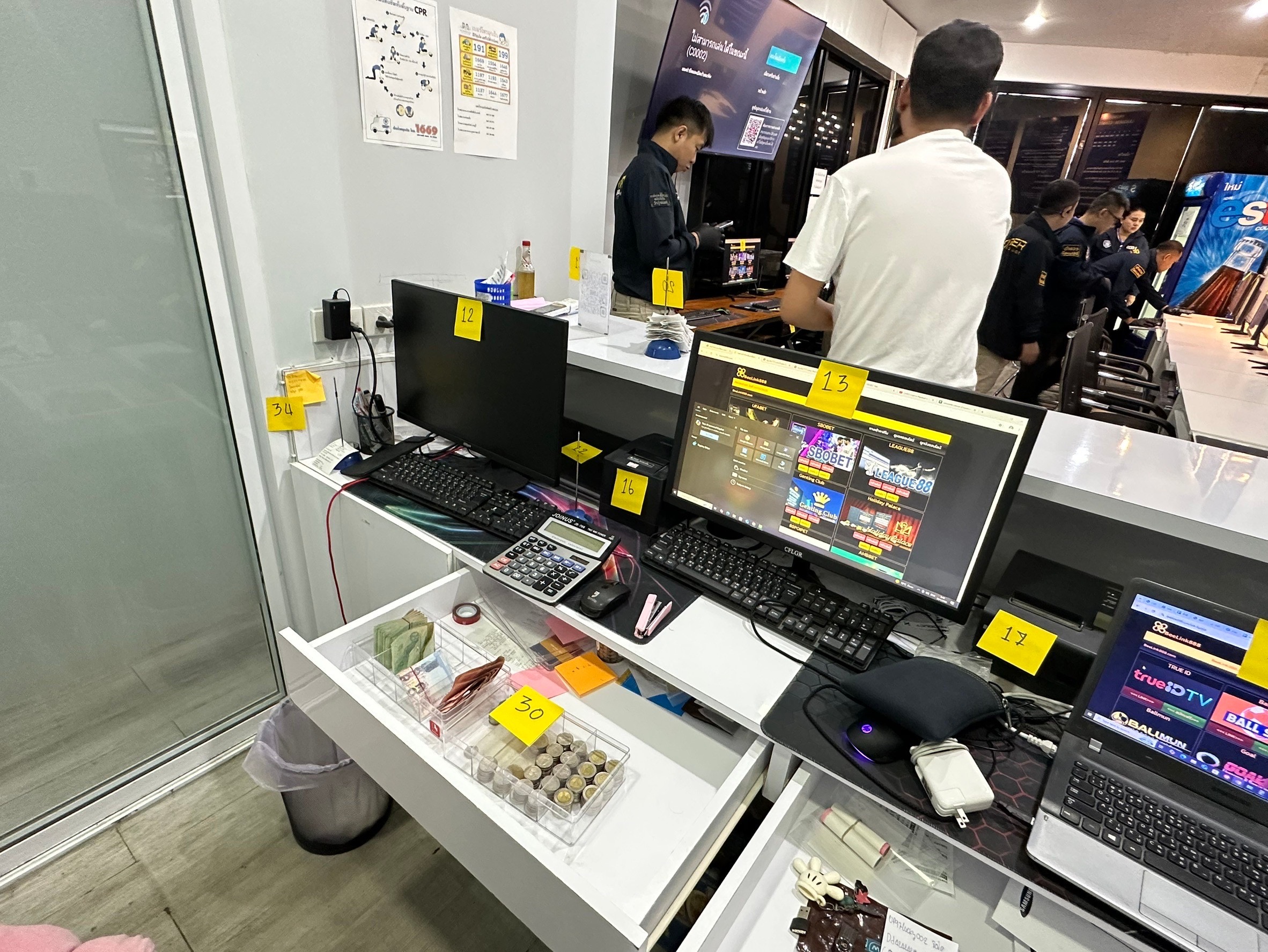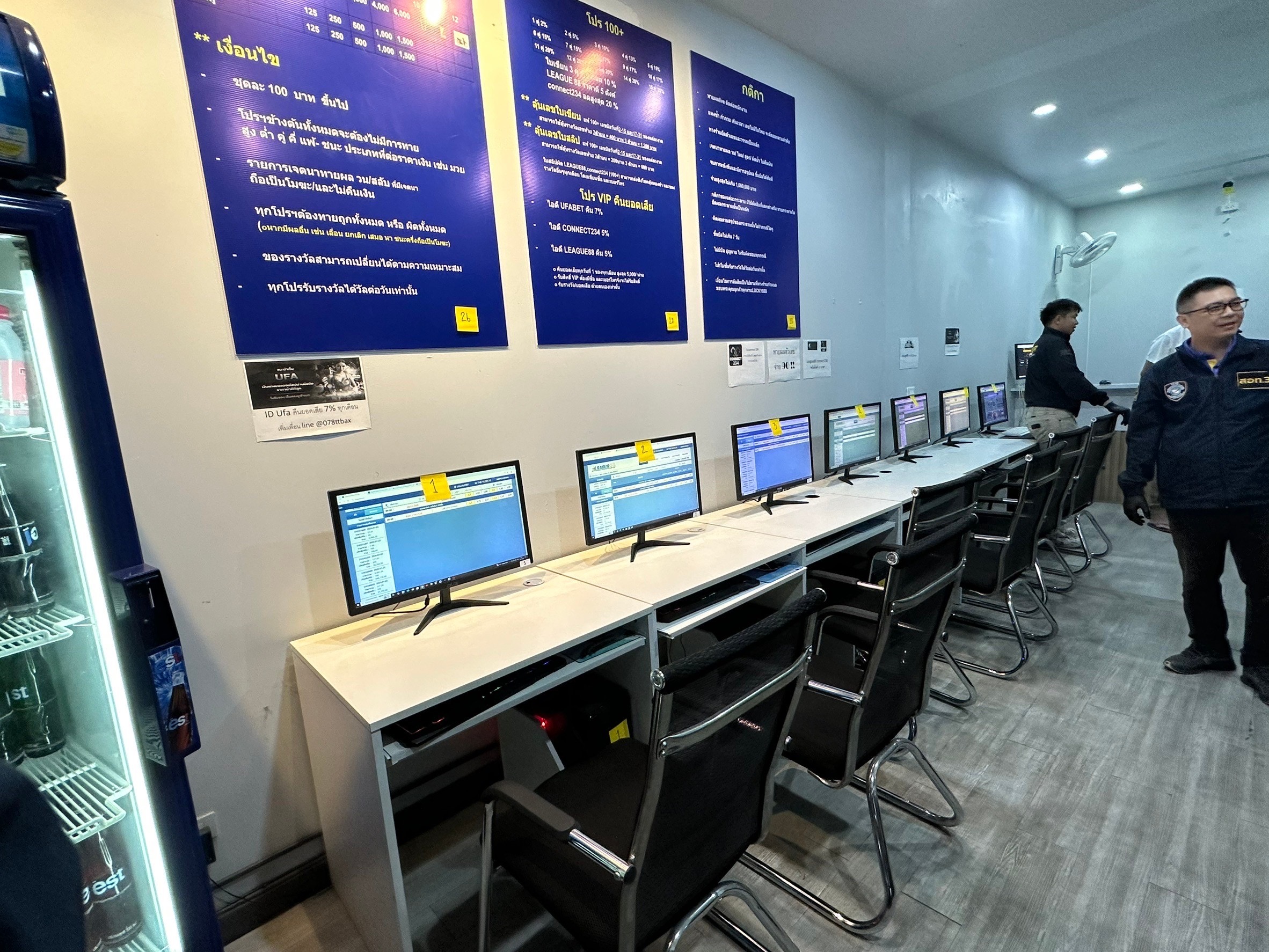 พบ นายวสันต์ (นามสมมุติ) แสดงตัวเป็นผู้ครอบครอง ภายในร้ายมีแผ่นป้ายโฆษณา ชักชวนให้เข้าเล่นการพนัน และตั้งคอมพิวเตอร์ไว้ให้บริการจำนวนมาก สามารถแทงทายผลการพนันได้ด้วยเงินสด นายวสันต์ให้การยอมรับว่าเปิดร้านให้บุคคลทั่วไปสามารถเข้าร่วมทายผลฟุตบอลผ่านเว็บไซต์ www.Leauge88.net และเว็บไซต์ www.lucky888.com จึงตรวจยึดคอมพิวเตอร์ตั้งโต๊ะจำนวน ๑๑ เครื่อง คอมพิวเตอร์โน๊ตบุ๊คจำนวน ๒ เครื่อง และทรัพย์สิ่งของอื่นกว่า ๓๗ รายการ เงินหมุนเวียนกว่า ๑ ล้านบาท/เดือน