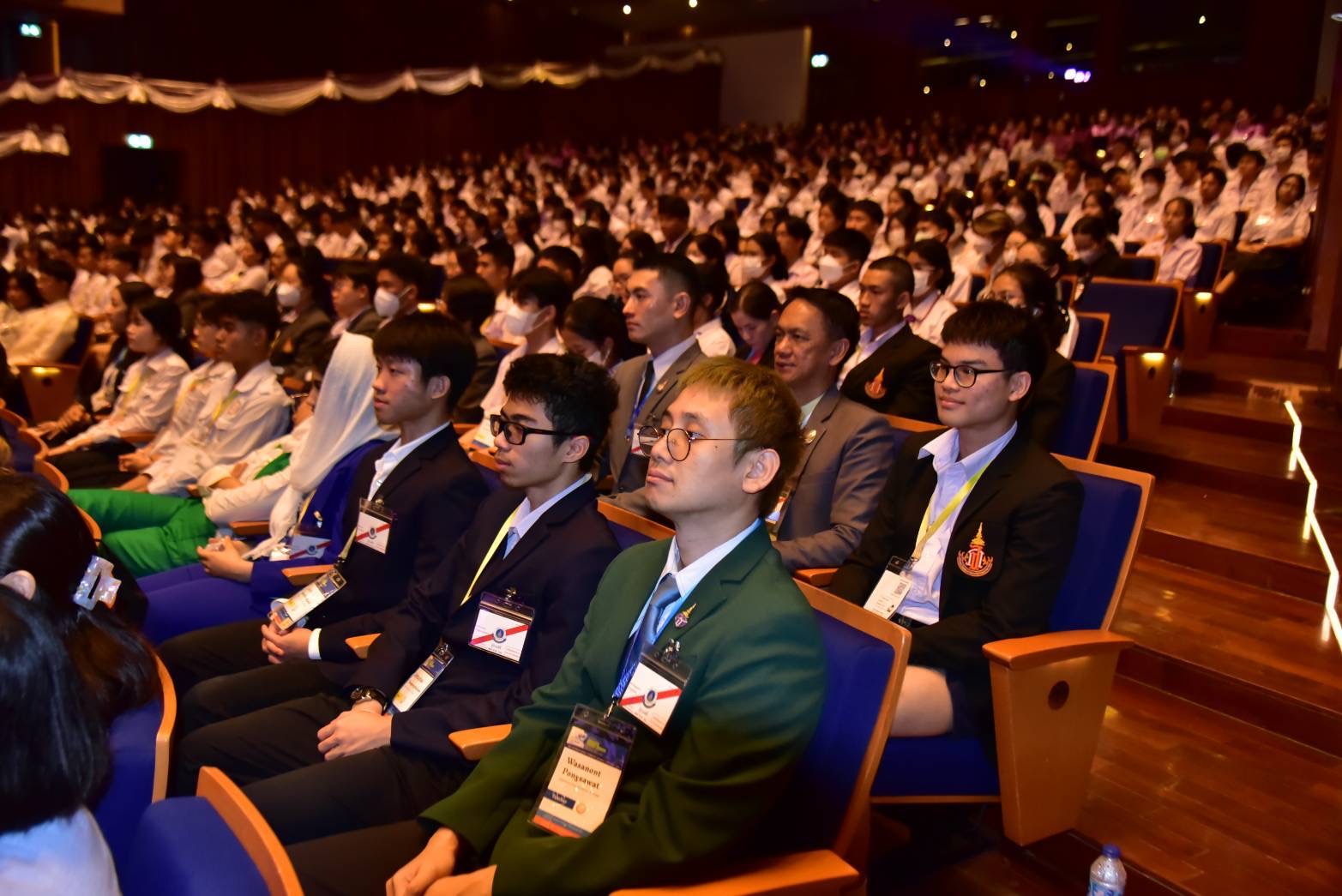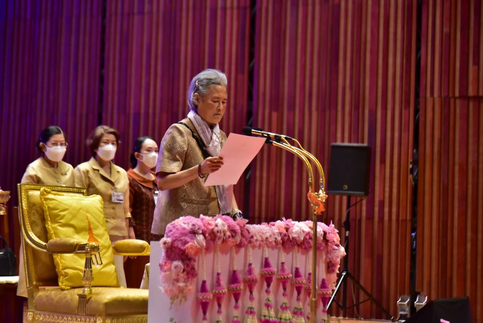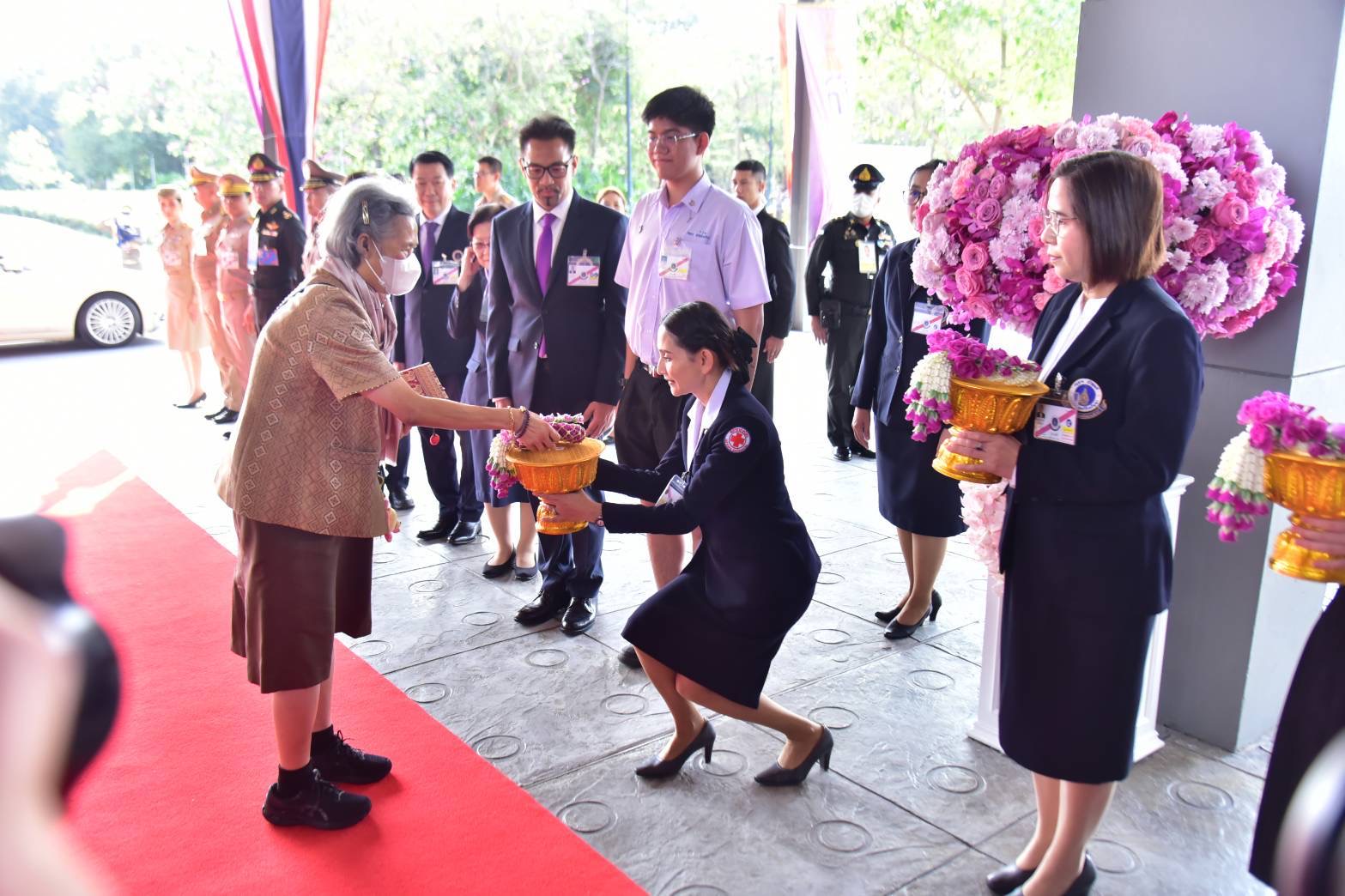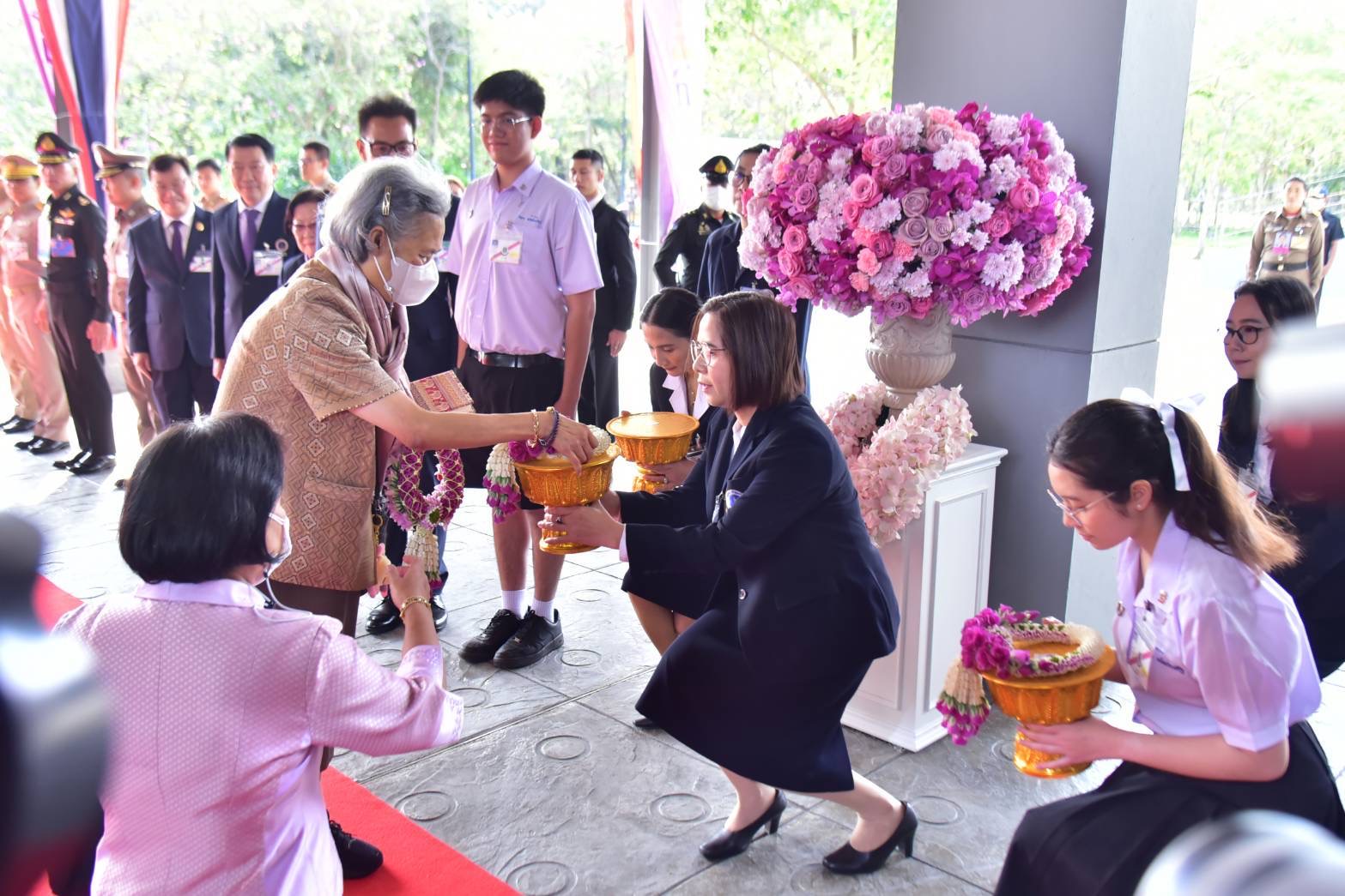 พร้อมกันนี้ ทรงรับฟังการนำเสนอผลงานของนักเรียนโรงเรียนมหิดลวิทยานุสรณ์ เรื่อง “แนวคิดใหม่ในการออกแบบยาเปบไทด์ตัวใหม่สำหรับการรักษาโรคมะเร็งแบบมุ่งเป้าจากลําดับกรดอะมิโนที่กําหนดความจําเพาะของแอนติบอดี้ต่อแอนติเจน (The Breakthrough Idea in Designing a Novel Peptide Drug for Cancer from Specific Amino Acid Sequences that determine the Specificity of Antibody and Antigen)” นำเสนอโดย นายพีรดนย์ แซ่จึง นายชัยดิฐ ลิ่มกาญจนาโชติ นางสาววาราดา จงจิระวงศา และทอดพระเนตรการแสดง The 1st MWIT Symphony Orchestra ในบทเพลง “คีตกาลแห่งศรีตรัง” และบทเพลง “ยามเย็น”