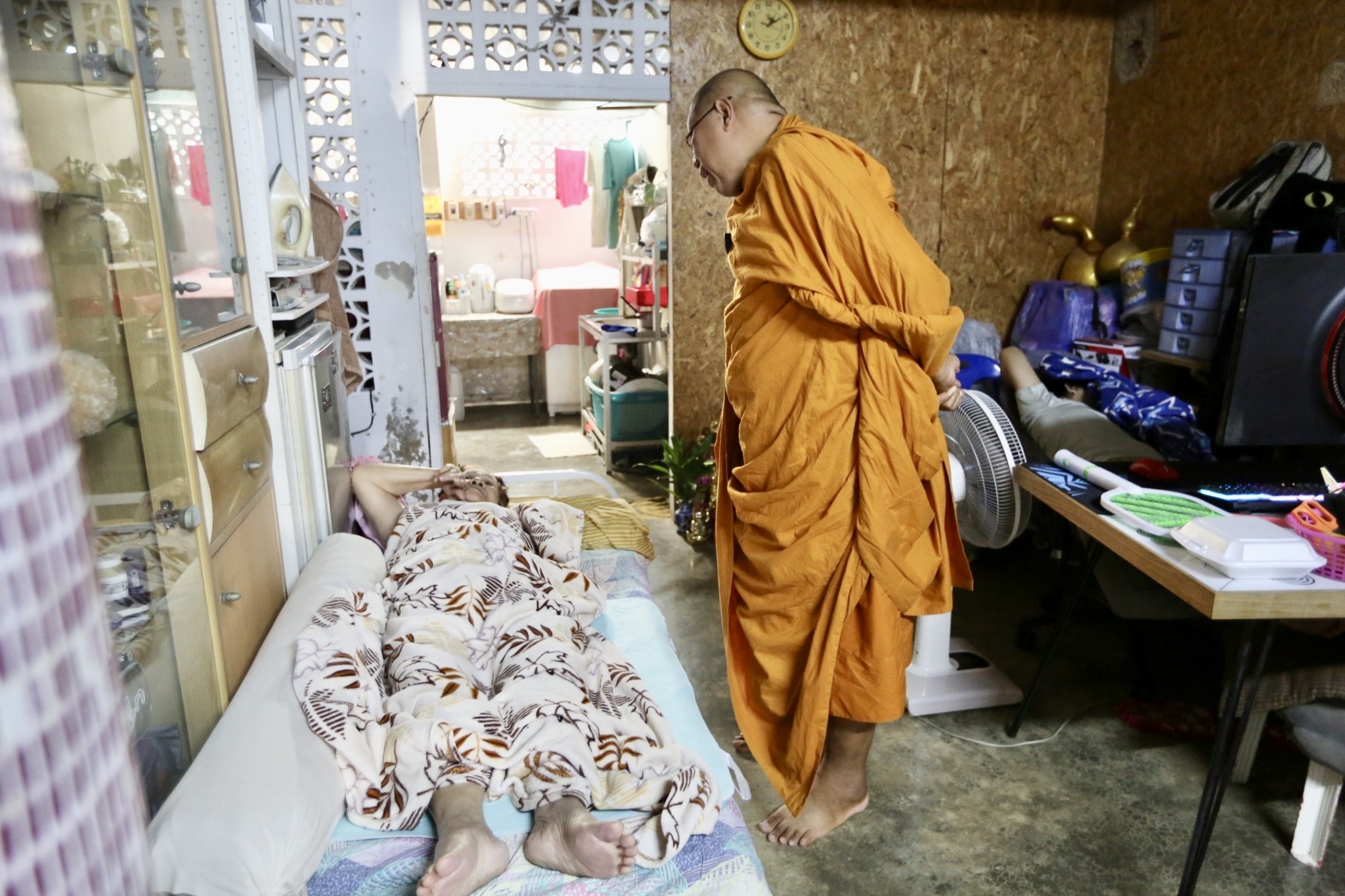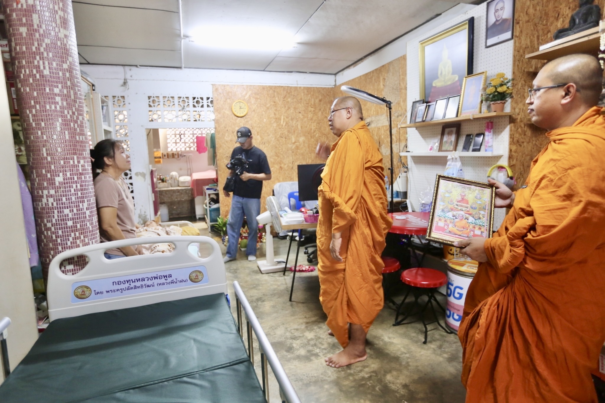 หลวงพี่น้ำฝน เจ้าอาวาสวัดไผ่ล้อม เดินหน้าโครงการธนาคารเตียงผู้ป่วยรถวีลแชร์ กองทุนวัดไผ่ล้อม จัดมอบเตียงให้คุณยายนกเล็ก อายุ 82 สมาชิกนักเรียนโรงเรียนผู้สูงอายุวัดไผ่ล้อม หลังมีอาการป่วยเส้นลือดในสมองตีบ จากเคยเป็นพุทธศาสนิกชนที่ดี เป็นนักกิจกรรมร่วมงานสังคม สู่ผู้ป่วยติดเตียง โดยส่งกำลังใจมอบภาพหลวงพ่อพูล ส่งบารมีพระคุ้มครองวยพรให้ฝ่าวิกฤติชีวิตไปให้ได้ พร้อมชื่นชมลูกสาวไม่ทอดทิ้งบุพการี