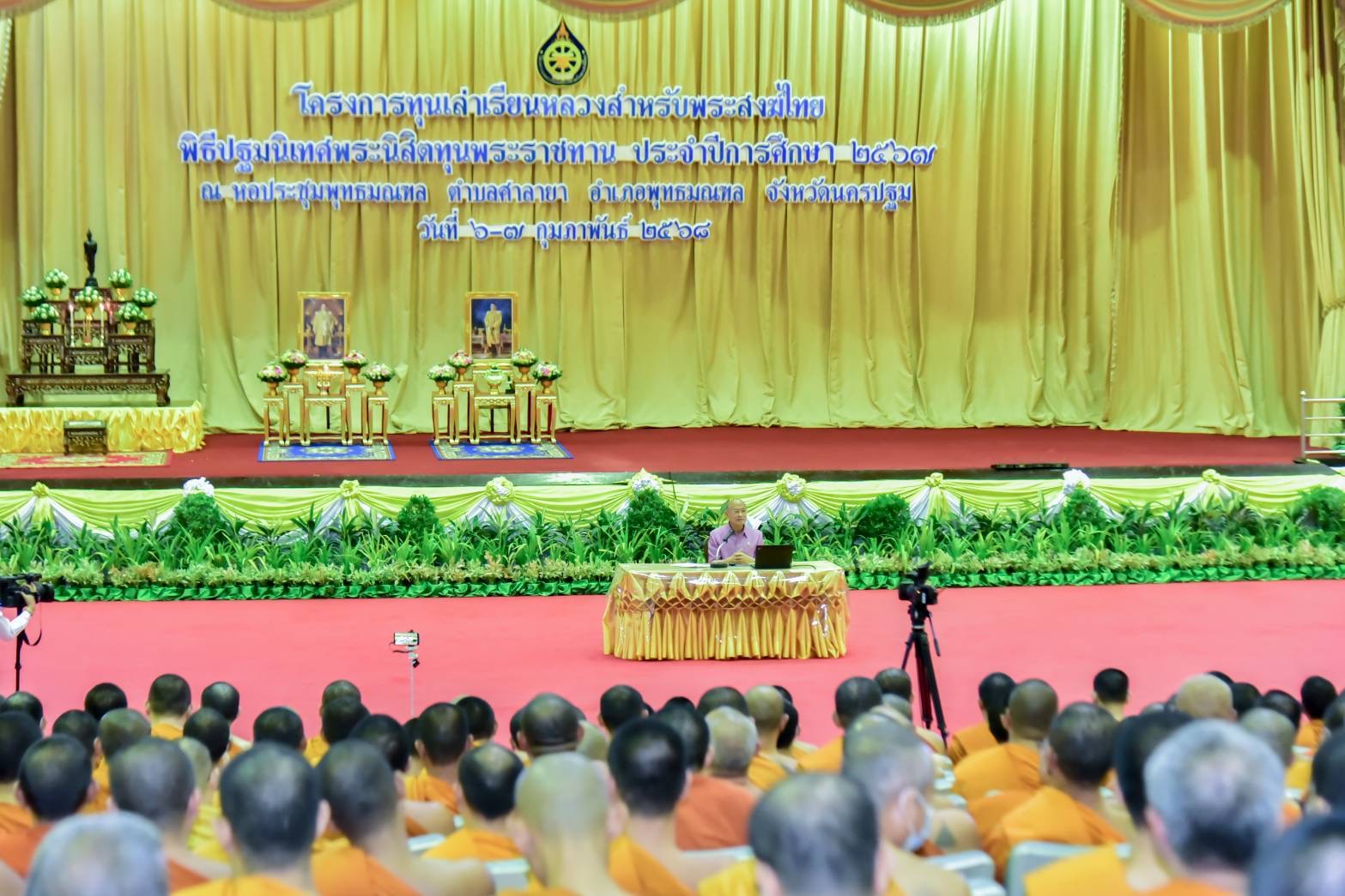 วันที่ 6 กุมภาพันธ์ 2568 เวลา 08.30 น. พลเอก เฉลิมชัย สิทธิสาท องคมนตรี เป็นประธานพิธีปฐมนิเทศพระนิสิตทุนพระราชทานโครงการทุนเล่าเรียนหลวงสำหรับพระสงฆ์ไทย ประจำปีการศึกษา 2567 น หอประชุมพุทธมณฑล ตำบลศาลายา อำเภอพุทธมณฑล จังหวัดนครปฐม โดยมีนายจิรายุ อิศรางกูร ณ อยุธยา และนายเกษม วัฒนชัย องคมนตรี นางสาวอโรชา นันทมนตรี ผู้ว่าราชจังหวัดนครปฐม พร้อมด้วย ผู้อำนวยการสำนักงานพระพุทธศาสนาแห่งชาติ นายอำเภอพุทธมณฑล ผู้บริหาร ข้าราชการ เจ้าหน้าที่ จากสำนักงานพระพุทธศาสนาแห่งชาติ ร่วมพิธีในครั้งนี้