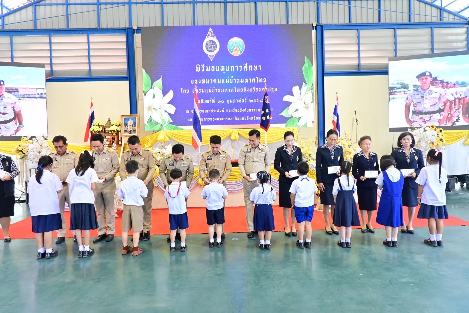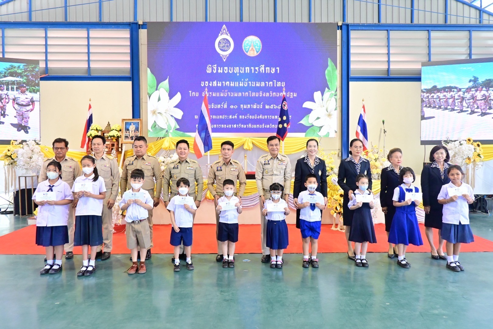 โอกาสนี้ รองผู้บังคับการกองอาสารักษาดินแดนจังหวัดนครปฐม ได้มอบทุนการศึกษามูลนิธิอาสารักษาดินแดนในพระบรมราชินูปถัมภ์ จำนวน 2 ทุน ๆ ทุนละ 2,000 บาท และทุนการศึกษาโดย นายกองตรีเอกพันธ์ คุปตวัช จำนวน 5 ทุน ๆ ละ 2,000 บาท นอกจากนี้ สมาคมแม่บ้านมหาดไทย สนับสนุนทุนการศึกษา จำนวน 30,000 บาท และผู้ให้การสนับสนุนทุนสมทบของชมรมแม่บ้านมหาดไทยจังหวัดนครปฐม จำนวน 100,000 บาท รวมเป็นเงินทั้งสิ้น 130,000 บาท