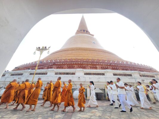 สำหรับการจัดกิจกรรมในครั้งนี้ พระศรีวิสุทธิวงศ์ รองเจ้าคณะจังหวัดนครปฐม ผู้ช่วยเจ้าอาวาสวัดพระปฐมเจดีย์ ราชวรมหาวิหาร นำผู้เข้าร่วมพิธี กล่าวคำแสดงตนเป็นพุทธมามกะ จากนั้นได้แสดงพระธรรมเทศนา เพื่อน้อมนำคำสั่งสอนของพระพุทธศาสนาอันพึงปฏิบัติมาประยุกต์ใช้ในการดำเนินชีวิตประจำวัน อีกทั้งส่งเสริมให้พุทธศาสนิกชนละเว้นความชั่ว ทำความดี ทำจิตใจให้บริสุทธิ์ หลังจากนั้นได้ร่วมกันเจริญพระพุทธมนต์ และเวียนเทียนประทักษิณรอบองค์พระปฐมเจดีย์ จำนวน 3 รอบ เพื่อน้อมถวายเป็นพุทธบูชา