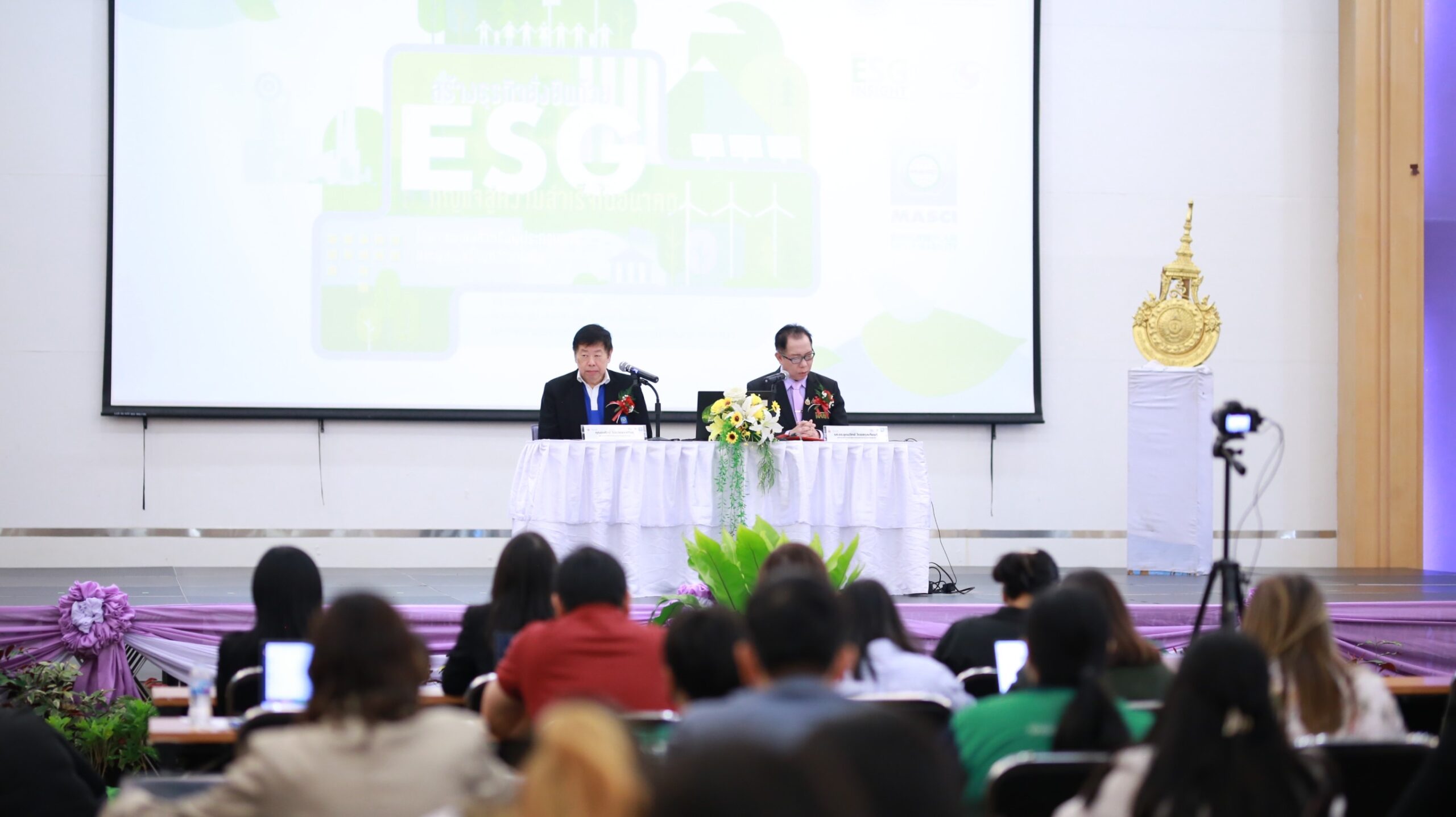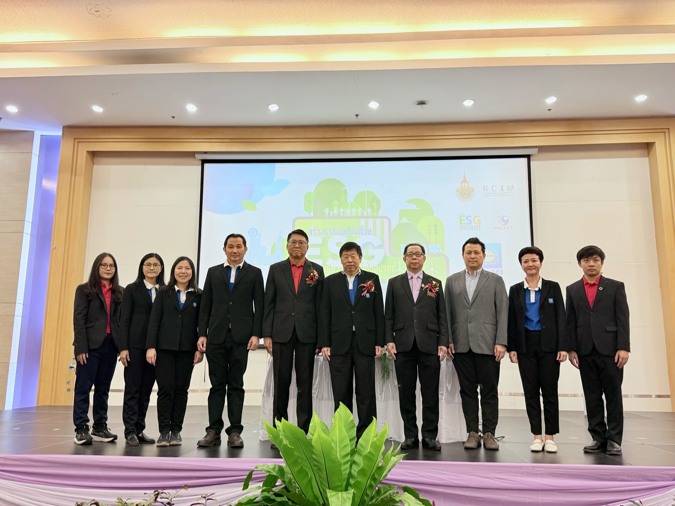 วันพฤหัสบดีที่ 13 กุมภาพันธ์ 2568 มทร.รัตนโกสินทร์ นำโดย รศ.ดร.อุดมวิทย์ ไชยสกุลเกียรติ อธิการบดี กล่าวต้อนรับแขกผู้มีเกียรติและผู้เข้าร่วมกิจกรรมสัมมนา “สร้างธุรกิจยั่งยืนด้วย ESG: กุญแจสู่ความสำเร็จในอนาคต” โดยมี ดร.รพี ม่วงนนท์ ผู้อํานวยการวิทยาลัยนวัตกรรมการจัดการ กล่าวรายงานและชี้แจงวัตถุประสงค์การจัดกิจกรรม ซึ่งมีวัตถุประสงค์เพื่อส่งเสริมให้ผู้ประกอบการSMEs มีความรู้ ความเข้าใจด้านการบริหารจัดการองค์กร และเกิดความตระหนักในการปรับตัว เข้าสู่แนวทางการดำเนินธุรกิจอย่างยั่งยืน และเพื่อให้ผู้ประกอบการSMEs ตระหนักถึงความสำคัญของแนวคิดการพัฒนาองค์กรอย่างยั่งยืน ESG และมีส่วนร่วมในการขับเคลื่อนองค์กรสู่ความยั่งยืน ทั้งนี้นายจงรักษ์ โรจน์พลาเสถียร ผู้อํานวยการสถาบันรับรองมาตรฐานไอเอสโอ กล่าวแนะนํา“โครงการการส่งเสริมผู้ประกอบการอุตสาหกรรมวิสาหกิจขนาดกลางและขนาดย่อม ด้านระบบการบริหารจัดการ เพื่อการปรับตัวทางธุรกิจสู่ความยั่งยืน (SMEs Adaptation Towards Sustainability Project)” และมีคุณผาติยุทธ ใจสว่าง รักษาการในตําแหน่งผู้อํานวยการใหญ่ บริษัท อสมท. จํากัด (มหาชน) ร่วมบรรยายในหัวข้อ Keynote: “MCOT Talk on Stage” ณ ห้องประชุม A508 ชั้น 5 อาคารสิรินธร มทร.รัตนโกสินทร์ ศาลายา