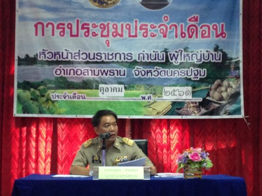 เมื่อวันที่ 2 ตุลาคม 2561 ที่ห้องประชุมชั้น3ที่ว่าการอำเภอสามพราน จังหวัดนครปฐม นายยงยุทธ สวนทอง นายอำเภอสามพราน เป็นประธานการประชุมหัวหน้าส่วนราชการ หัวหน้าหน่วยงานรัฐวิสากิจผู้บริหารท้องถิ่นและกำนัน ผู้ใหญ่บ้าน สารวัตรกำนัน ผู้ช่วยผู้ใหญ่บ้านและ แพทย์ประจำตำบล ของอำเภอสามพราน
