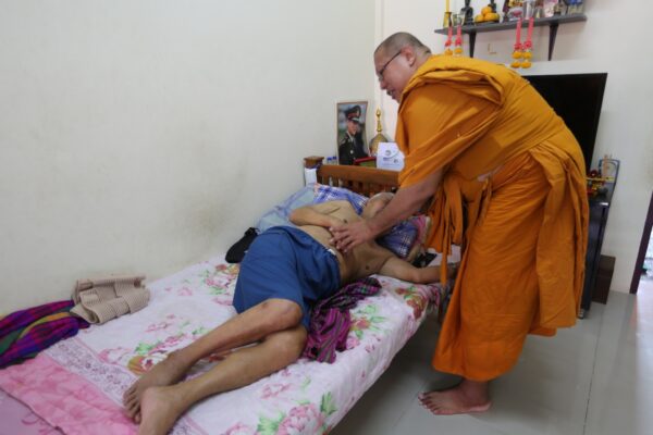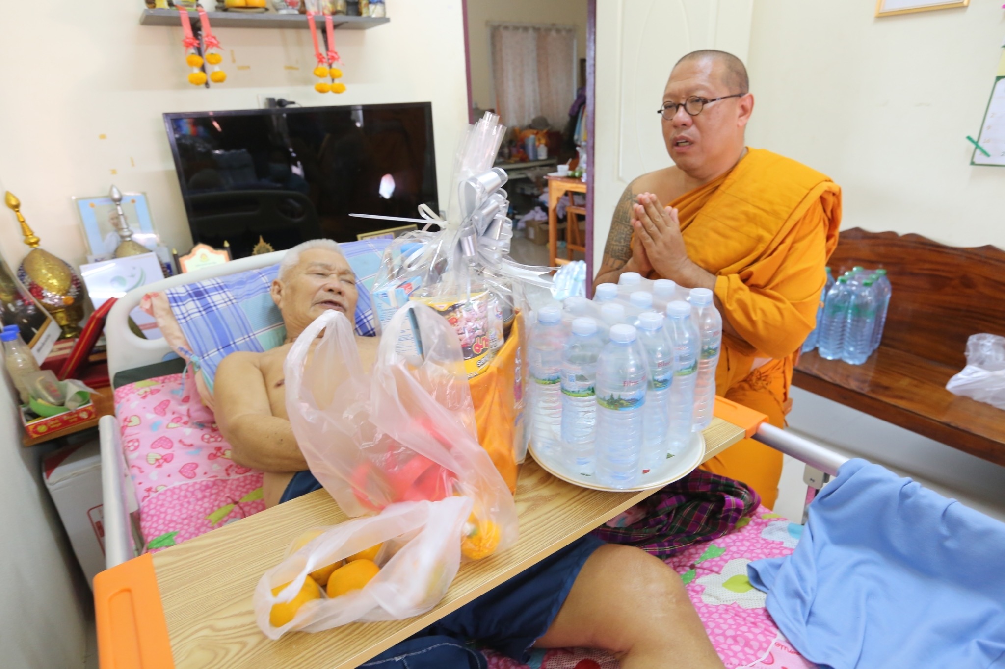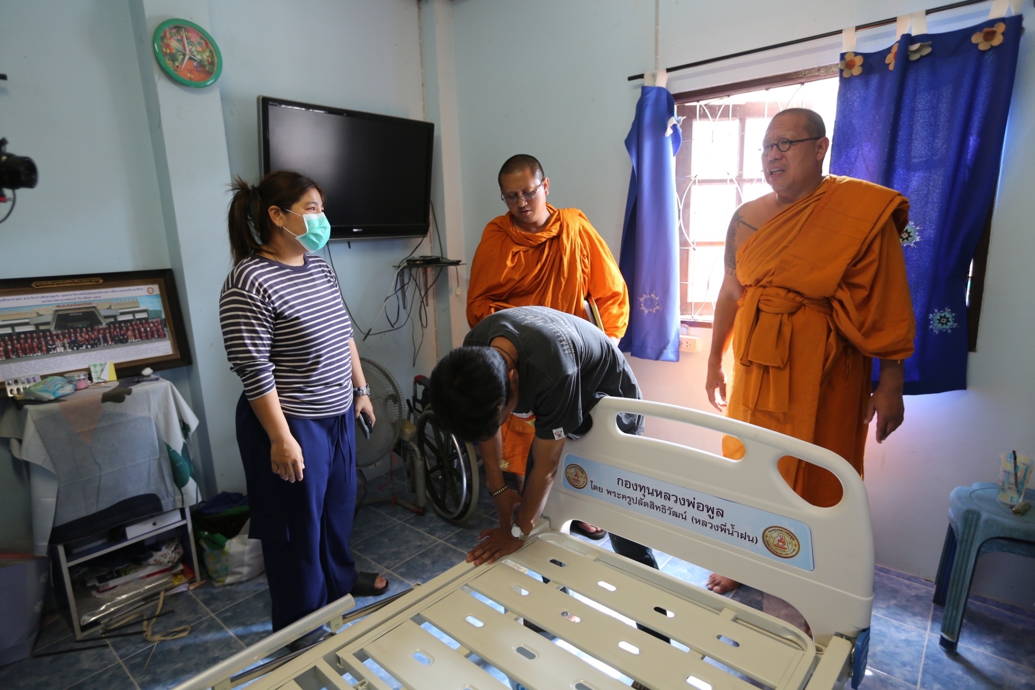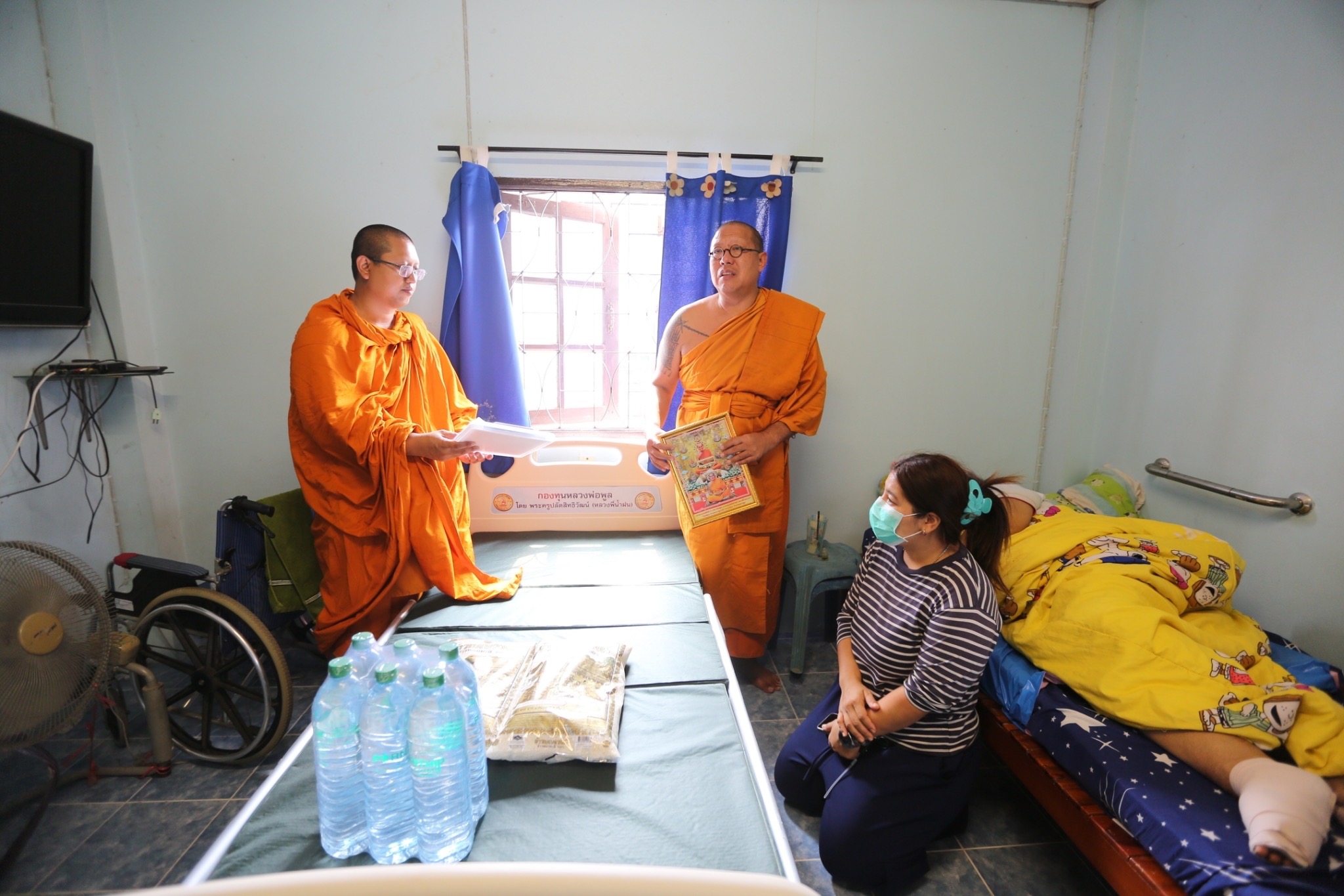โดยได้มีลูกหลานและบุคคลในครอบครัวได้ประสานเข้ามาขอรับการบริจาคเตียงผู้ป่วย อย่างต่อเนื่องซึ่ง จากการสำรวจข้อมูล2 รายล่าสุดพบว่าเป็นครอบครัวที่เข้ากฎเกณฑ์ในการรับบริจาค หลวงพี่น้ำฝน เจ้าอาวาสวัดไผ่ล้อม จึงได้เร่งดำเนินการลงพื้นที่ทำการส่งมอบเตียงและปัจจัยรวมถึงเครื่องยังชีพ โดยทันที รายแรกเดินทางไปที่ บ้านเลขที่ 9/22 หมู่ 5 ตำบลสามควายเผือก อำเภอเมือง จังหวัดนครปฐม เพื่อเยี่ยมให้กำลังใจนายสมทรง แดงมณี ที่นอนป่วยติดเตียง ด้วยอาการป่วยกระดูกสันหลังเคลื่อนหลังจากผ่าตัดแล้วไม่สามารถเคลื่อนไหวร่างกายท่อนล่างได้ โดยมีภรรยาคือนางนวลจันทร์ พรหมธาระ เป็นผู้ดูแล ซึ่งเมื่อนายสมทรงได้พบกับหลวงพี่น้ำฝน ถึงกับหลั่งโผกอด และหลั่งน้ำตาด้วยความดีใจ และได้ขอถวายสังฆทานบนเตียงเนื่องจากไม่มีโอกาสได้เดินทางไปทำบุญที่วัดได้ โดยทางภรรยาที่ดูแลเผยว่ารู้สึกดีใจที่หลวงพี่น้ำฝน ได้มามอบเตียงผู้ป่วยให้ถึงบ้าน