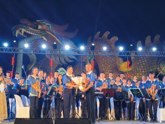 ด้านนางสาวนิษฐกานต์ คุณวัชระกิจ วัฒนธรรมจังหวัดสุพรรณบุรี กล่าวว่า สำนักงานวัฒนธรรมจังหวัดสุพรรณบุรี จัดการแสดงผลสัมฤทธิ์การอบรมดนตรีมาร์ชชิ่งอาร์ท และวงดุริยางค์เครื่องลมเยาวชนไทย (Thai Youth Winds) จังหวัดสุพรรณบุรี ภายใต้โครงการเพิ่มมูลค่าทางเศรษฐกิจด้วยทุนทางวัฒนธรรม โดยคณะนักเรียนของจังหวัดสุพรรณบุรี จำนวน ๑๒๐ คน จาก ๔ โรงเรียน ได้แก่ โรงเรียนกรรณสูตศึกษาลัย โรงเรียนกาญจนาภิเษกวิทยาลัยสุพรรณบุรี โรงเรียนบางปลาม้า “สูงสุมารผดุงวิทย์” และโรงเรียนบรรหารแจ่มใสวิทยา ๑ ได้ร่วมกันบรรเลงดนตรีแสดงผลสัมฤทธิ์ของการอบรมฯ ด้วยบทเพลงไพเราะจำนวน ๔ องก์ ได้แก่ องก์ที่ ๑ “จงรักภักดี” องก์ที่ ๒ “ดนตรีไร้พรมแดน” องก์ที่ ๓ “สุพรรณในห้วงคำนึง” และองก์ที่ ๔ “คิดถึงผืนแผ่นดิน” รวมถึงยังมีการแสดงดนตรีจากศิลปินสุพรรณบุรี ได้แก่ วงเด็กเลี้ยงควาย และการแสดงดนตรีพื้นบ้านประยุกต์จากสมหญิงศรีประจันต์ และศรีประจันต์เรนเจอร์