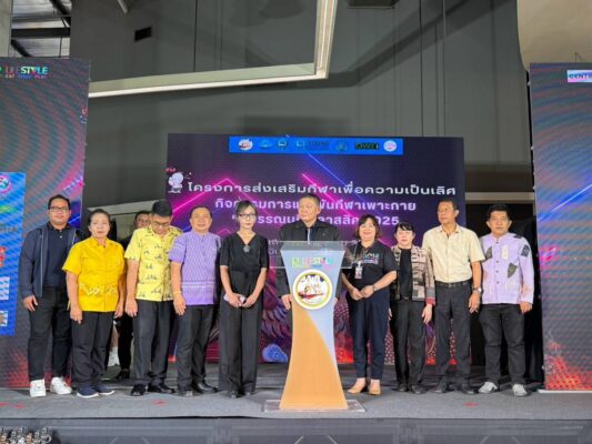 นางดวงใจ กาญธีรานนท์ ผสสพ. มอบหมายให้ น.ส.อภิรตี สีบุญเรือง รอง ผสสพ., น.ส.จรีรัตน์ เคล้าคลึง พนักงานการตลาด 4 และนายขจรศักดิ์ เจียมวาง ลูกจ้างโครงการฯ เดินทางเข้าร่วมพิธีเปิดการแข่งขันกีฬาเพาะกาย “สุพรรณบุรี คลาสสิค 2025” ระหว่างวันที่ 15-16 มีนาคม 2568 ณ ศูนย์การค้าโรบินสันไลฟ์สไตล์สุพรรณบุรี โดยมี นายพิริยะ ฉันทะดิลก ผู้ว่าราชการจังหวัดสุพรรณบุรี เป็นประธานในพิธีเปิดงาน
