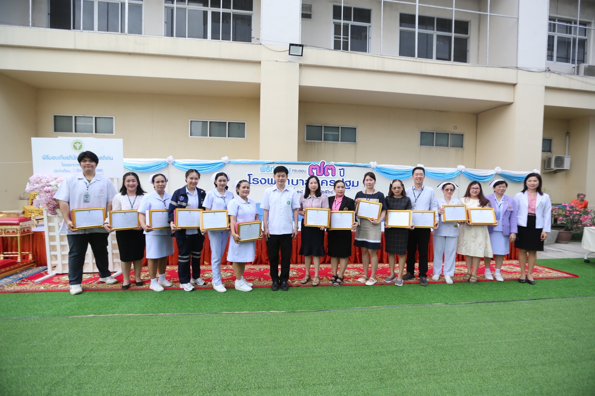 ผู้อำนวยการโรงพยาบาลนครปฐมพร้อมคณะคณะผู้บริหาร แพทย์พยาบาล เจ้าหน้าที่ บุคลากรทางการแพทย์ นิมนต์หลวงพี่น้ำฝน เจ้าอาวาสวัดไผ่ล้อม คณะสงฆ์ ประกอบพิธีทำบุญ ตักบาตร ปะพรมน้ำพระพุทธมนต์รอบพื้นที่ เป็นสิริมงคล ครบ 73 ปีโรงพยาบาลนครปฐม พร้อมมอบประกาศนียบัตรให้กับบุคคลากรดีเด่น 14 ราย