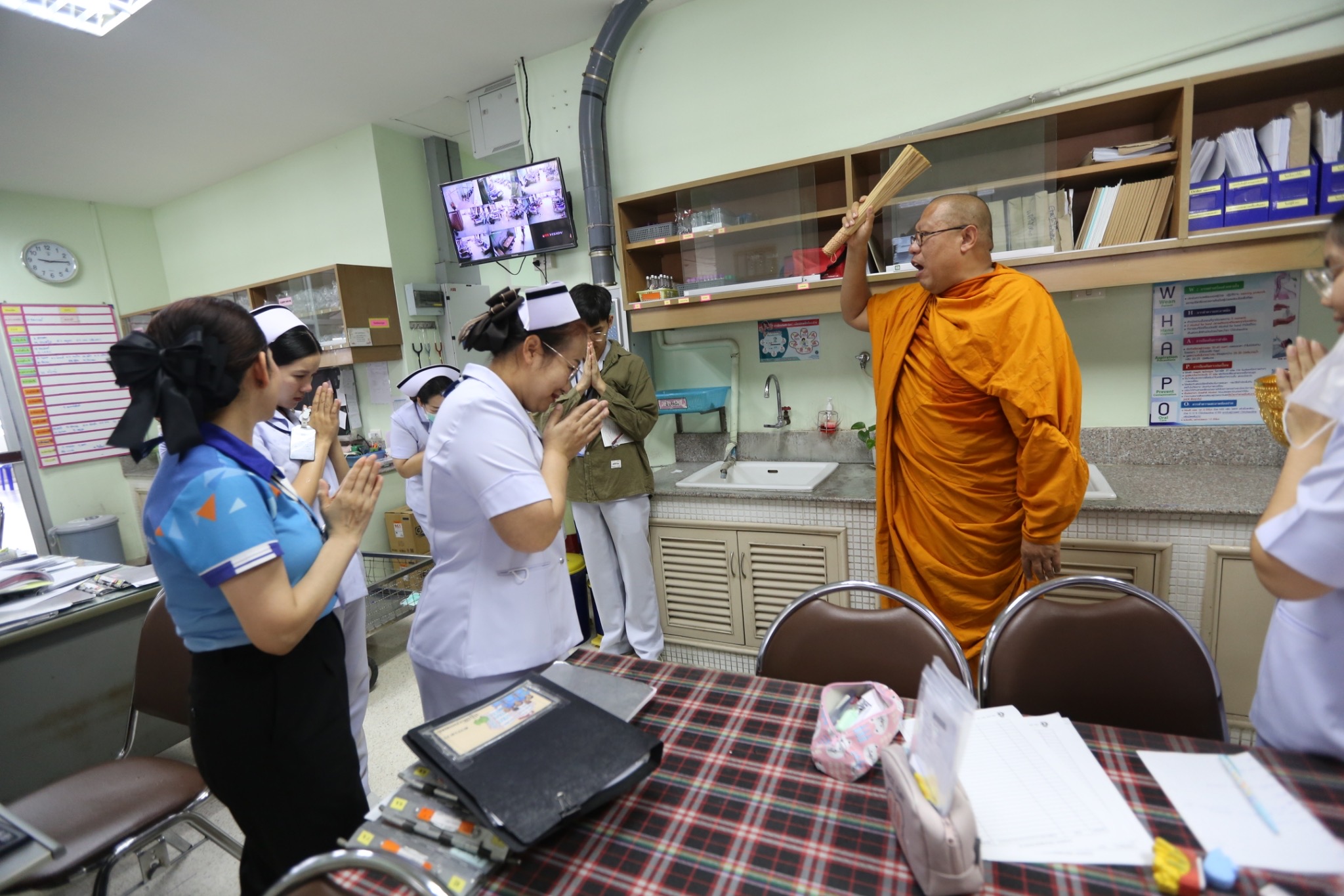 วันที่ 18 มีนาคม 68 ที่ลานคุณธรรม โรงพยาบาลนครปฐม นายแพทย์สุรชัย โชคครรชิตไชย ผู้อำนวยการโรงพยาบาล นำคณะผู้บริหาร แพทย์ พยาบาล เจ้าหน้าที่บุคคลากรทางการแพทย์ ประกอบกิจกรรมทำบุญครบรอบ 73 ปีโรงพยาบาลนครปฐม โดยในพิธีการช่วงเช้าได้นิมนต์พระครูปลัดสิทธิวัฒน์ หลวงพี่น้ำฝน เจ้าอาวาสวัดไผ่ล้อม นำคณะสงฆ์ประกอบพิธีทางพระพุทศาสนา สวดเจริญพระพุทธมนต์ พร้อมให้ศีลและพร และปรพรมน้ำพระพุทธมนต์ ให้กับผู้ร่วมงานและสถานที่รอบพื้นที่ จากนั้นนายแพทย์สุรชัย โชคครรชิตไชย ผู้อำนวยการโรงพยาบาลนครปฐม นำถวายผ้าไตร เครื่องไทยธรรมและกรวดน้ำอุทิศส่วนกุศลให้กับผู้ล่วงลับ และนำคณะผู้ร่วมงานร่วมกันตักบาตร เป็นเสร็จพิธี