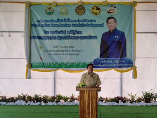 วันนี้(19 มี.ค.68) เวลา 13.30 น. ที่ศาลาการเปรียญวัดวังยาว ต.วังยาว อ.ด่านช้าง จังหวัดสุพรรณบุรี นายพีระพันธุ์ สาลีรัฐวิภาค รองนายกรัฐมนตรีและรัฐมนตรีว่าการกระทรวงพลังงาน เป็นประธานมอบเอกสารการจัดที่ดินในพื้นที่ป่าสงวนแห่งชาติป่าองค์พระ ป่าเขาพุระกำ และป่าเขาห้วยพลู ให้แก่ผู้ขอรับการจัดที่ดินในพื้นที่ป่าสงวนแห่งชาติฯ ให้กับราษฎรก่อนที่จะได้รับสมุดประจำตัวผู้ได้รับการคัดเลือกให้ทำกินในชุมชนตามนโยบายรัฐบาลในลักษณะแปลงรวม เนื้อที่ 557 ไร่ จำนวน 65 ราย