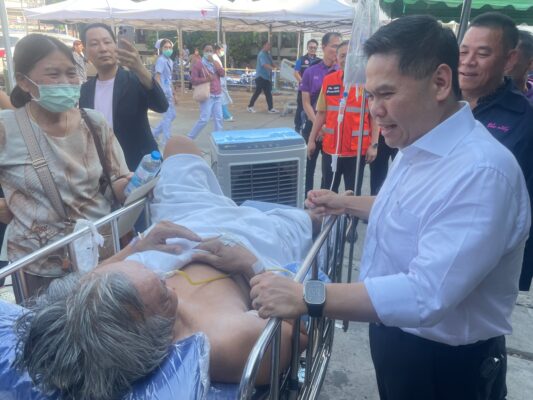 นายวราวุธ กล่าวว่า รพ.เจ้าพระยายมราชการเป็น รพ.ศูนย์ฯในภาคกลาง จึงประสาน ผวจ.สุพรรณบุรี ตรวจสอบว่ามีโครงสร้างใดที่อันตรายบ้าง เพราะมีพี่น้องประชาชนหลายพื้นที่ ทั้งกลุ่มเปราะบาง ผู้สูงอายุ คนพิการ เด็กเล็ก จำเป็นที่จะต้องได้รับการดูแล ต้องขอบคุณ อบจ.สุพรรณบุรี เทศฐาลเมืองสุพรรณบุรี และวัดปราสาทอง ได้ให้ใช้สถานที่ในการรองรับผู้ป่วยบางส่วนจาก รพ.เจ้าพระยายมราช ซึ่งได้กระจายผู้ป่วยไปตามโรงพยาบาลต่างๆในจังหวัดสุพรรณบุรี นอกจากนี้ยังให้เจ้าหน้าที่ของ พม.สุพรรณบุรี และส่วนกลาง คือปลัดกระทรวงฯตรวจสอบไปแต่ละพื้นที่ ว่าพี่น้องกลุ่มเปราะบางมีผลกระทบอย่างไร ใครได้รับอันตรายบ้าง เพื่อจะได้ช่วยเหลือ ขอเป็นกำลังให้ผู้ป่วย และบุคลกรของ รพ.ในการทำงานครั้งนี้