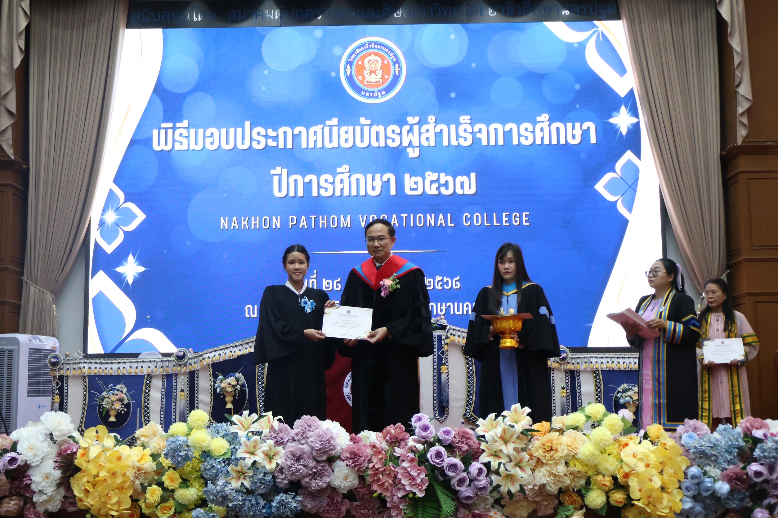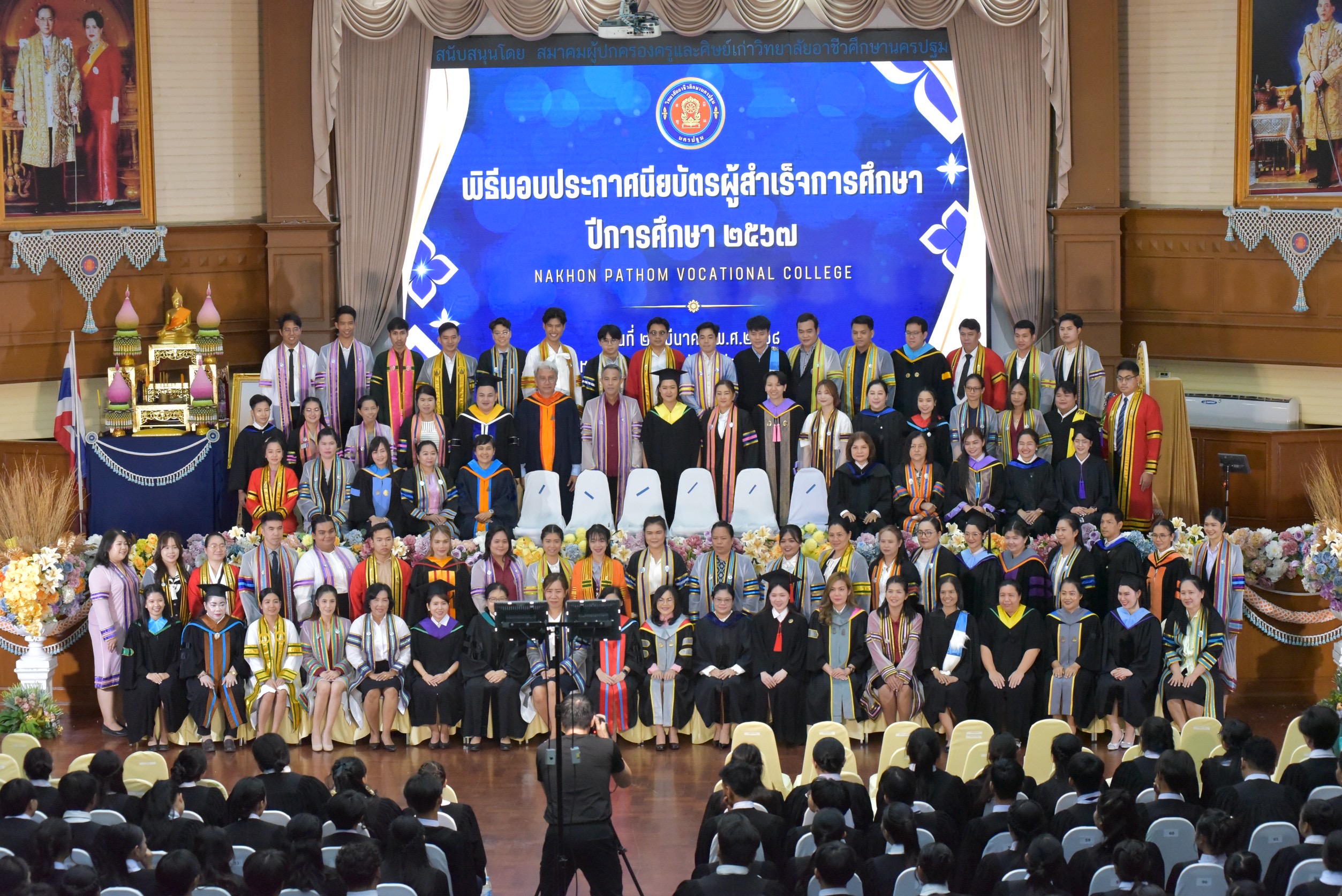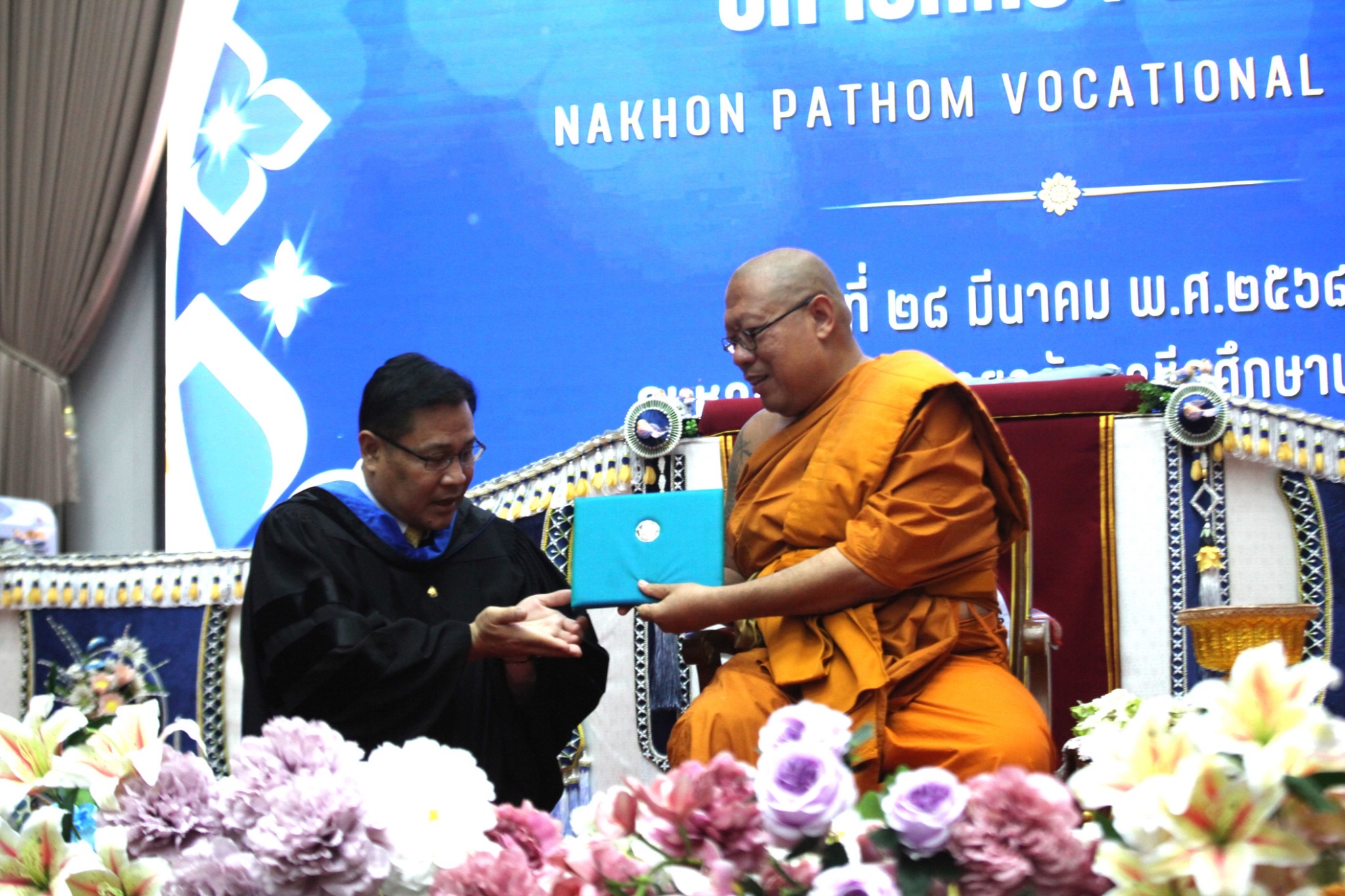 รศ.ดร.ประวิต เอราวรรณ์ เลขาธิการคณะกรรมการข้าราชการครูและบุคลากรทางการศึกษา (เลขาธิการ ก.ค.ศ.) เป็นประธานในพิธีมอบประกาศนียบัตร วิทยาลัยอาชีวศึกษานครปฐมประจำปี 2567 โดยพระครูปลัดสิทธิวัฒน์ หลวงพี่น้ำฝน เจ้าอาวาสวัดไผ่ล้อม มอบปริญญาดุษฎีบัณฑิตแก่ ดร.วุฒิชัย รักชาติ ผู้อำนวยการวิทยาลัยอาชีวศึกษานครปฐม ซึ่งเป็นผู้มอบทุนการศึกษาในระดับปริญญาเอก โดยปีนี้มีผู้สำเร็จการศึกษา ระดับชั้น ปวช.480 คน ปวส. 300 คน รวม 780 คน