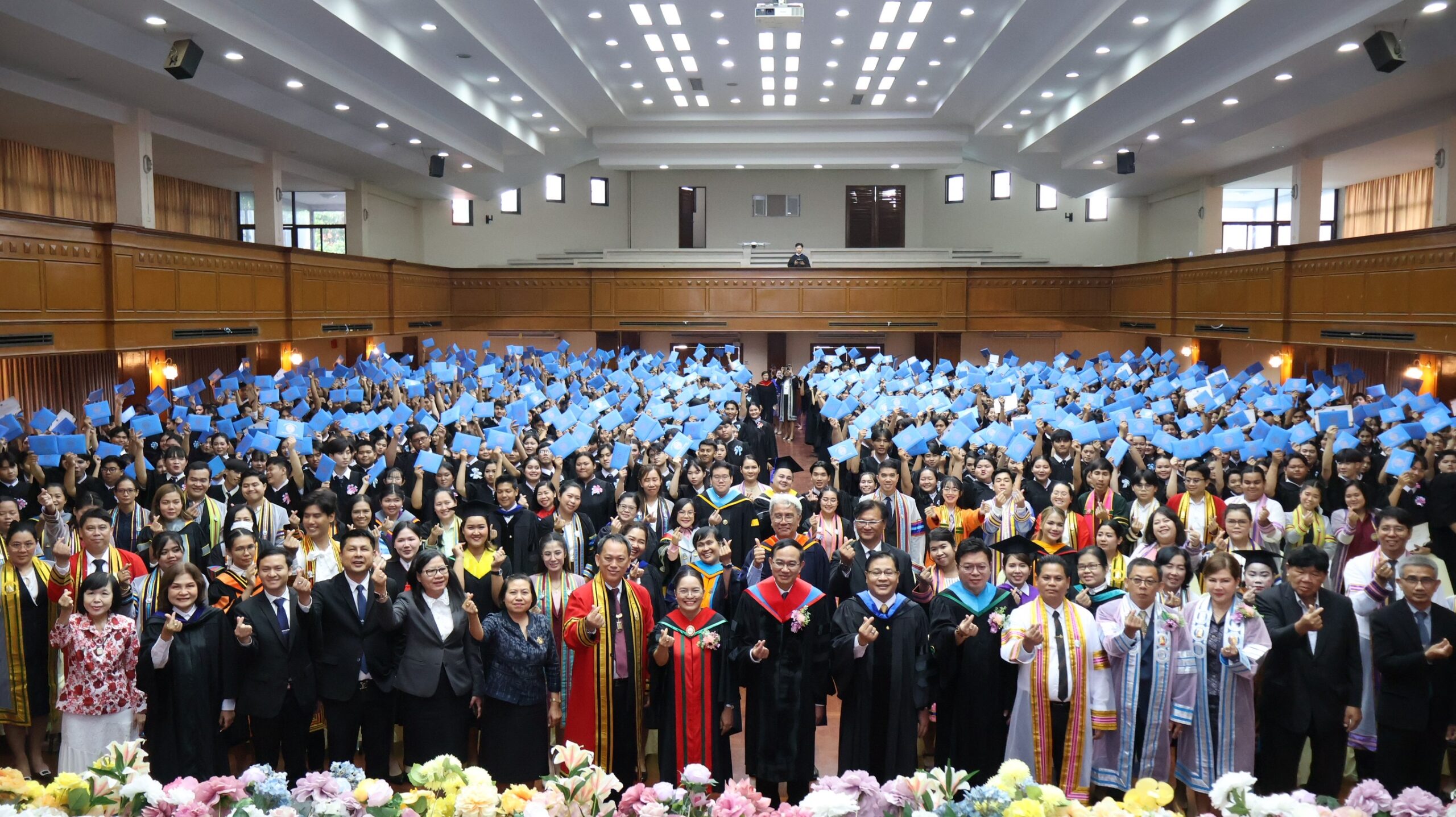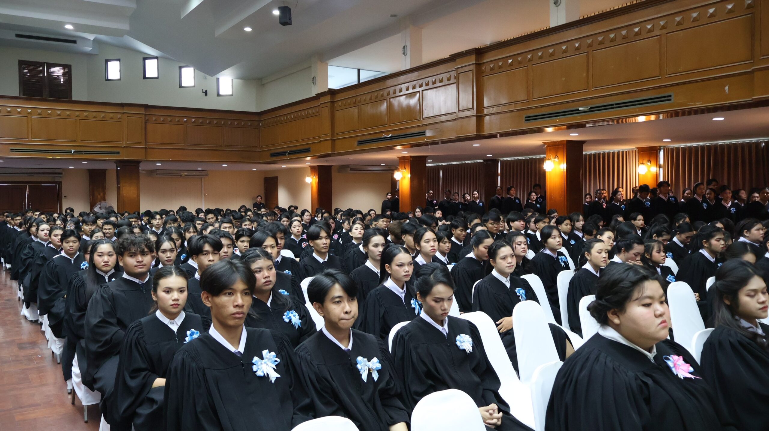 จากนั้น รศ.ดร.ประวิต เอราวรรณ์ เลขาธิการคณะกรรมการข้าราชการครูและบุคลากรทางการศึกษา (เลขาธิการ ก.ค.ศ.) เป็นประธานในพิธีมอบประกาศนียบัตรให้กับนักศึกษาที่สำเร็จการศึกษา ประจำปี พ.ศ.2567 โดยในปีนี้มีผู้สำเร็จการศึกษาในระดับประกาศนียบัตรวิชาชีพ ปวช. จำนวน 480 คน สำเร็จการศึกษาในระดับประกาศนียบัตรวิชาชีพชั้นสูง (ปวส.) 300 คน รวมทั้งสิ้น 780 คน โดยบรรยากาศเป็นไปอย่างชื่นมื่นซึ่งมีคณะครู อาจารย์และผู้ปกครอง ได้เข้ามามอบดอกไม้และของขวัญแสดงความยินดีกับนักศึกษาที่จบการศึกษาทั้ง 780 คน