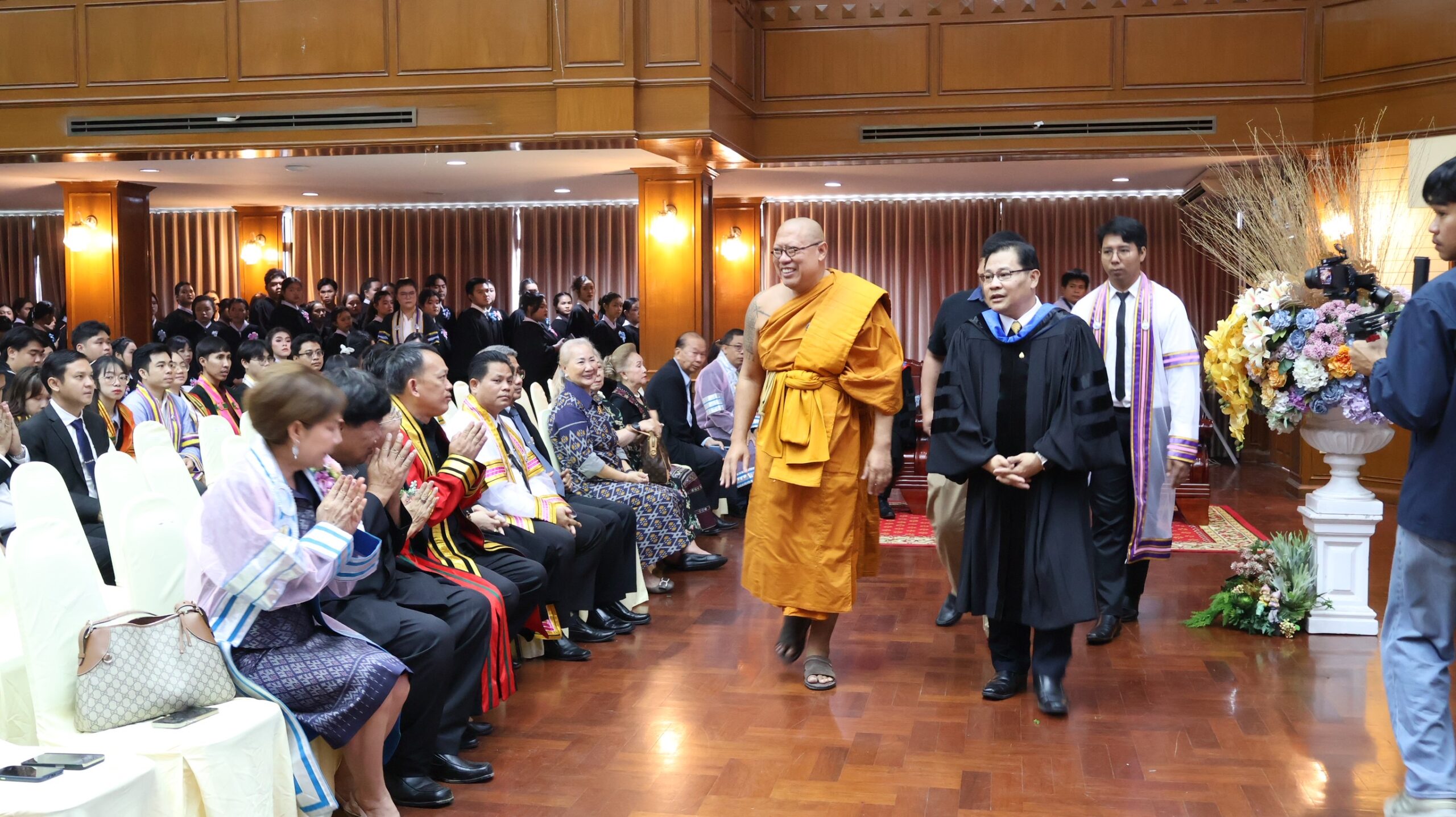 โดยพิธีการเริ่มจาก พระครูปลัดสิทธิวัฒน์ หลวงพี่น้ำฝน เจ้าอาวาสวัดไผ่ล้อมพระอารามหลวง (นครปฐม) มอบปริญญาดุษฎีบัณฑิต ให้กับ ดร.วุฒิชัย รักชาติ ผู้อำนวยการวิทยาลัยอาชีวศึกษานครปฐม ซึ่งเป็นนักศึกษาที่ได้รับทุนศึกษาต่อในระดับปริญญาเอก จากมหาวิทยาลัยศิลปากร ซึ่งหลวงพี่น้ำฝน เป็นผู้สนับสนุนทุนการศึกษาให้ในระดับปริญญาเอก จากนั้นได้ให้โอวาทกับนักศึกษาที่เข้ารับประกาศนียบัตร เพื่อเตรียมพร้อมสำหรับการไปศึกษาต่อและเข้าทำงานตามที่ได้รับการศึกษามา