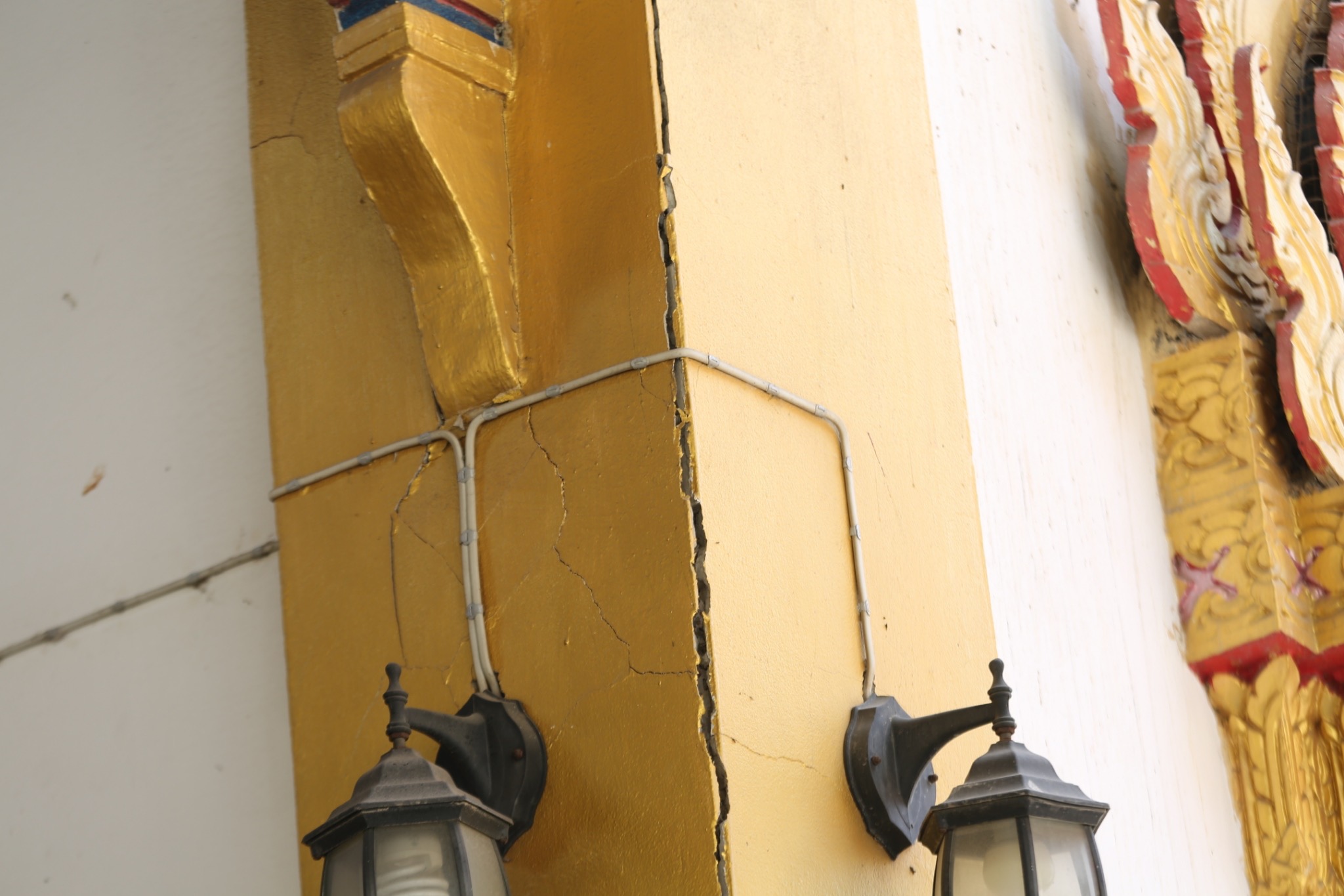 โบสถ์เก่า วิหารบูรพาจารย์ วัดไผ่ล้อมพระอารามหลวง (นครปฐม) ยุคสมัยหลวงพ่อพูล เสียหายจากแรงสั่นสะเทือนเหตุแผ่นดินไหว เมื่อวันที่ 28 มีนาคม ที่ผ่านมา