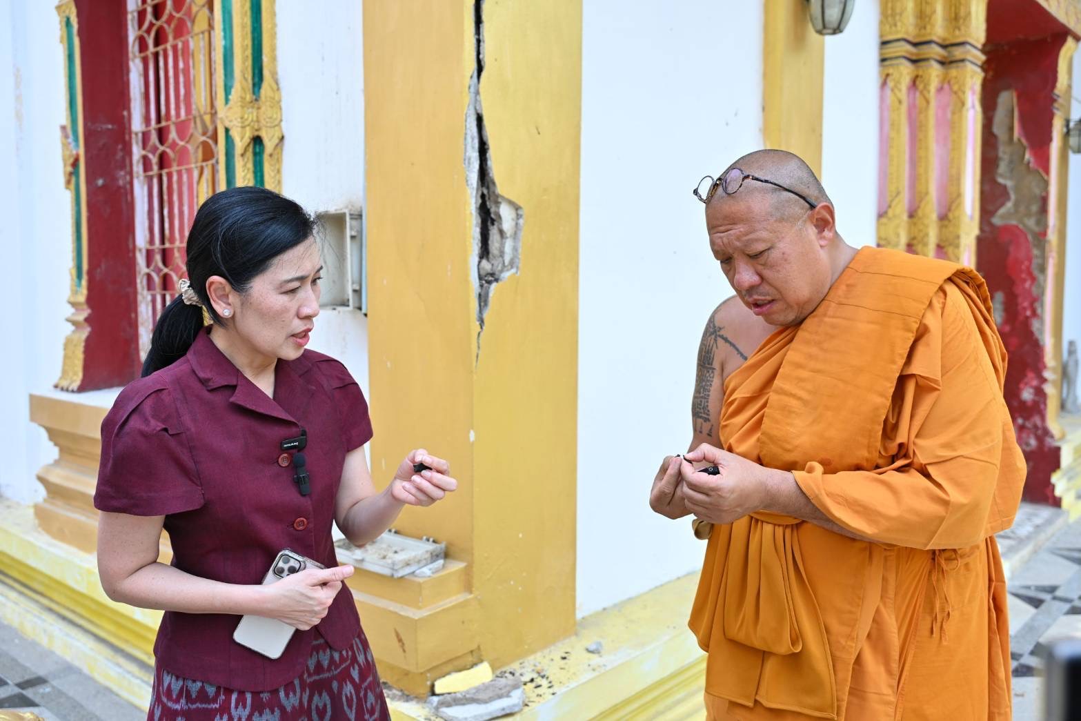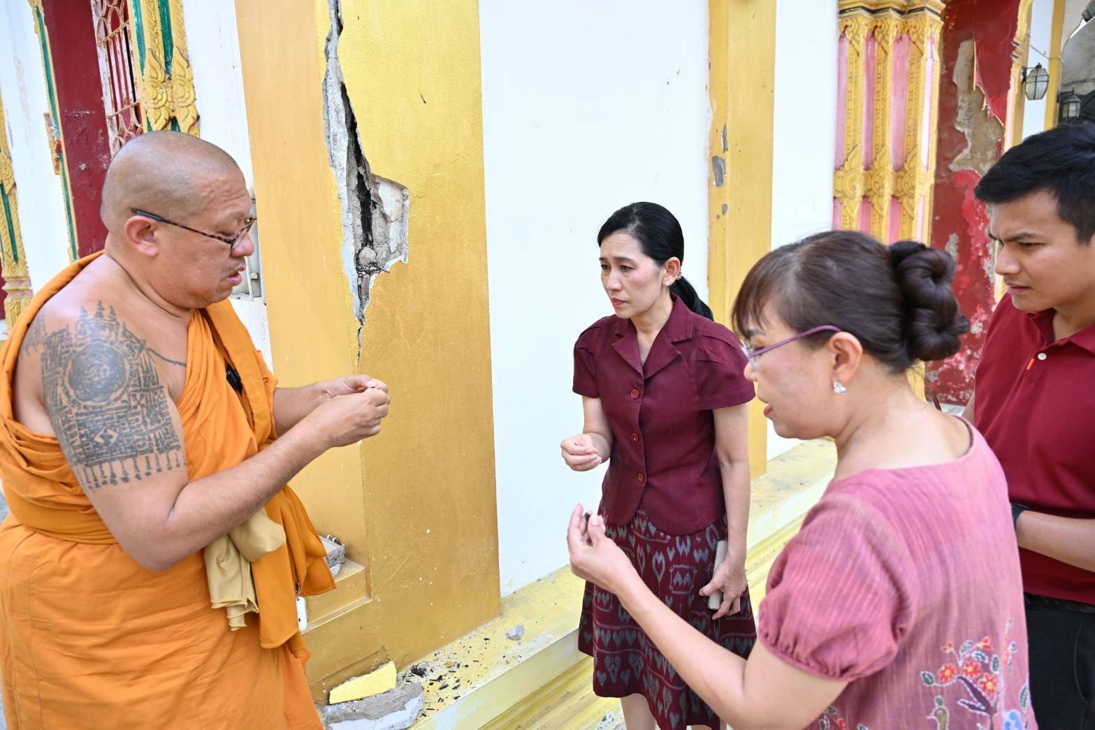 นางสาวอโรชา นันทมนตรี ผู้ว่าราชการจังหวัดนครปฐม เผยว่าหลังจากได้ตรวจสอบสถานที่ซึ่งพบว่ามีความเสียหายจากเหตุแผ่นดินไหวแล้วพบว่าเกิดรอยร้าวขึ้นหลายจุด ซึ่งเบื้องต้นวันนี้จะสั่งการประสานให้ สำนักงานโยธาธิการและผังเมืองจังหวัดนครปฐม ได้นำวิศวกรซึ่งเชี่ยวชาญทางด้านโครงสร้างเข้ามาตรวจสอบให้ชัดเจนว่ามีผลกระทบกับโครงสร้างหลักหรือไม่ ในส่วนพื้นที่ต่างๆ ได้มีการแจ้งว่าให้องค์กรปกครองส่วนท้องถิ่นทุกแห่งมีการตรวจสอบในพื้นที่ของตัวเองว่าที่ใดมีความเสียหายก็ให้วิศวกรในหน่วยงานเข้าตรวจสอบโครงสร้างพื้นฐานในพื้นที่รับผิดชอบด้วย