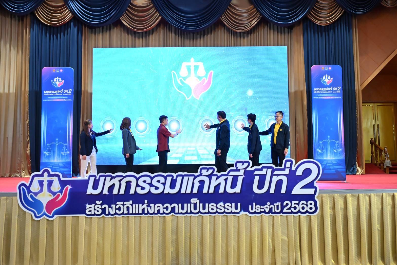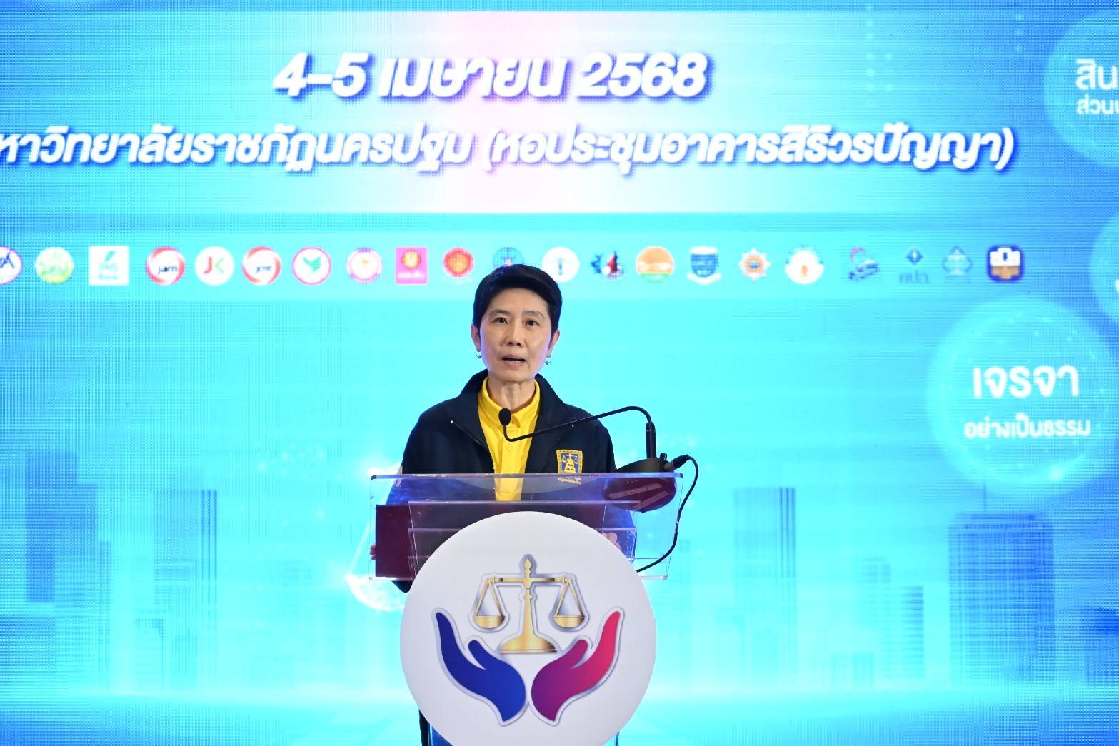 วันที่ 4 เมษายน 2568 ที่หอประชุมสิริวรปัญญา มหาวิทยาลัยราชภัฏนครปฐม จังหวัดนครปฐม นายยู่สิน จินตภากร ผู้ช่วยรัฐมนตรีประจำกระทรวงยุติธรรมเป็นประธานในพิธีเปิดงาน “มหกรรมแก้หนี้ สร้างวิถีแห่งความเป็นธรรม” ปีที่ 2 จังหวัดนครปฐม โดยมี นางสาวดวงดาว เกียรติพิศาลสกุล รองอธิบดีกรมคุ้มครองสิทธิและเสรีภาพ เป็นผู้กล่าวรายงาน และนายยงยุทธ สวนทอง รองผู้ว่าราชการจังหวัดนครปฐม กล่าวต้อนรับ