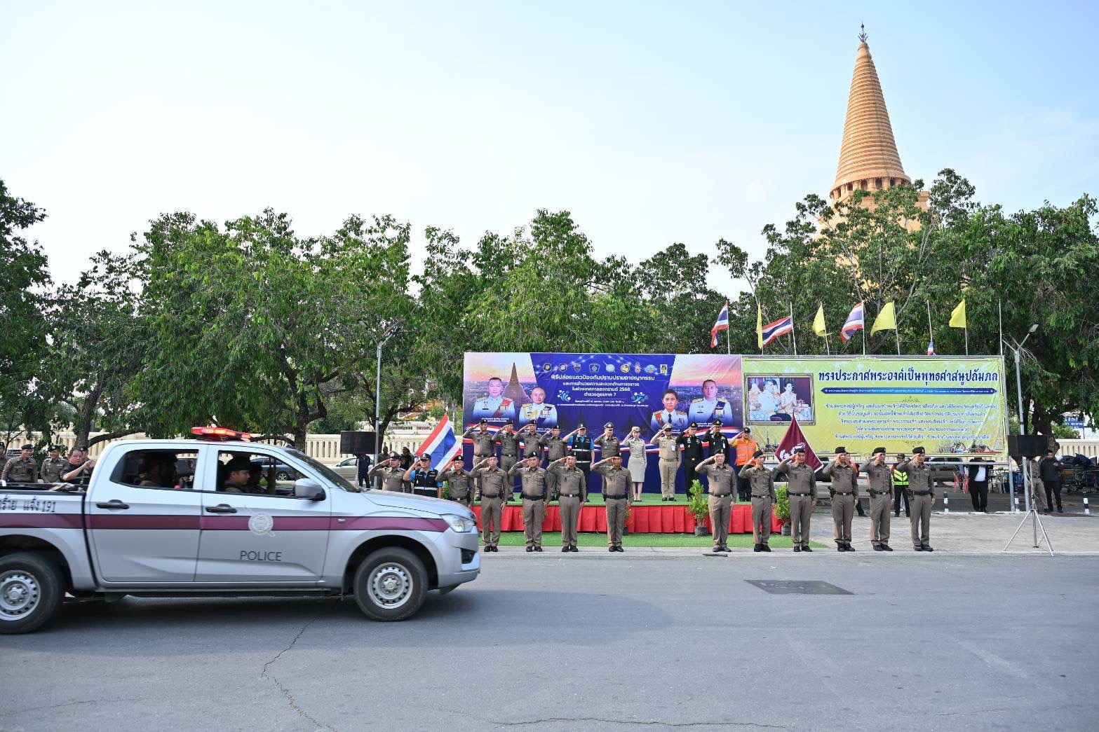 ขวัญ “ขับขี่ปลอดภัย เมืองไทยไร้อุบัติเหตุ” โดยบังคับใช้กฎหมายใน 10 ข้อหาหลัก โดยบูรณาการกำลังทั้งภาครัฐและภาคเอกชน ประกอบด้วย ข้าราชการตำรวจในสังกัดตำรวจภูธรจังหวัดนครปฐม ตำรวจทางหลวง ตำรวจจท่องเที่ยว ตำรวจตรวจคนเข้าเมือง ตำรวจปราบปรามยาเสพติด เจ้าหน้าที่ทหาร ฝ่ายปกครอง และอาสาสมัคร เข้าร่วมพิธีปล่อยแถวระดมกวาดล้างในครั้งนี้ รวมทั้งสิ้น 420 นาย