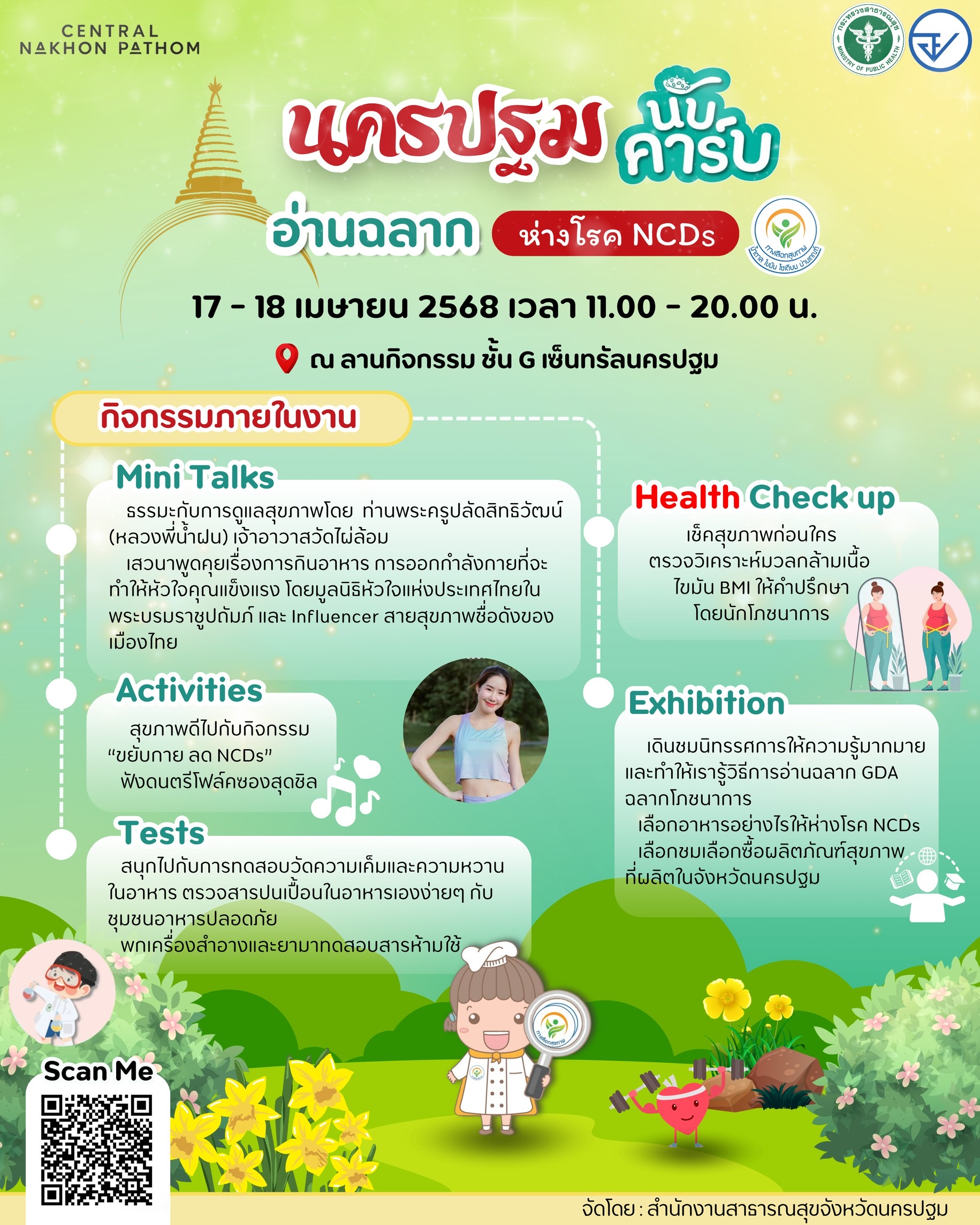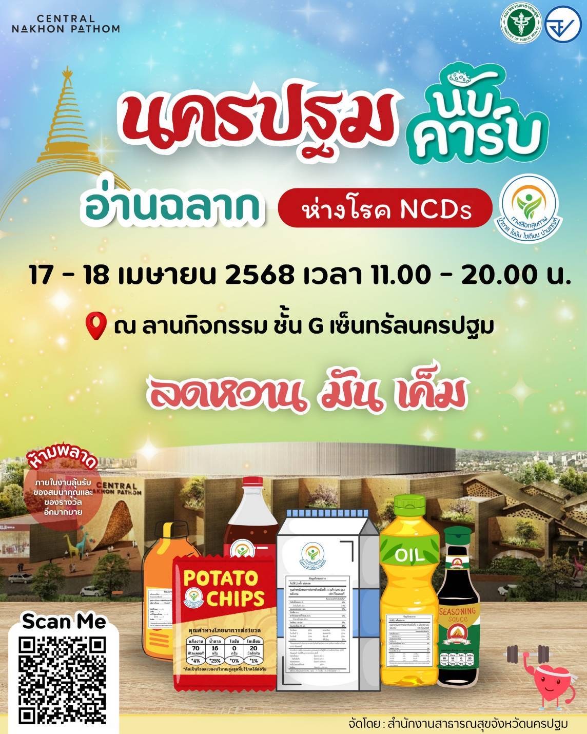 นายแพทย์วิโรจน์ กล่าวปิดท้าย สำนักงานสาธารณสุขจังหวัดนครปฐมได้ตระหนักถึงเรื่องดังกล่าวจึงได้มีการจัดงานนครปฐมนับคาร์บ อ่านฉลากห่างโลก NCDs ซึ่งจะจัดขึ้นในวันที่ 17-18 เมษายน 2568 ตั้งแต่เวลา 11.00-20.00 น. ณลานกิจกรรม ชั้นG เซ็นทรัลนครปฐม โดยมีกิจกรรมที่หลากหลายซึ่งขอเชิญชวนประชาชนทั่วไปเข้าร่วมกิจกรรมและหาความรู้ในนิทรรศการและการเสวนาที่จะมีบุคลากรทางการแพทย์และมีกิจกรรมในการร่วมชิงรางวัลมากมายซึ่งประชาชนที่เข้ามา ภายในงานก็จะได้รับความรู้กลับไปและหากนำ ไปปฏิบัติก็จะเกิดประโยชน์กับ การดูแลสุขภาพอนามัยให้มีความแข็งแรงและอายุยืนยาวปลอดจากโรคในกลุ่มนี้ได้เป็นอย่างดี ซึ่งจะส่งผลถึงสุขภาพโดยรวมที่ดีขึ้นของคนนครปฐมด้วย