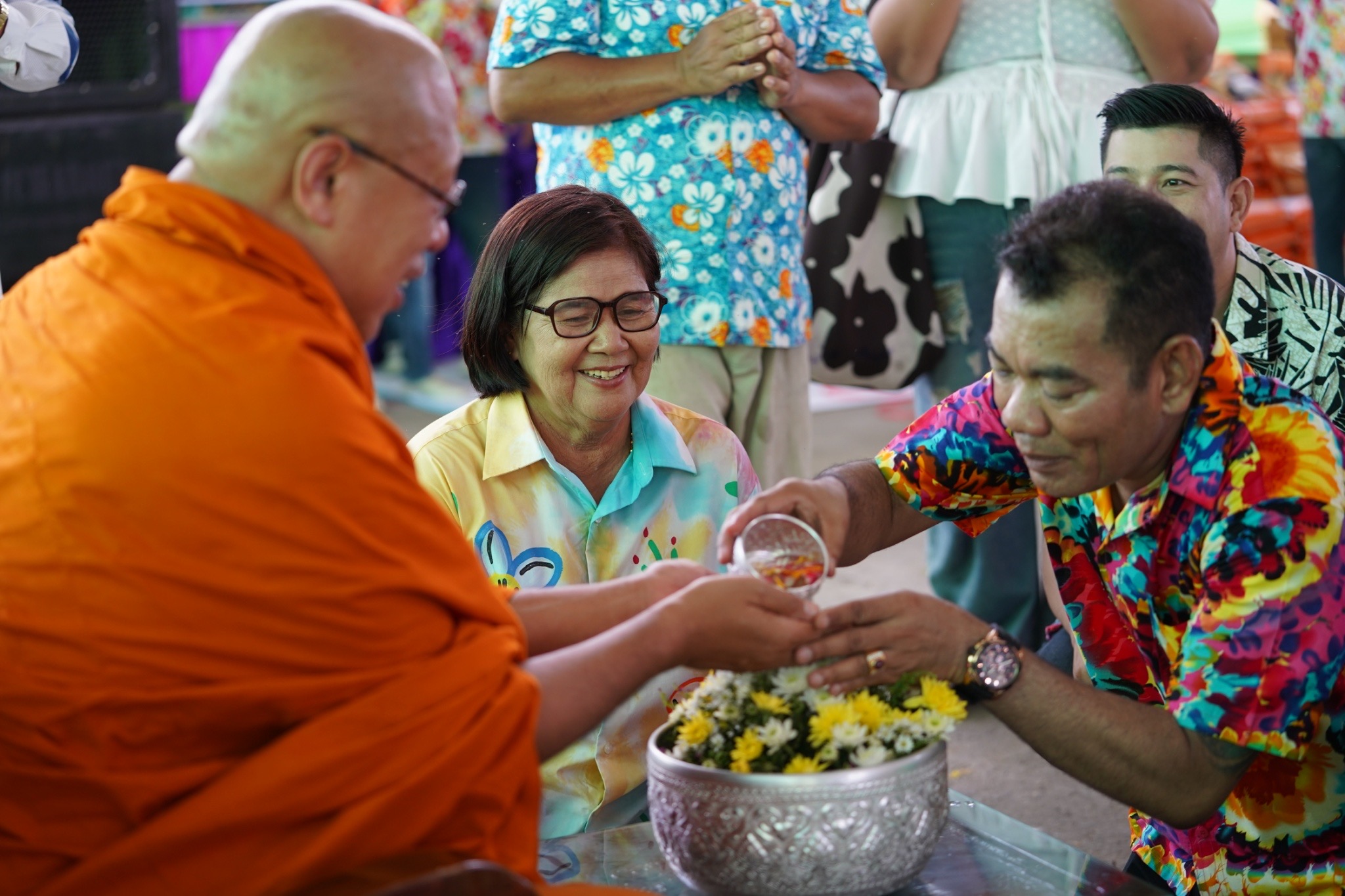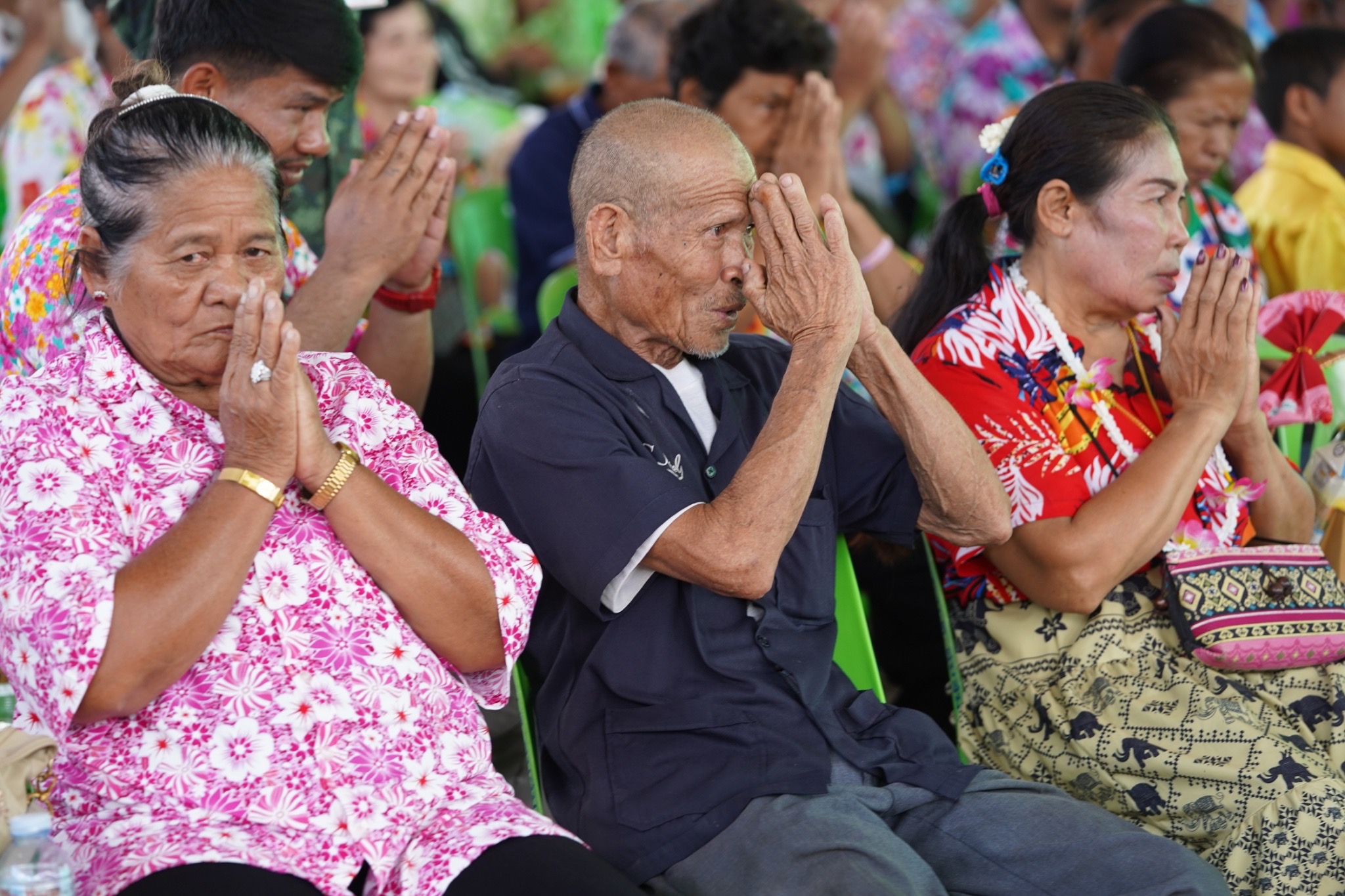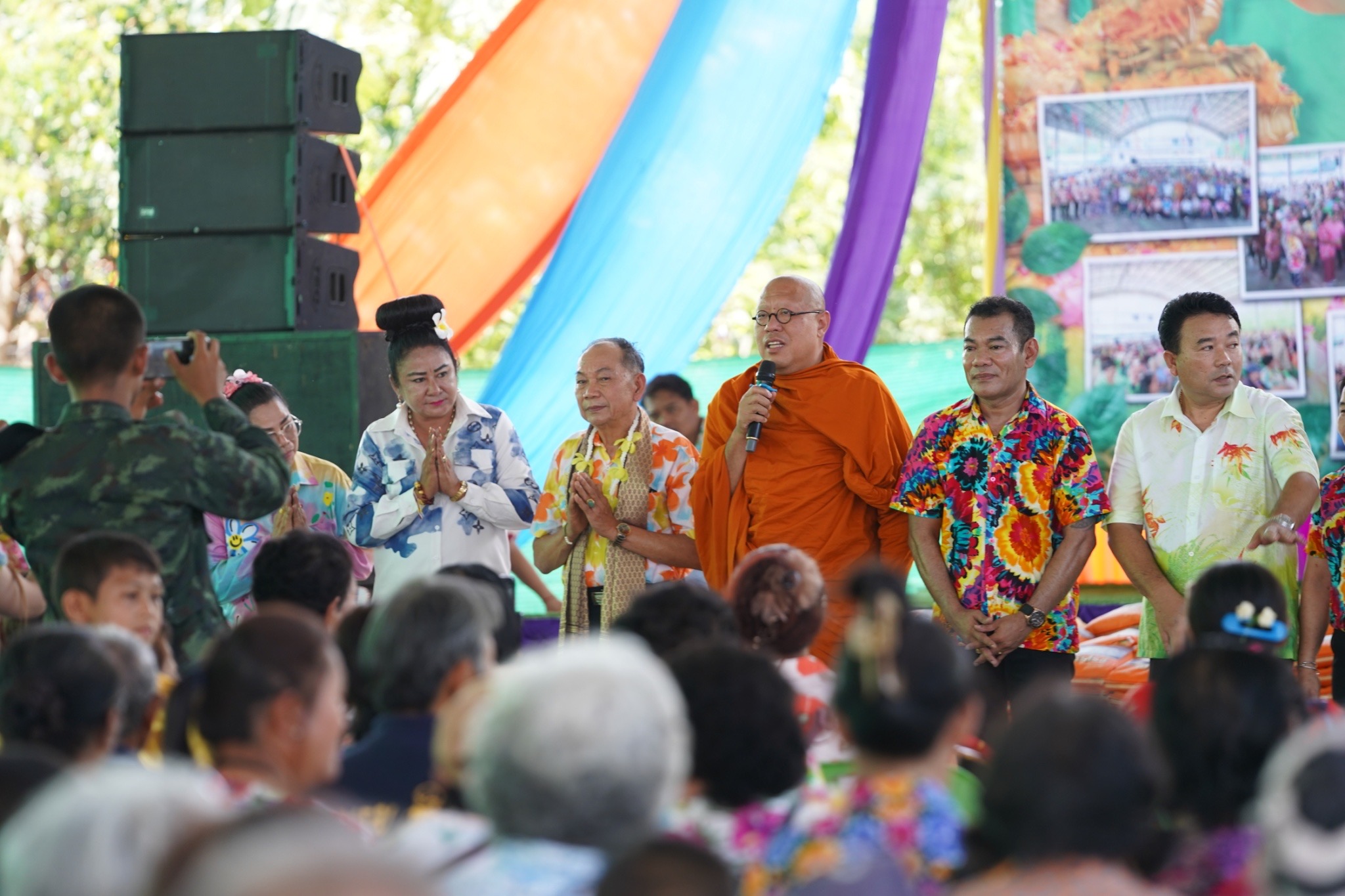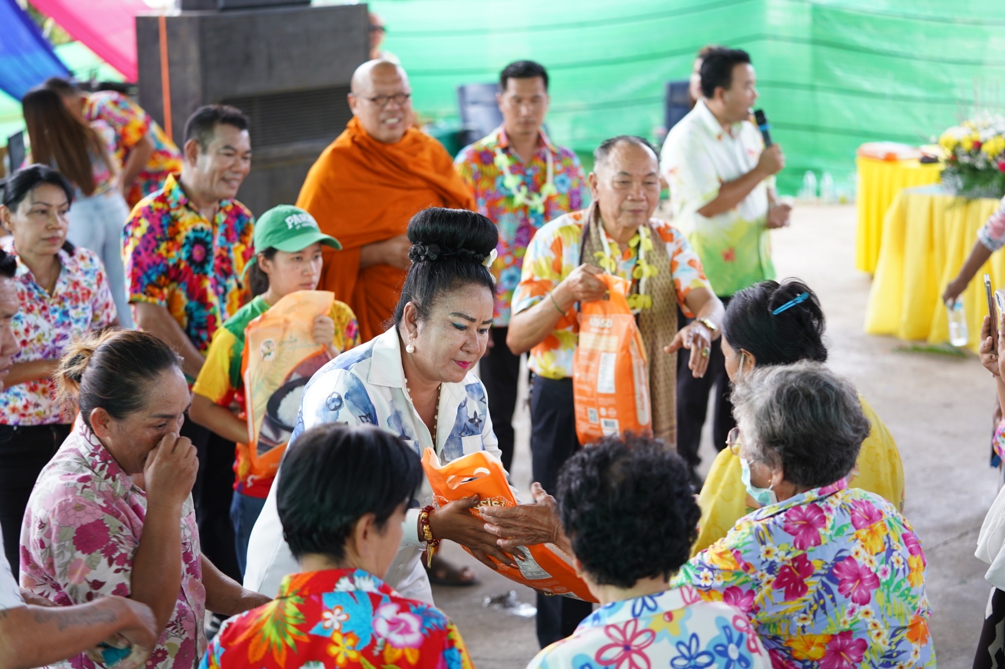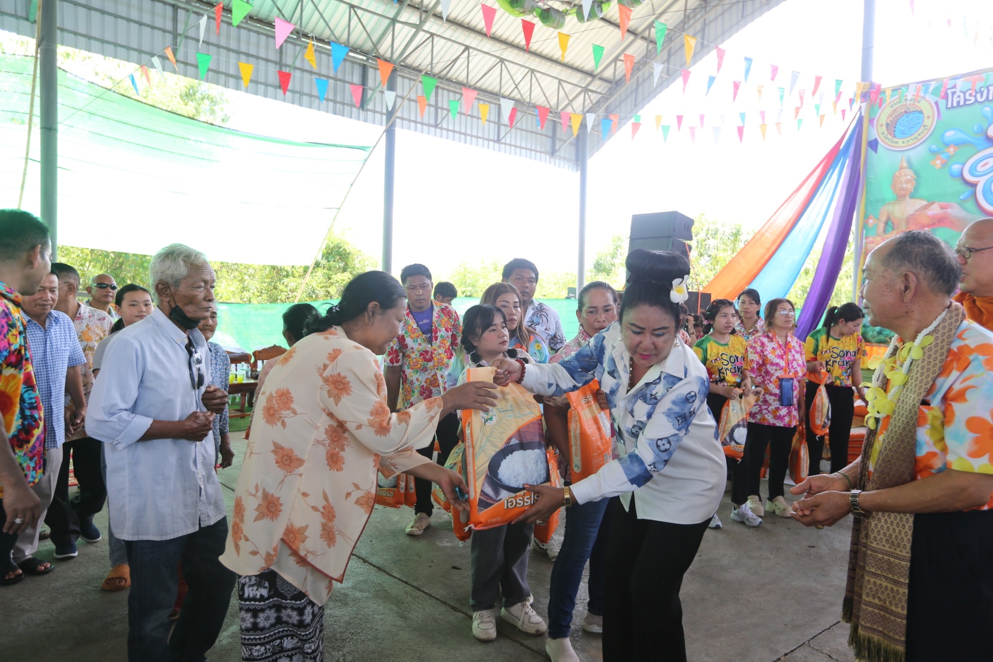 ภายในงานนอกจากจะเปิดให้มีการแสดงจากผู้สูงอายุและการเล่นในท้องถิ่นที่คงสืบสานเอาไว้เป็นมรดกในชุมชน หนึ่งในกิจกรรมที่ชาวบ้านจะทราบดีนั่นคือการแจกข้าวสาร อาหารแห้ง เครื่องใช้ที่จำเป็นให้กับชาวบ้านซึ่งเป็นกิจกรรมที่หลวงพี่น้ำฝน ได้มีการจัดริเริ่มขึ้นเป็นปีแรกเมื่อปีที่แล้ว ซึ่งมีชาวบ้านหลายร้อยครัวเรือนต่างมารอรับข้าวสารและฟังคติธรรมในการให้ชาวบ้านได้นำหลักพระธรรมที่ง่ายคือความกตัญญูมาปรับใช้ซึ่งในวันดังกล่าวจะเห็นว่ามีหลายครอบครัวที่มีลูกหลานพากันจูงไม้จูงมือผู้สูงวัยในบ้านและที่เป็นเพื่อนบ้านมาร่วมกิจกรรมและรับของแจกด้วยความอบอุ่น โดยเป็นไปตามประสงค์ของหลวงพี่น้ำฝน ที่มุ่งหวังจะให้ชาวบ้านมีความสามัคคีกันในชุมชนมีความเอื้อเฟื้อเผื่อแผ่กันซึ่งเป็นเอกลักษณ์อันดีงามในสังคมที่จะช่วยประคับประคองกันไปในทุกสถานการณ์ของสังคมที่เปลี่ยนไป ซึ่งก่อนเสร็จสิ้นพิธีการนายกอบต.ลุ่มสุ่ม ข้าราชการ ชาวบ้านร่วมสรงน้ำหลวงพี่น้ำฝน เพื่อแสดงออกถึงความของคุณในเมตตาต่อชุมชน