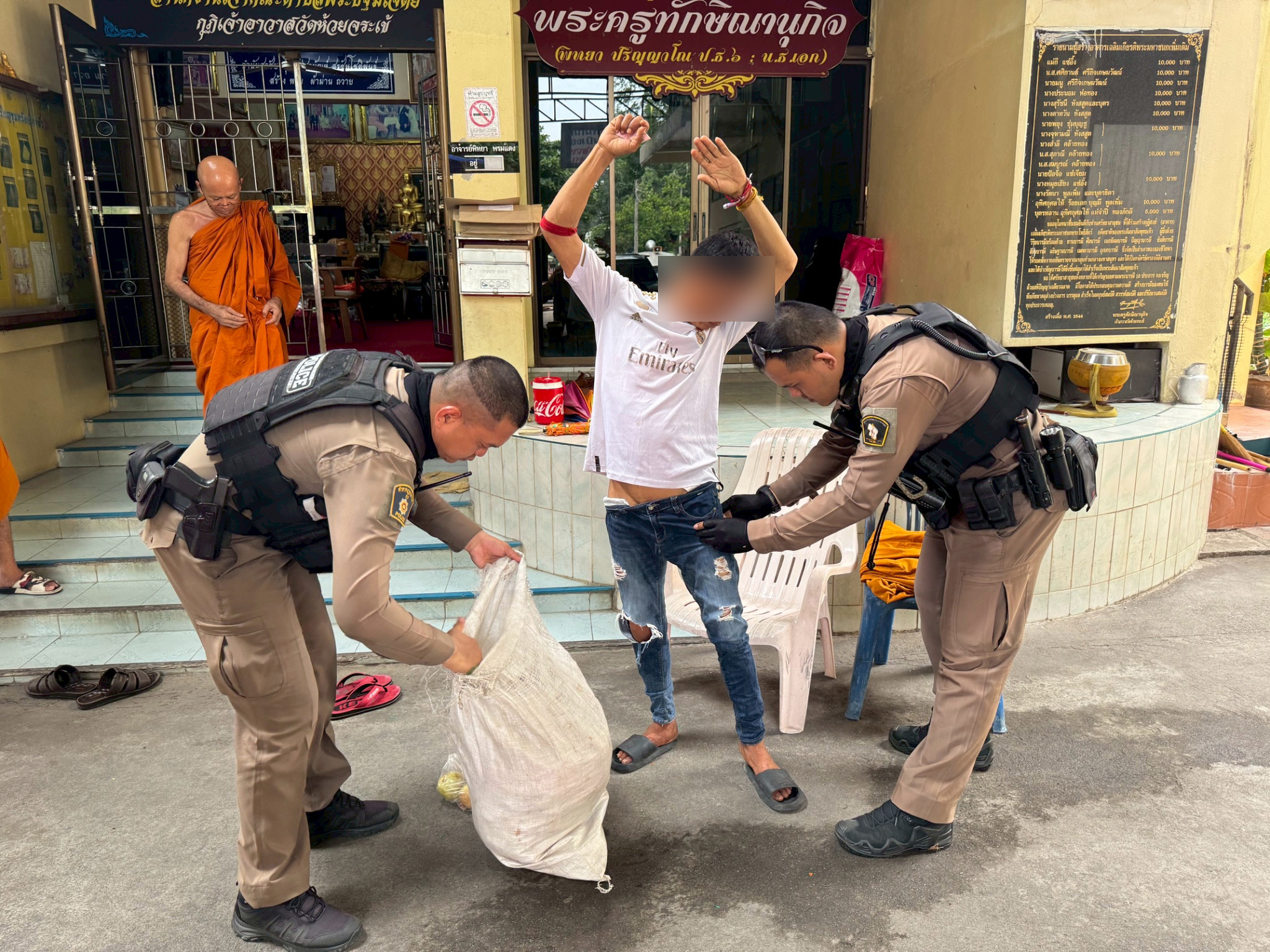 โดยเมื่อไปถึงพบชายแต่งกายเป็นพระภิกษุ นั่งอยู่ริมทางเท้า สอบถามทราบชื่อคือ นายวิทยา (นามสมมติ) อายุ 40 ปี และได้สารภาพว่าไม่ได้เป็นพระแต่ไปหาชุดมาแต่งกายเป็นพระภิกษุ เดินไปในชุมชนซึ่งเป็นพื้นที่ใกล้ตลาดซอย 2 เพื่อให้ประชาชนที่สัญจรไปมาเข้าใจว่าเป็นพระและจะใส่บาตทำบุญเนื่องจากเป็นช่วงเทศกาลสงกรานต์ จากนั้นได้นำตัวไปพบกับ พระครูทักษิณานุกิจ เจ้าคณะตำบลห้วยจระเข้ เพื่อให้ทำการตรวจสอบ