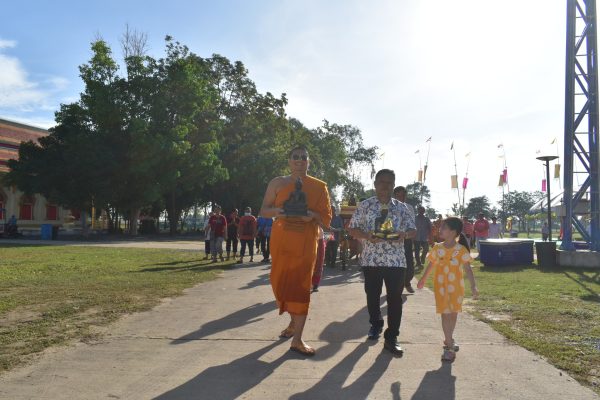 หลังจากมีการยกธงสงกรานต์แล้ว มีการทำบุญฉลองธงก็ถือเป็นการสำเร็จเสร็จสิ้นประเพณี แต่ที่วัดหนองกระทุ่ม จะทำบุญทุกวัน ตั้งแต่วันที่ 13-20 เมษายน สำหรับปีนี้ต่ออีก 1 วันซึ่งตรงกับวันพระ จึงให้มีการเชิญ “พระเจ้าขึ้น” ก็ไม่รู้ว่าในอนาคตสักกี่ปีประเพณีนี้จะได้อยู่คู่กับพี่น้องชาวลาวครั่งรุ่นหลังหรือไม่