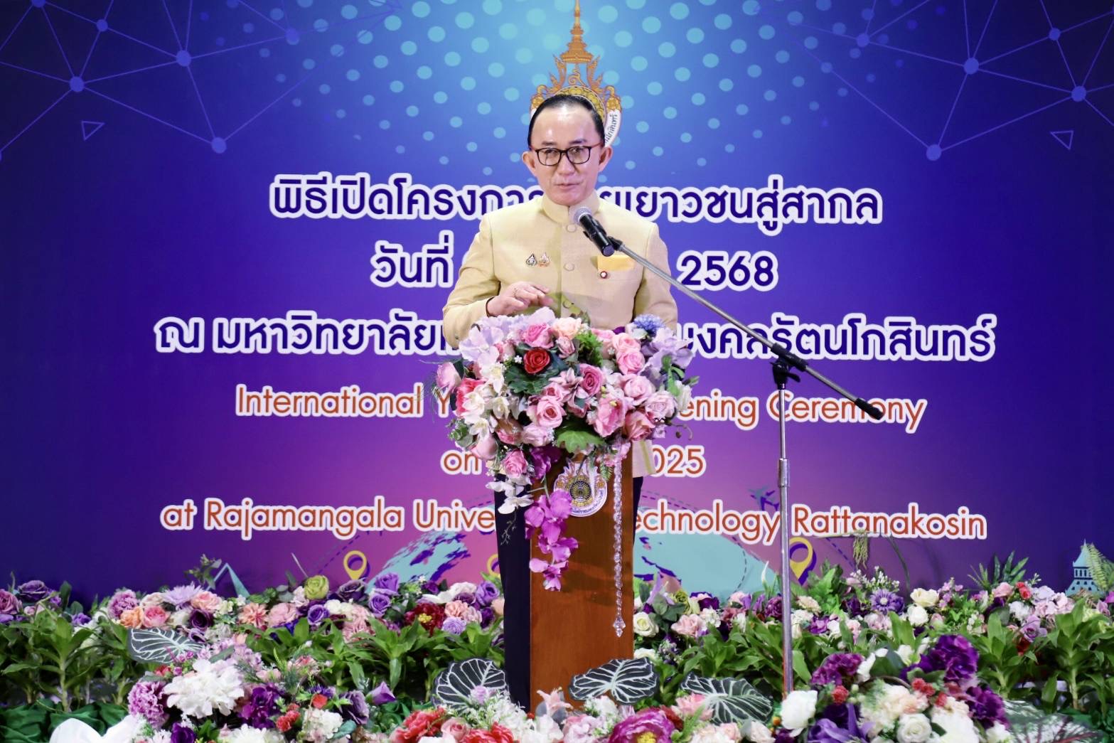 วันพุธที่ 23 เมษายน 2568 มทร.รัตนโกสินทร์ โดยกองกลาง งานวิเทศสัมพันธ์ จัดโครงการค่ายเยาวชนสู่สากล (International Youth Camp 2025) ณ ห้องประชุมชั้น 5 อาคารเฉลิมพระเกียรติ วิทยบริการและเทคโนโลยีสารสนเทศ ศาลายา โดยได้รับเกียรติจาก หม่อมหลวงปนัดดา ดิศกุล เป็นประธานในพิธีเปิดโครงการ และ รศ.ดร.อาคีรา ราชเวียง รองอธิการบดี ให้การต้อนรับผู้เข้าร่วมโครงการ ซึ่งโครงการนี้จัดขึ้นระหว่างวันที่ 22 – 30 เมษายน 2568 โดยมีวัตถุประสงค์เพื่อส่งเสริมให้นักศึกษามีโอกาส พัฒนาทักษะภาษาอังกฤษ ซึ่งเป็นภาษากลางของประชาคมโลก ผ่านการสื่อสารและการเรียนรู้ร่วมกันในรูปแบบกิจกรรมสร้างสรรค์ พร้อมทั้งส่งเสริมความตระหนักรู้ในความหลากหลายทางวัฒนธรรม เพื่อเตรียมความพร้อมสู่การทำงานในระดับนานาชาติ นอกจากการเรียนรู้ด้านภาษาและวัฒนธรรมแล้ว โครงการยังเปิดโอกาสให้นักศึกษาได้สร้างมิตรภาพอันดีและเครือข่ายระหว่างประเทศผ่านกิจกรรมแลกเปลี่ยนเรียนรู้ เสริมสร้างความเข้าใจอันดี และส่งเสริมให้เกิดความร่วมมือในอนาคต ซึ่งสอดคล้องกับ นโยบายของมหาวิทยาลัยในการพัฒนาทักษะด้านภาษา เทคโนโลยี และนวัตกรรม รวมถึงการยกระดับศักยภาพการแข่งขันของประเทศในระดับนานาชาติ โครงการ International Youth Camp จึงไม่เพียงเป็นเวทีแห่งการเรียนรู้ แต่ยังเป็นพื้นที่แห่งการสร้างอนาคตของเยาวชนไทยในเวทีโลกอย่างยั่งยืน