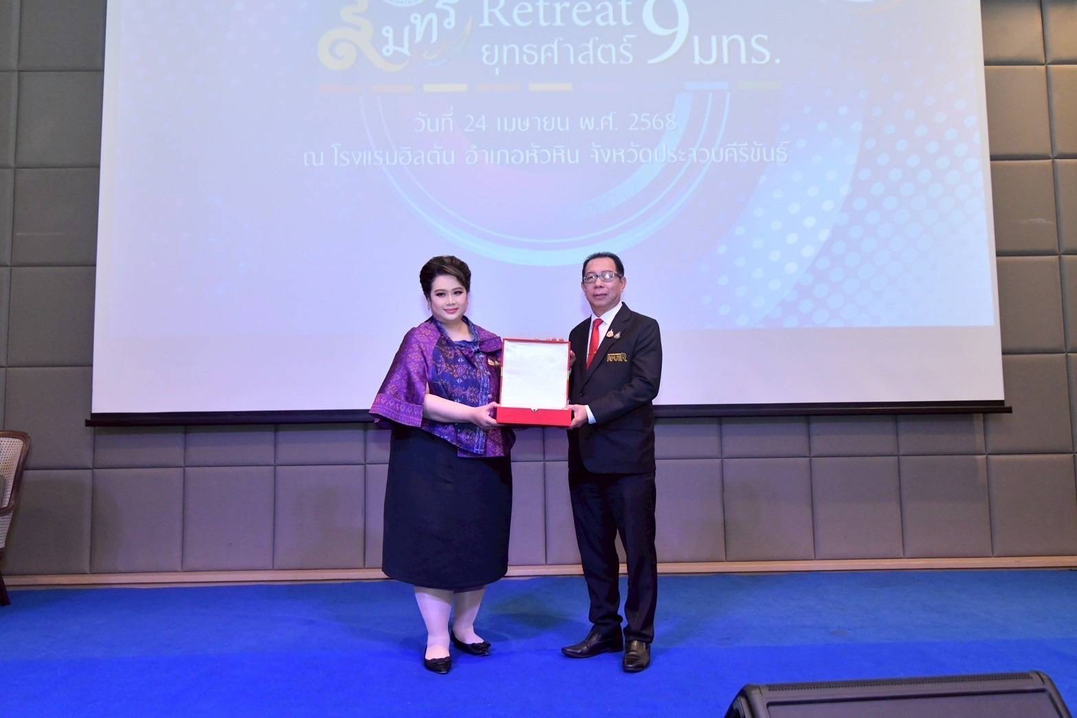 วันที่ 24 เมษายน 2568 ณ โรงแรมฮิลตัน หัวหิน จ.ประจวบคีรีขันธ์ รศ.ดร.อุดมวิทย์ ไชยสกุลเกียรติ ประธานที่ประชุมอธิการบดีมหาวิทยาลัยเทคโนโลยีราชมงคล (ทปอ.มทร.) เสนอยุทธศาสตร์ 9 มทร. ในการรับสานต่อวิสัยทัศน์ของนางสาวศุภมาส อิศรภักดี รัฐมนตรีว่าการกระทรวงการอุดมศึกษา วิทยาศาสตร์ วิจัย และนวัตกรรม (อว.) ในโอกาสมอบนโยบายการขับเคลื่อนยุทธศาสตร์ของกระทรวงฯ ในงานประชุมจัดทำแผนยุทธศาสตร์ 9 มทร.