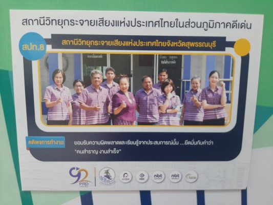 นางสาวสมจิตต์ น้ำค้าง ผู้อำนวยการสถานีวิทยุกระจายเสียงแห่งประเทศไทย จังหวัดสุพรรณบุรี พร้อมทีมงาน รับรางวัล สวทภูมิภาคดีเด่น ประจำปี 2567 พร้อมกล่าวว่า กรมประชาสัมพันธ์ ก่อตั้งครบ 92 ปี ในวันที่ 3 พฤษภาคม 2568