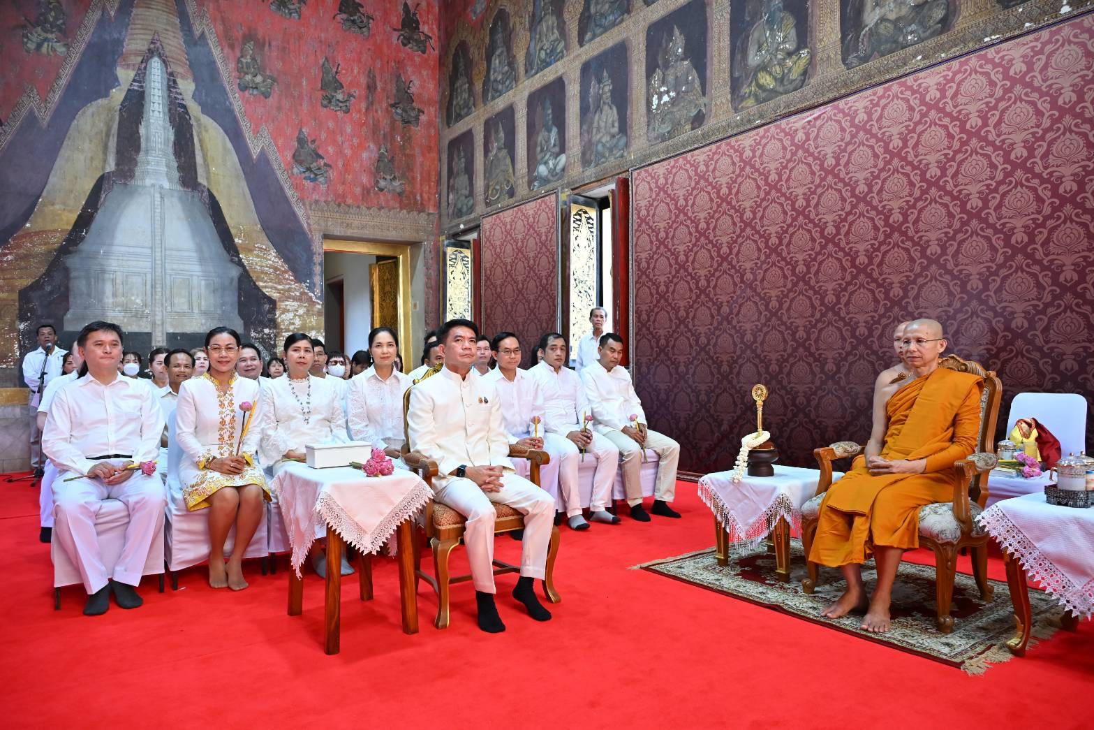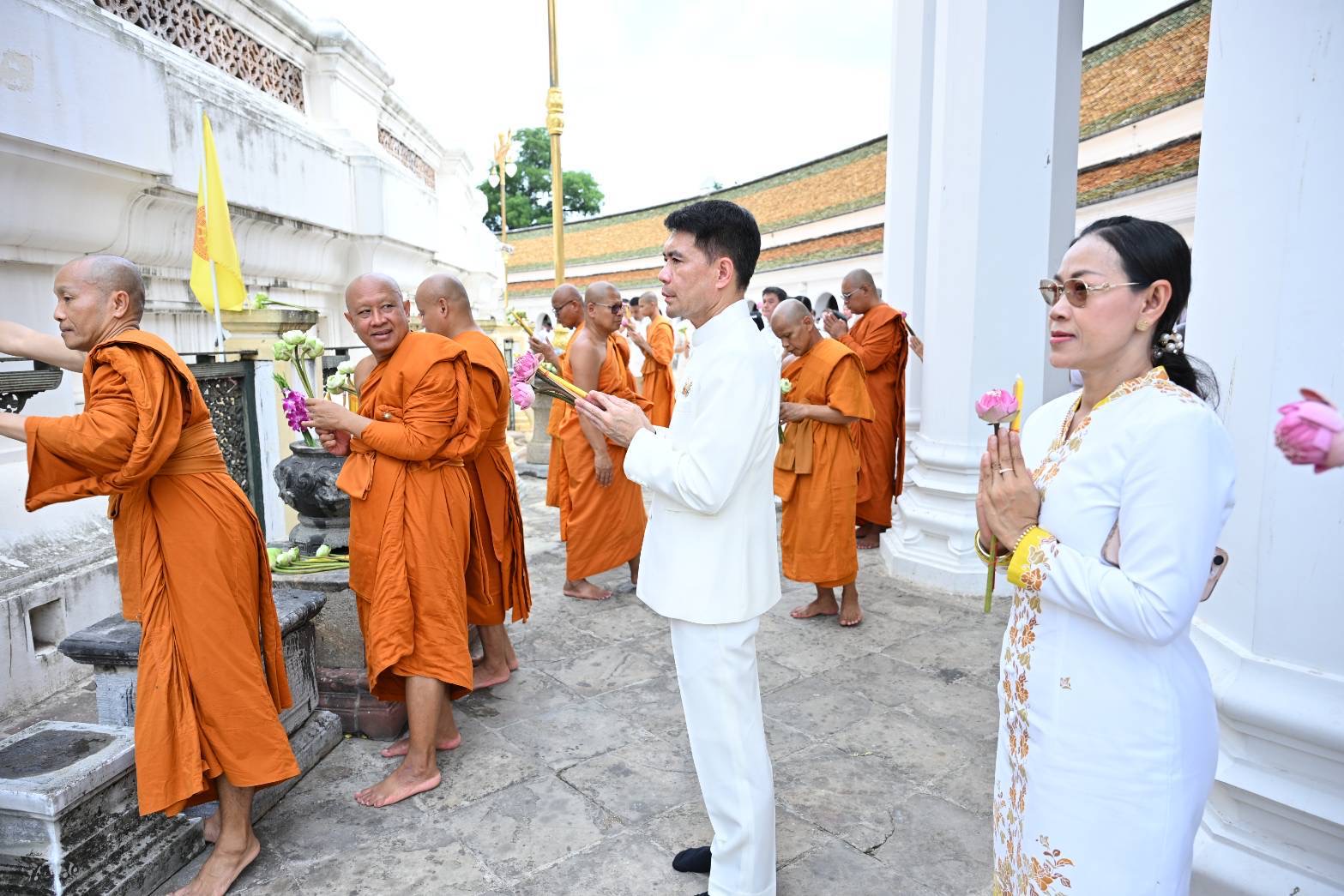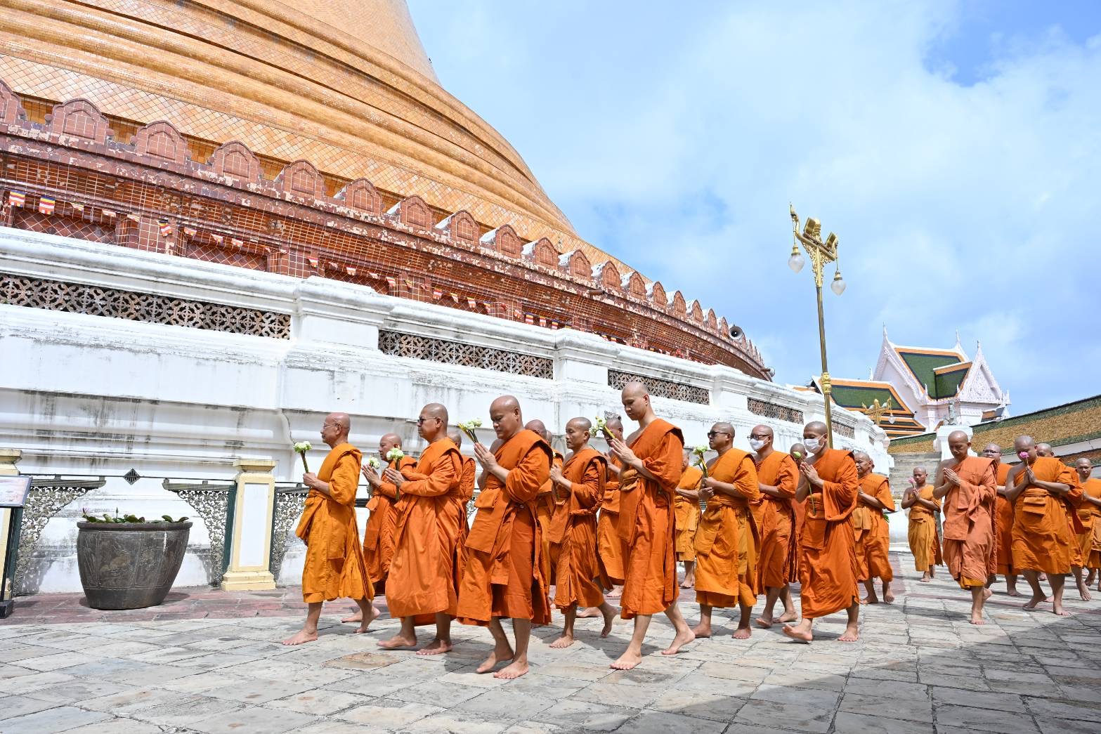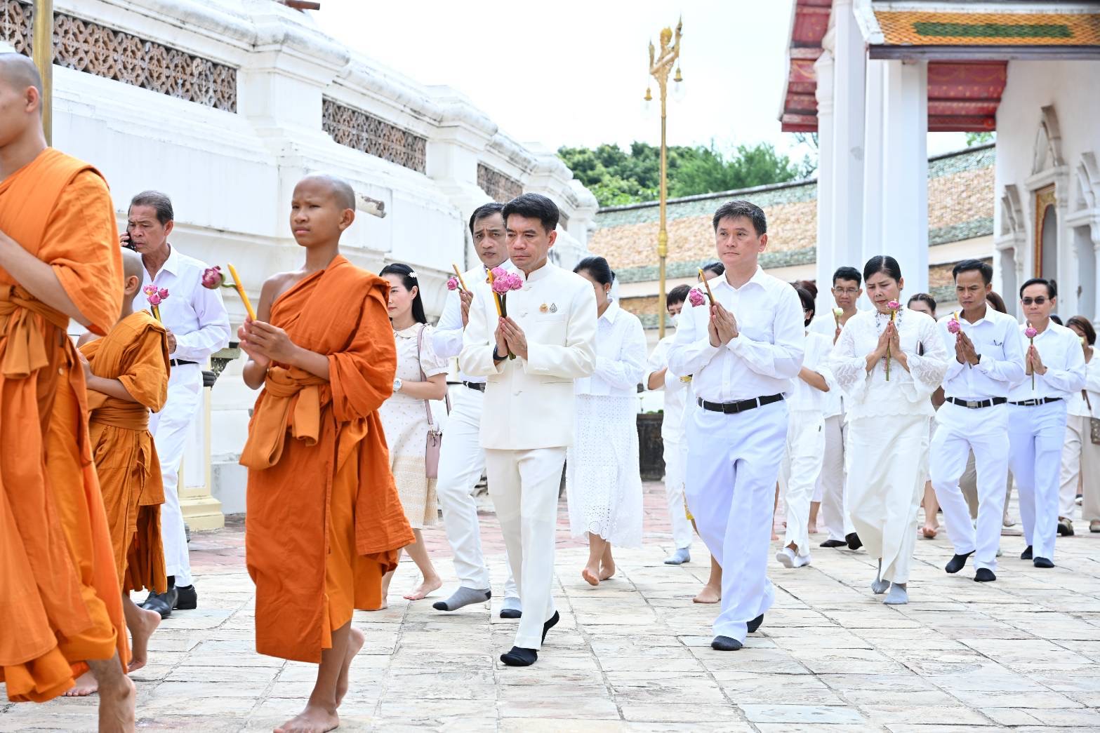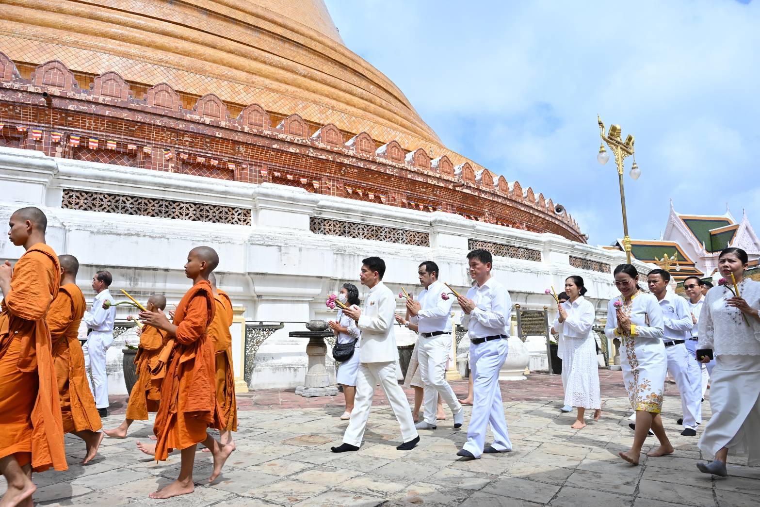 รองผู้ว่าราชการจังหวัดนครปฐม นำพุทธศาสนิกชนแต่งกายชุดขาว ร่วมพิธีบำเพ็ญกุศลและเวียนเทียนรอบองค์พระปฐมเจดีย์ เนื่องในวันวิสาขบูชา วันสำคัญสากลของโลกประจำปี 2568