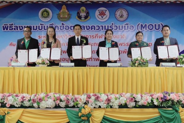 วันนี้ (14 พ .ค.68) ที่โรงเรียนกีฬาจังหวัดสุพรรณบุรี นายวิษณุ ไล่ชะพิษ อธิการบดีมหาวิทยาลัยการกีฬาแห่งชาติ เป็นประธานในพิธีลงนามบันทึกข้อตกลงความร่วมมือ(MOU) ทางด้านการศึกษาและกีฬากับ 4 สถาบันในจังหวัดสุพรรณบุรี ได้แก่ สำนักงานเขตพื้นที่การศึกษาประถมศึกษาสุพรรณบุรีเขต1 /วิทยาลัยช่างศิลปสุพรรณบุรีสถาบันบัณฑิตพัฒนศิลป์ /โรงเรียนอนุบาลบ้านท่าพระยาจักร อ.อู่ทอง จ.สุพรรณบุรี และโรงเรียนวัดป่าพระเจ้า อ.ศรีประจันต์ จ.สุพรรณบุรี