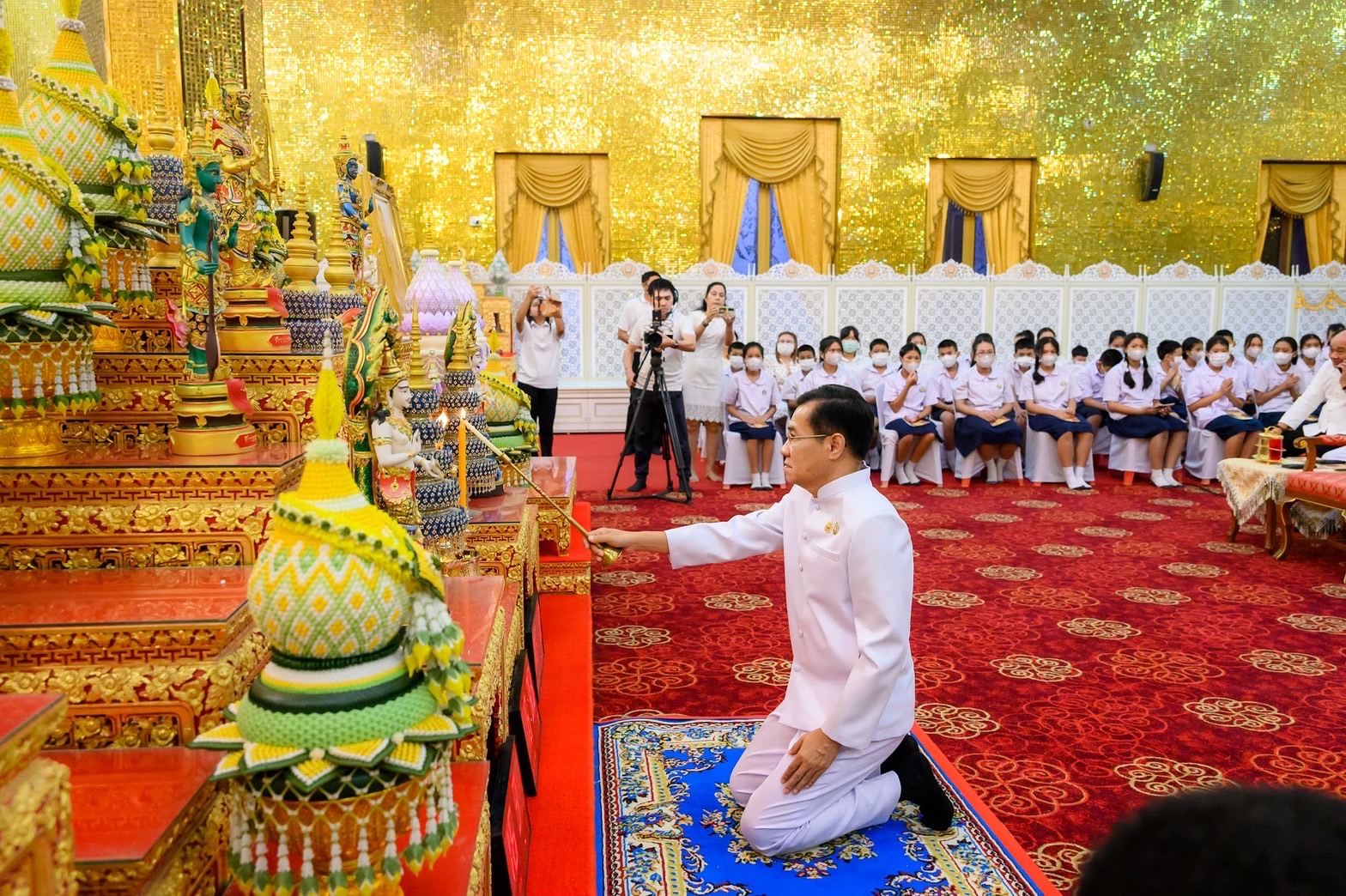 ในการนี้ รองผู้ว่าราชการจังหวัดนครปฐม ประธานในพิธีจุดธูปเทียนบูชาพระรัตนตรัย จากนั้นถวายดอกไม้ธูปเทียนแพ เบื้องหน้าพระบรมฉายาลักษณ์พระบาทสมเด็จพระเจ้าอยู่หัวฯและสมเด็จพระนางเจ้าสุทิดา พัชรสุธาพิมลลักษณ พระบรมราชินี ประธานสงฆ์ให้ศีล เจ้าหน้าที่อาราธนาพระปริตร พระสงฆ์ทั้งนั้นเจริญพระพุทธมนต์