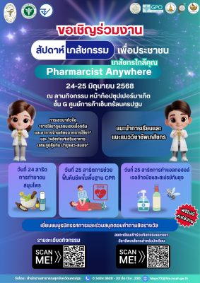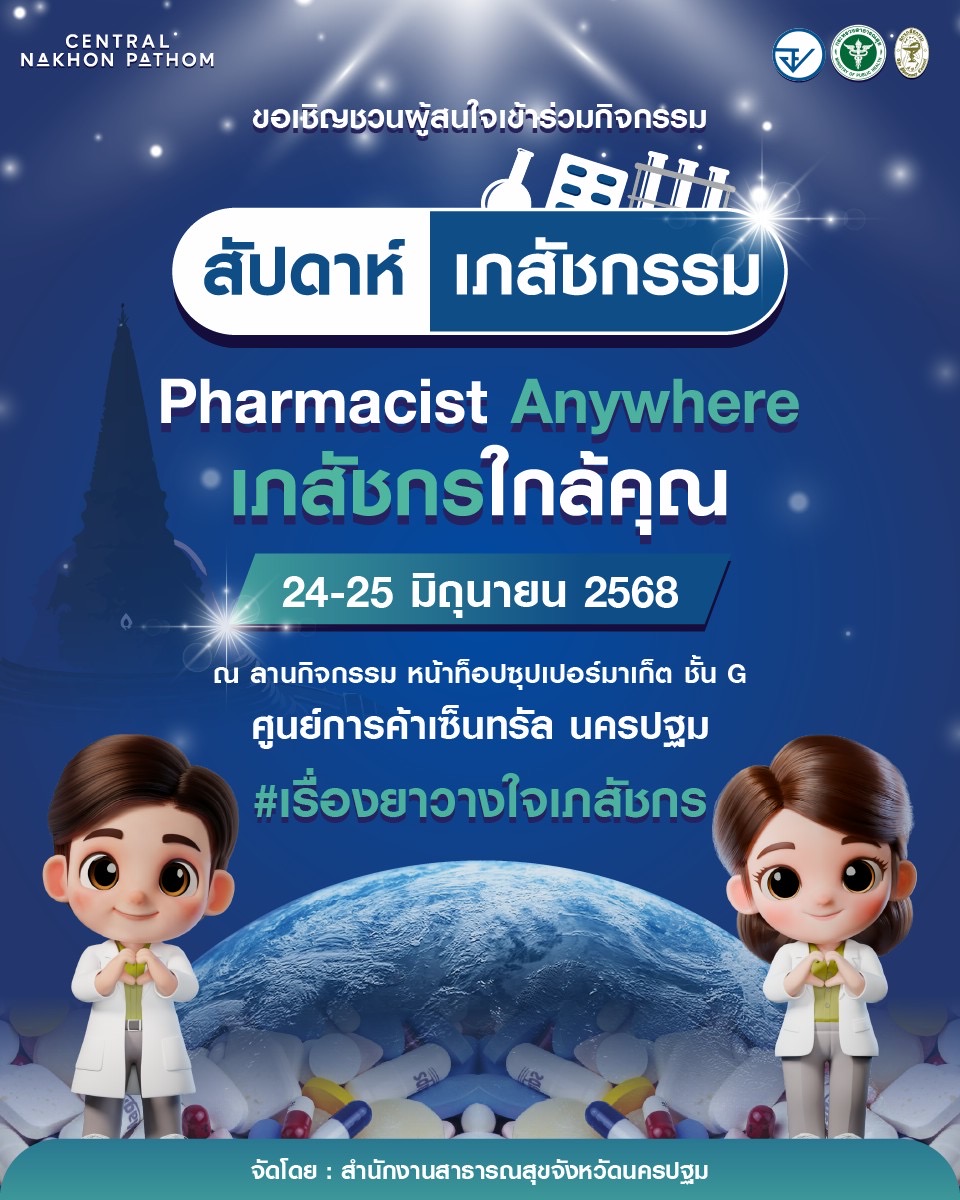 โดยการการจัดงานจะมีขึ้นในระหว่างวันที่ 24 – 25 มิถุนายน 2568 ณ ลานกิจกรรม หน้าท็อปซุปเปอร์มาเก็ต ชั้น G เซ็นทรัล นครปฐม เวลา 10.00–20.00 น.โดย กิจกรรมเด่นภายในงาน พบกับการ เสวนาจากผู้เชี่ยวชาญวิชาชีพเภสัชกรรม การแนะแนววิชาชีพเภสัชกร สำหรับน้อง ๆ นักเรียน นักศึกษา สาธิตการทำยาดมสมุนไพร โดย เจริญสุขโอสถ เสวนา “ผลิตภัณฑ์เสริมอาหาร เสริมภูมิคุ้มกัน บำรุงผิว-สมอง” โดย อาจารย์จาก คณะเภสัชศาสตร์ ม.ศิลปากร การสาธิตการทำเจลล้างมือและสเปรย์กันยุง โดย หน่วยภูมิปัญญา ม.ศิลปากร เวิร์กช็อปสอนการทำ CPR เบื้องต้น การจัดแสดงบูธให้คำปรึกษาเรื่องยาและสุขภาพ ชวนช้อปสินค้าจากองค์การเภสัชกรรม ชมรมร้านยานครปฐม ผลิตภัณฑ์สมุนไพรจากท้องถิ่น การจัดบูธนักศึกษาเภสัชฯ ม.ศิลปากลและการแสดงดนตรีสดจาก Music 9 Academy โดยมีเภสัชกรทุกหน่วยงาน พร้อมให้คำปรึกษา เข้าใจการใช้ยาอย่างถูกต้อง