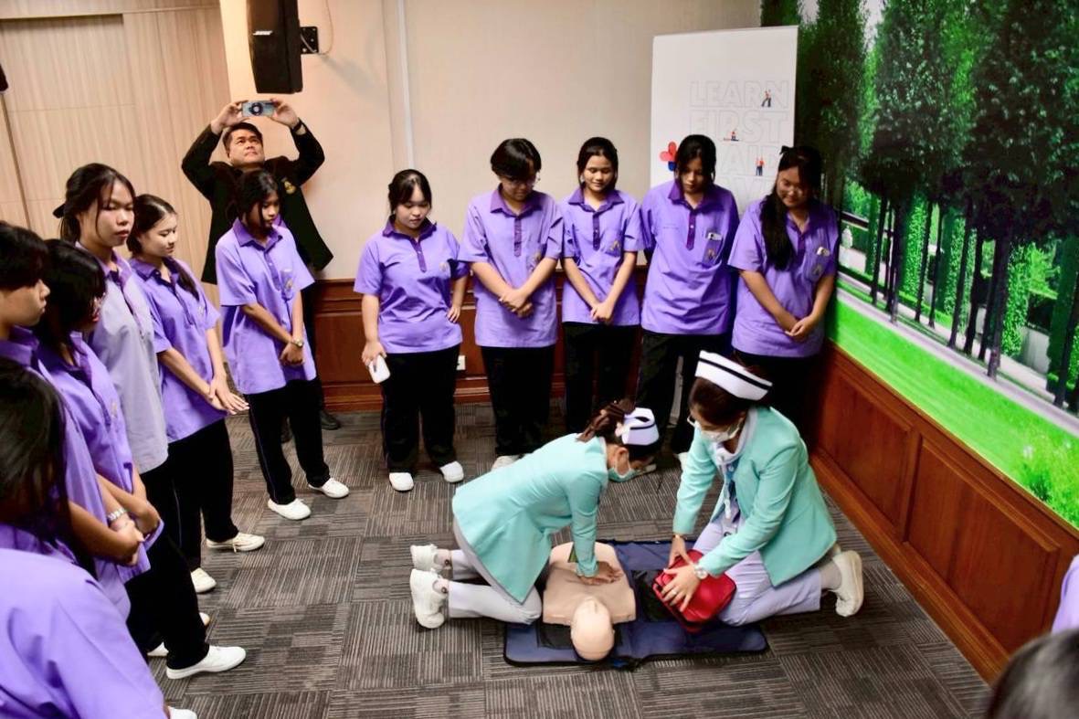 เมื่อวันที่ 19 มิถุนายน 2568 เวลา 09.00 – 12:00 น. ที่โรงพยาบาลพญาไท 3 ถนนเพชรเกษม เขตภาษีเจริญ กรุงเทพฯ นายแพทย์อภิชัย โตวณะบุตร ผู้ช่วยผู้อำนวยการแพทย์โรงพยาบาลพญาไท 3 พร้อมด้วยนายอนันต์ นิลมานนท์ นายกสมาคมหนังสือพิมพ์ส่วนภูมิภาคแห่งประเทศไทย (สภท.60 ปี), นายธวัชชัย เฟื่องอนันต์ กรรมการ สภท., น.ส.สุพัตรา สมถวนิช กรรมการและรองเลขาธิการ สภท. และนายจรุงพันธ์ ก่อเกียรติตระกูล ที่ปรึกษา สภท.และอุปนายกสมาคมนักเรียนเก่านวลนรดิศ โดยมีว่าที่ร้อยตรีปริญญา ตาแจ่ม รองผู้อำนวยการกลุ่มบริหารวิชาการโรงเรียนวัดนวลนรดิศ นำคณะอาจารย์และนักเรียนระดับชั้นมัธยมศึกษา จำนวน 101 คน เข้าร่วมโครงการการปฐมพยาบาลและการช่วยเหลือชีวิตขั้นพื้นฐาน (CPR)