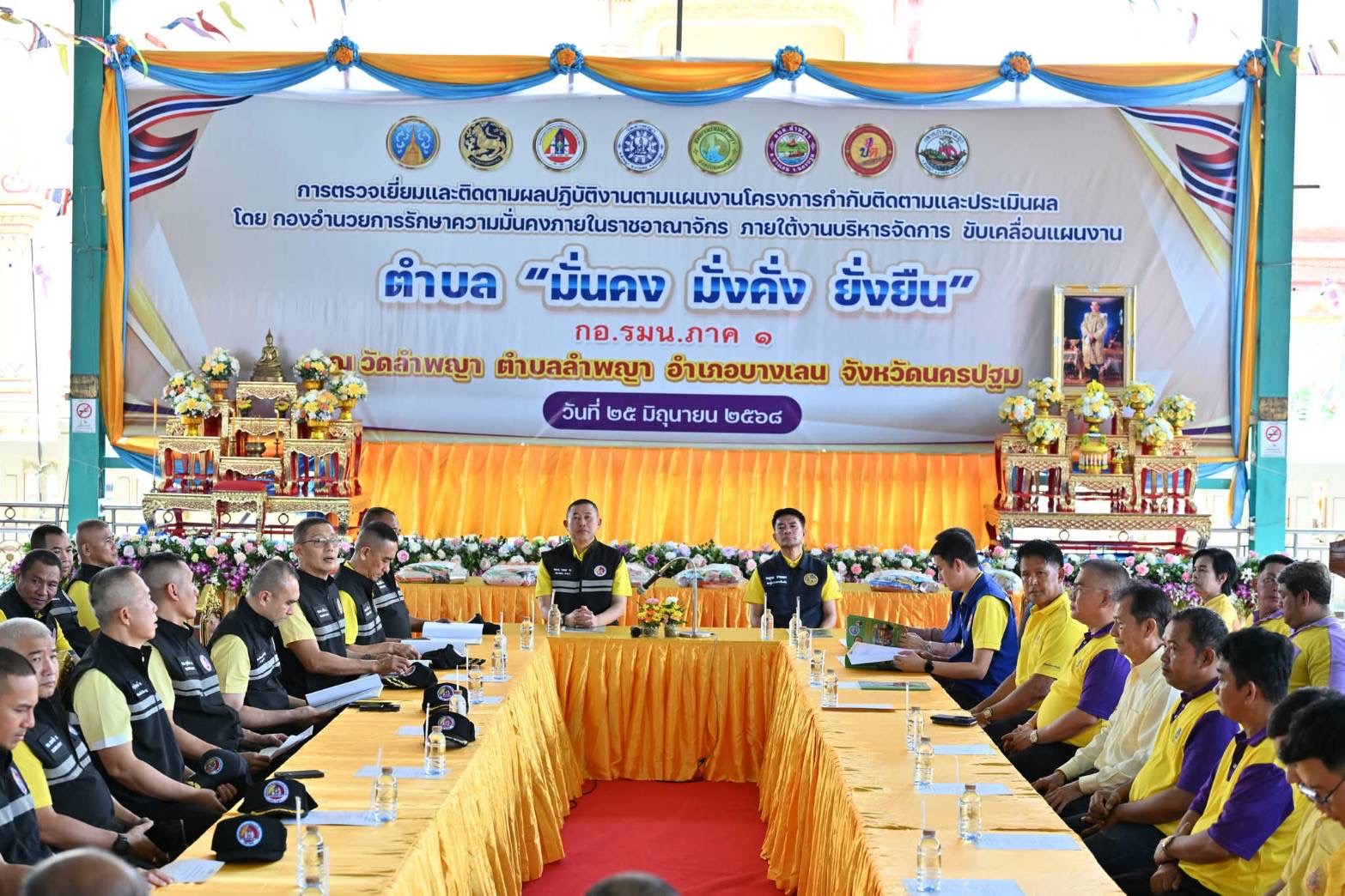 วันที่ 25 มิถุนายน 2568 ที่ห้องประชุม ศาลากลางจังหวัดนครปฐม พลโท วรยส เหลืองสุวรรณ แม่ทัพน้อยที่ 1 / รองผู้อำนวยการรักษาความมั่นคงภายในภาค 1 พร้อมคณะ ลงพื้นที่ตรวจเยี่ยมและติดตามผลการปฏิบัติงานของกองอำนวยการรักษาความมั่นคงภายในจังหวัด ครั้งที่ 5 กลุ่มจังหวัดภาคกลางปริมณฑล ประกอบด้วย จังหวัดนครปฐม นนทบุรี ปทุมธานี และสมุทรปราการ ประจำปีงบประมาณ 2568 เพื่อรับทราบสถานการณ์ ด้านภัยคุกคามความมั่นคงในพื้นที่ ผลการปฏิบัติงาน และปัญหาข้อขัดข้อง ข้อเสนอแนะ โดยมีนายยงยุทธ สวนทอง รองผู้ว่าราชการจังหวัดนครปฐม รองผู้ว่าราชการจังหวัด รองผู้อำนวยการรักษาความมั่นคงภายในกลุ่มจังหวัดภาคกลางปริมณฑล ตลอดจนผู้แทนหน่วยงานที่เกี่ยวข้อง ร่วมบรรยายสรุปผลการดำเนินการแก้ไขปัญหาหมอกควันและฝุ่นละออง PM 2.5 อีกทั้งแนวทางการแก้ไขปัญหา ความปลอดภัยในชีวิตและทรัพย์สินของประชาชน จากกรณีปัญหาหนี้สิน การแก้ไขปัญหายาเสพติด กิจกรรมด้านจิตอาสา การสร้างเครือข่ายมวลชนของชุดปฏิบัติงานต่างๆ การดำเนินตามโครงการเพชรในตม ตลอดจนแผนงานเตรียมรับมือปัญหาภัยแล้ง และการดำเนินงานโครงการตำบล มั่นคง มั่งคั่ง ยั่งยืน และกิจกรรมตำบลที่โดดเด่นในแต่ละจังหวัด