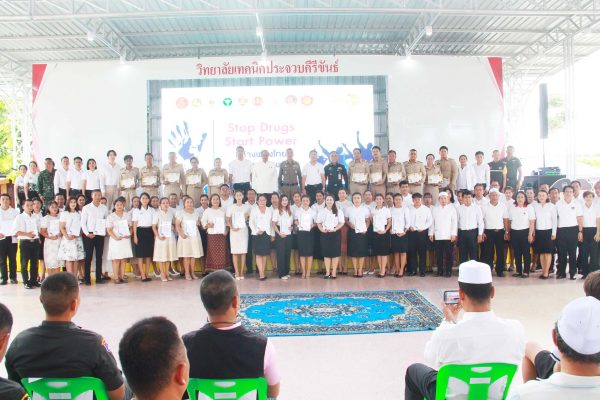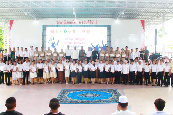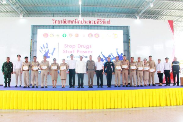 ด้าน นายสุธี เล้าสุบินประเสริฐ ปลัดจังหวัดฯ ในฐานะเลขา ศอ.ปส.จังหวัด กล่าวว่า ในปี 2568 นี้ สำนักงานคณะกรรมการป้องกันและปราบปรามยาเสพติด ( ป.ป.ส.) ได้กำหนดให้มีการจัดกิจกรรมรณรงค์ภายใต้กรอบแนวคิด “Stop Drugs, Start Power สร้างพลังไทย หยุดภัยยาเสพติด” ศูนย์อำนวยการป้องกันและปราบปรามยาเสพติดจังหวัดประจวบฯ จึงได้บูรมาการการจัดกิจกรรมร่วมกับหน่วยงาน องค์กรภาคี ที่เกี่ยวขัองทั้งกาศรัฐ ภาคเอกชนและภาคประชาชน โดยมีจุดมุ่งหมายในการแก้ไขปัญหายาเสพติดอย่างครบวงจร รวมถึงการรณรงค์ประชาสัมพันธ์สร้างการรับรู้ให้กับประชาชน ให้มีความเข้าใจและตระหนักถึงภัยคุกคามของยาเสพติด และให้ความสำคัญในการแก้ไขปัญหายาเสพติด ตลอดจนเพื่อให้ประชาชนเข้ามามีส่วนร่วมในการป้องกันและแก้ไขปัญหายาเสพติดในหมู่บ้าน ชุมชน และประเทศชาติ ให้ปลอดภัยจากยาเสพติดอย่างยั่งยืน การจัดกิจกรรมครั้งนี้ มีนักเรียน นักศึกษา ลูกเสือด้านยาเสพติด พลังมวลชน ทั้งข้าราชการพลเรือน ตำรวจ ทหาร กำนัน ผู้ใหญ่บ้าน องค์กรปกครองส่วนท้องถิ่น ชุดรักษาความปลอดภัยหมู่บ้านและประชาชน เข้าร่วมกิจกรรม รวมทั้งสิ้นจำนวน 500 คน โดยได้รับการสนับสนุนจากทุกภาคส่วนเป็นอย่างดียิ่ง
