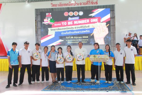 เมื่อเวลา 14.00 น. วันที่ 26 มิ.ย.68 นายสิทธิชัย สวัสดิ์แสน ผู้ว่าราชการจังหวัดประจวบคีรีขันธ์ เป็นประธานเปิดกิจกรรมเนื่องในวันต่อต้านยาเสพติดโลก (26 มิถุนายน) ประจำปี 2568 โดยมี นายสุธี เล้าสุบินประเสริฐ ปลัดจังหวัดฯ กล่าวรายงาน มี นายปรีดา สุขใจ รองผู้ว่าราชการจังหวัดฯ พล.ต.ต.นครินทร์ สุคนธวิท ผบก.ภ.จว.ประจวบฯ นายยูซบ โต๊ะวัง ประธานคณะกรรมการอิสลามประจำจังหวัดฯ น.ส.ทิพย์วารี ชมชื่น นักวิเคราะห์นโยบายและแผนชำนาญการ สำนักงานป้องกันและปราบปรามยาเสพติด(ป.ป.ส.)ภาค 7 หัวหน้าส่วนราชการ ข้าราชการ ผู้แทนหน่วยงาน ทหาร ตำรวจ กำนัน ผู้ใหญ่บ้าน องค์กรปกครองส่วนท้องถิ่น ผู้บริหารสถานศึกษา สมาชิกชมรม TO BE NUMBER ONE ในแต่ละสถานศึกษา สมาชิกกองทุนแม่ของแผ่นดิน ชุดรักษาความปลอดภัยหมู่บ้าน ลูกเสือต้านยาเสพติด เจ้าหน้าศูนย์อำนวยการป้องกันและปราบปรามยาเสพติดจังหวัด(ศอ.ปส.) เจ้าหน้าที่ ป.ป.ส.ภาค 7 กลุ่มพลังมวลชน นักเรียน นักศึกษา และประชาชน เข้าร่วม ณ โดมอเนกประสงค์ วิทยาลัยเทคนิคประจวบคีรีขันธ์ (ฝั่งพณิชยการ) ถ.สละชีพ อ.เมือง จ.ประจวบคีรีขันธ์