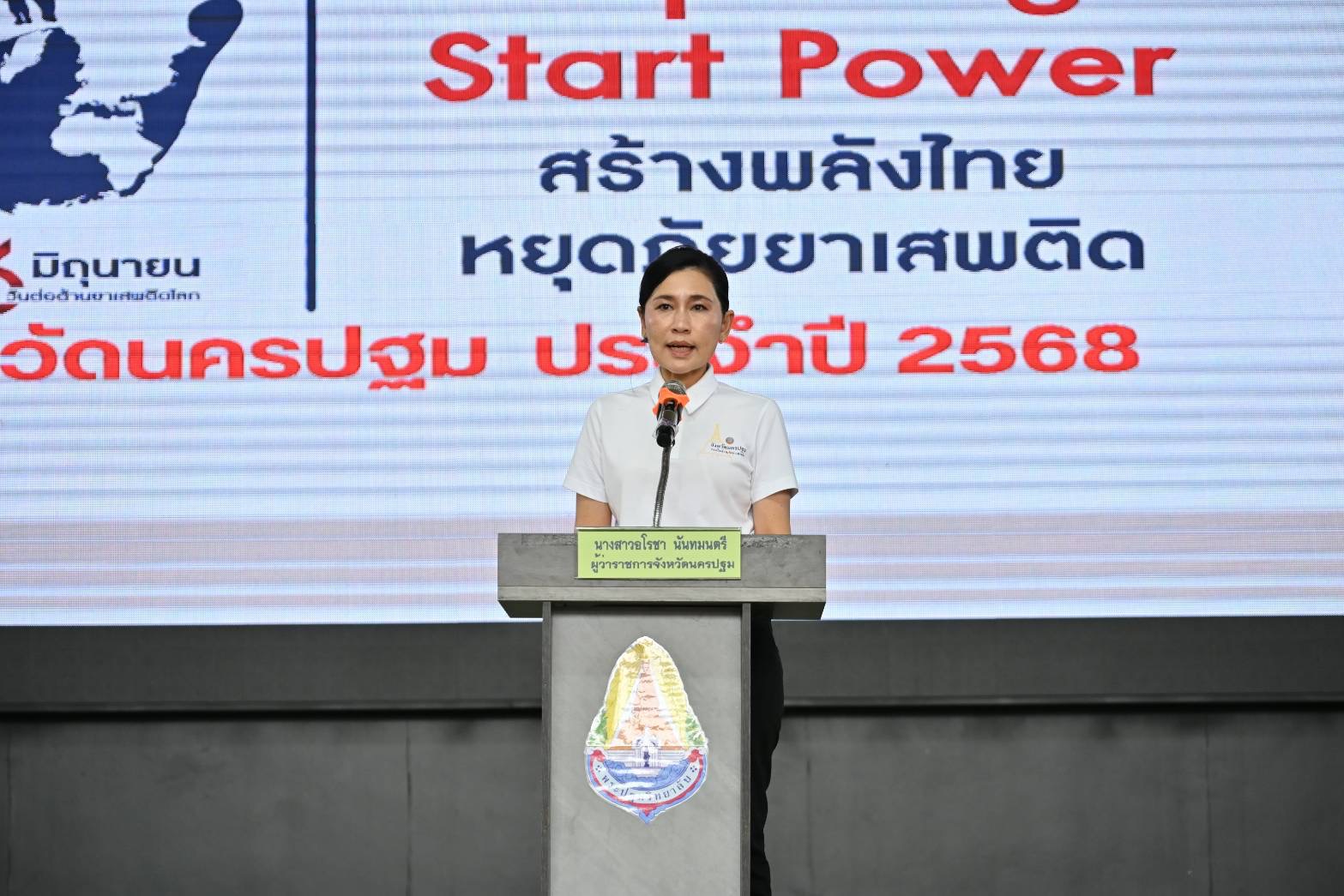 นายพัฒนพงษ์ สร้อยอินทรากุล ปลัดจังหวัดนครปฐม กล่าวว่า ศูนย์อำนวยการป้องกันและปราบปรามยาเสพติดจังหวัดนครปฐม ได้จัดกิจกรรมรณรงค์ประชาสัมพันธ์เพื่อสร้างการรับรู้เนื่องในวันต่อต้านยาเสพติดโลก ประจำปี 2568 ภายใต้กรอบแนวคิดและคำขวัญ “ stop drugs start power สร้างพลังไทยหยุดภัยยาเสพติด” ซึ่งมีกลุ่มเป้าหมายหลักคือ ครอบครัว หมู่บ้าน ชุมชน สถานประกอบการ สถานศึกษา เด็กและเยาวชน หน่วยงานองค์กรภาคีเครือข่าย ทางภาครัฐและเอกชน เพื่อให้กลุ่มเป้าหมายได้รับรู้และตระหนักถึงความสำคัญของวันต่อต้านยาเสพติดโลก รวมถึงมีภูมิคุ้มกันและมีความเข้าใจเกี่ยวกับโทษและภัยของยาเสพติด ตลอดจนสร้างกระแสตื่นตัว เฝ้าระวังและเข้ามามีส่วนร่วม ในการป้องกันและแก้ไขปัญหายาเสพติด และจูงใจผู้ติดยาเสพติดเข้าสู่การบำบัดรักษาอย่างครบกระบวนการ ทำให้มีโอกาสกลับมาเริ่มต้นชีวิตใหม่ในสังคมอย่างปกติ นอกจากนี้เพื่อให้กลุ่มเป้าหมายและทุกภาคส่วนมีความเข้าใจเกี่ยวกับนโยบายการแก้ไขปัญหายาเสพติดของรัฐบาล ที่ต้องการลดความเดือดร้อนของประชาชนจากปัญหายาเสพติด รวมถึงสร้างความเชื่อมั่นในการดำเนินงานด้านยาเสพติดของรัฐบาลและหน่วยงานที่เกี่ยวข้อง