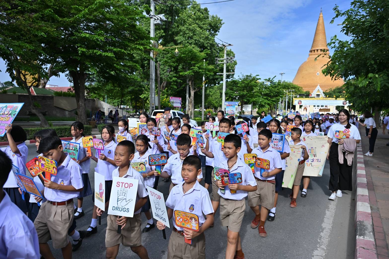 สำหรับกิจกรรมรณรงค์ประชาสัมพันธ์เพื่อสร้างการรับรู้เนื่องในวันต่อต้านยาเสพติดโลก ประจำปี 2568 ในวันนี้ประกอบด้วย กิจกรรมเดินรณรงค์ประชาสัมพันธ์ของนักเรียน ซึ่งเดินขบวนจากองค์พระปฐมเจดีย์ไปตามถนนเทศามุ่งหน้าสู่โรงเรียนพระปฐมวิทยาลัย อำเภอเมืองนครปฐม การอ่านสารของนายกรัฐมนตรี โดยนางสาวอโรชา นันทมนตรี ผู้ว่าราชการจังหวัดนครปฐม ได้นำเยาวชน จำนวน 1200 คน กล่าวประกาศเจตนารมณ์ต่อต้านยาเสพติด