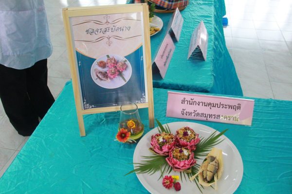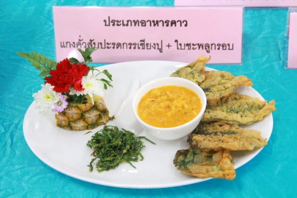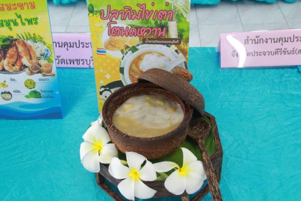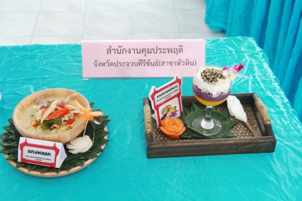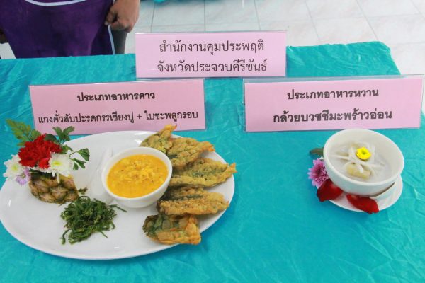 นายวสันต์ เภรีวิค ผอ.คุมประพฤติฯ จ.ประจวบฯ กล่าวต่อว่า ในส่วนทีมสำนักงานฯประจวบฯ ส่งเข้าประกวดทั้ง 2 เมนู ทั้งประเภทอาหารคาวและอาหารหวาน โดยอาหารคาว จ.ประจวบฯส่งเมนู “แกงคั่วสับปะรดกรรเชียงปูกับใบชะพลูกรอบ” และ อาหารหวาน เป็น “กล้วยบวชชีมะพร้าวอ่อน” ซึ่งทั้ง 2 เมนู ได้ใช้วัตถุดิบในพื้นถิ่นเป็นผลไม้ที่ขึ้นชื่อของจังหวัดฯ ดังคำขวัญจังหวัดประจวบฯที่ว่า “ เมืองทองเนื้อเก้า มะพร้าว สับปะรด สวยสด หาด เขา ถ้ำ” นับว่าวัตถุดิบทั้ง 2 เมนู ไม่ว่าจะเป็น สับปะรด หรือ มะพร้าว ก็ล้วนแต่เป็นผลไม้ที่ปลูกกันมากที่สุด อีกทั้งยังเป็นที่รู้จักและสร้างชื่อเสียงให้กับจังหวัดมาอย่างยาวนาน ซึ่งเข้ากับแนวคิดการจัดแข่งขันที่ให้นำวัตถุดิบที่เป็นอัตลักษณ์ของแต่ละจังหวัดมาทำอาหาร