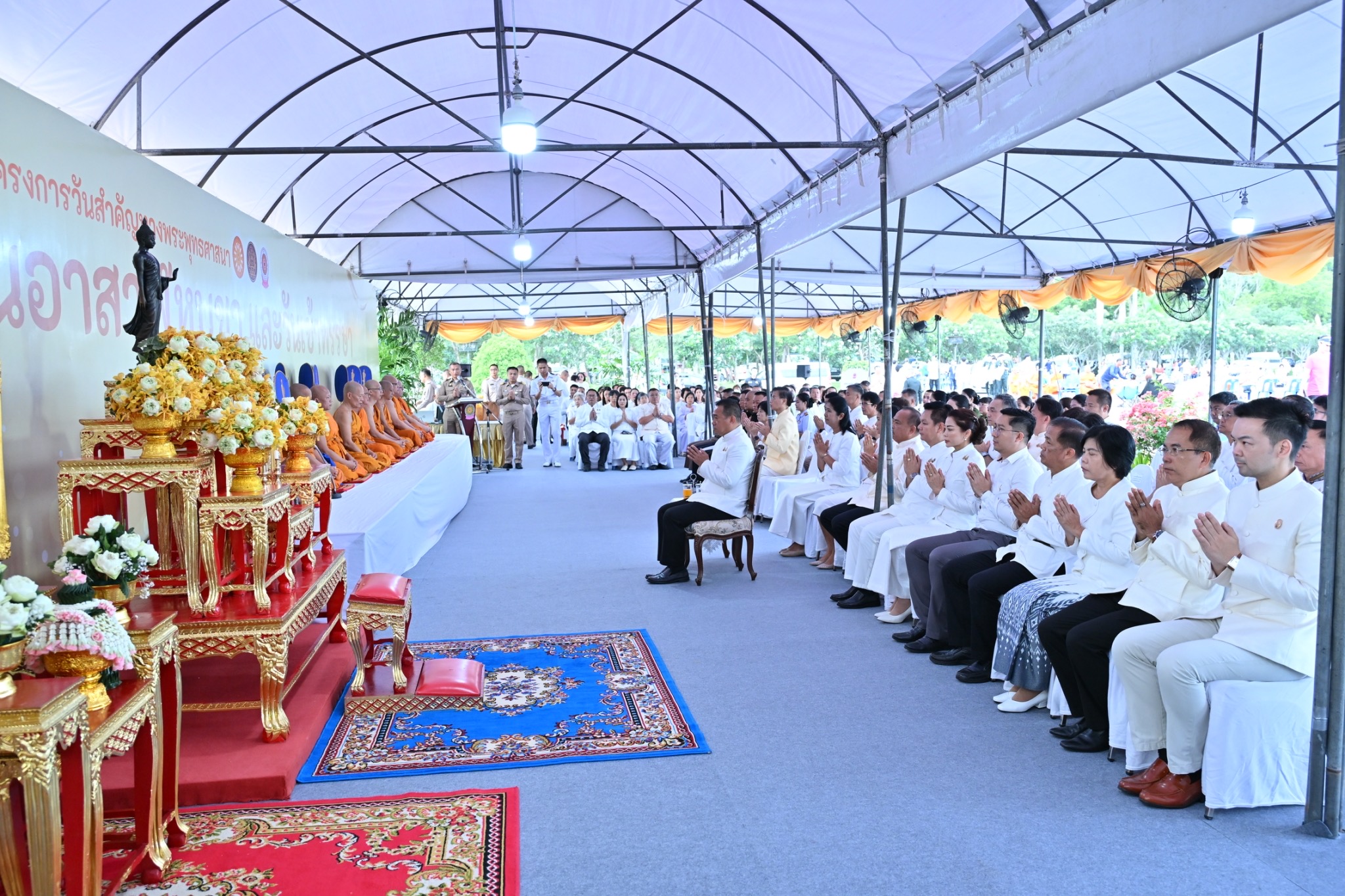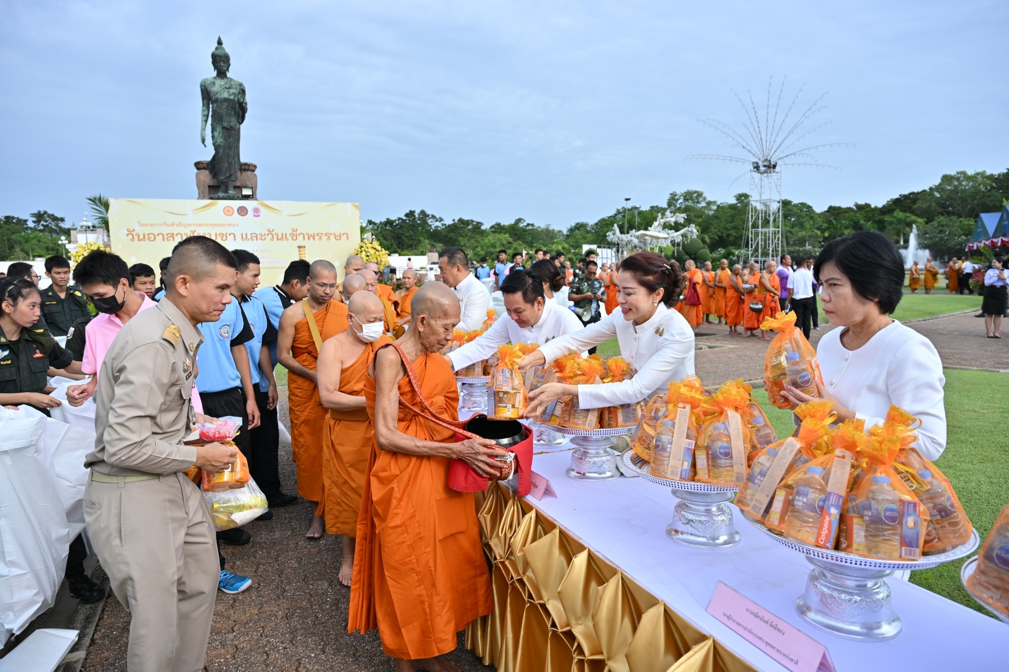 วันที่ 10 กรกฎาคม 2568 ที่บริเวณลานหน้าพระศรีศากยะทศพลญาณ ประธานพุทธมณฑลสุทรรศน์ อำเภอพุทธมณฑล จังหวัดนครปฐม นายอินทพร จั่นเอี่ยม ผู้อำนวยการสำนักงานพระพุทธศาสนาแห่งชาติ ปฏิบัติหน้าที่แทน รัฐมนตรีประจำสำนักนายกรัฐมนตรี เป็นประธานพิธีบำเพ็ญกุศลและทำบุญตักบาตร เนื่องในวันอาสาฬหบูชา ประจำปี 2568 โดยมีนายอรรถวุฒิ พึ่งเนียม รองผู้ว่าราชการจังหวัดนครปฐม พร้อมด้วย หัวหน้าส่วนราชการ ข้าราชการ ทหาร ตำรวจ ตลอดจนเจ้าหน้าที่จากหน่วยงานต่างๆ พุทธศาสนิกชนชาวจังหวัดนครปฐมและกรุงเทพมหานคร ร่วมกิจกรรมเป็นจำนวนมาก