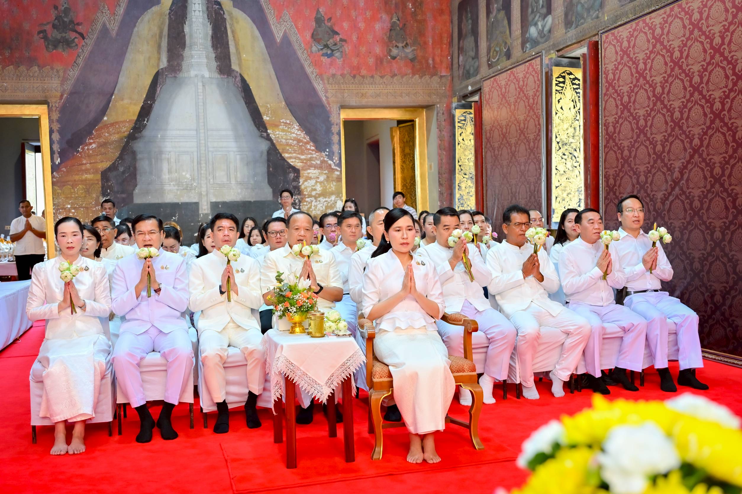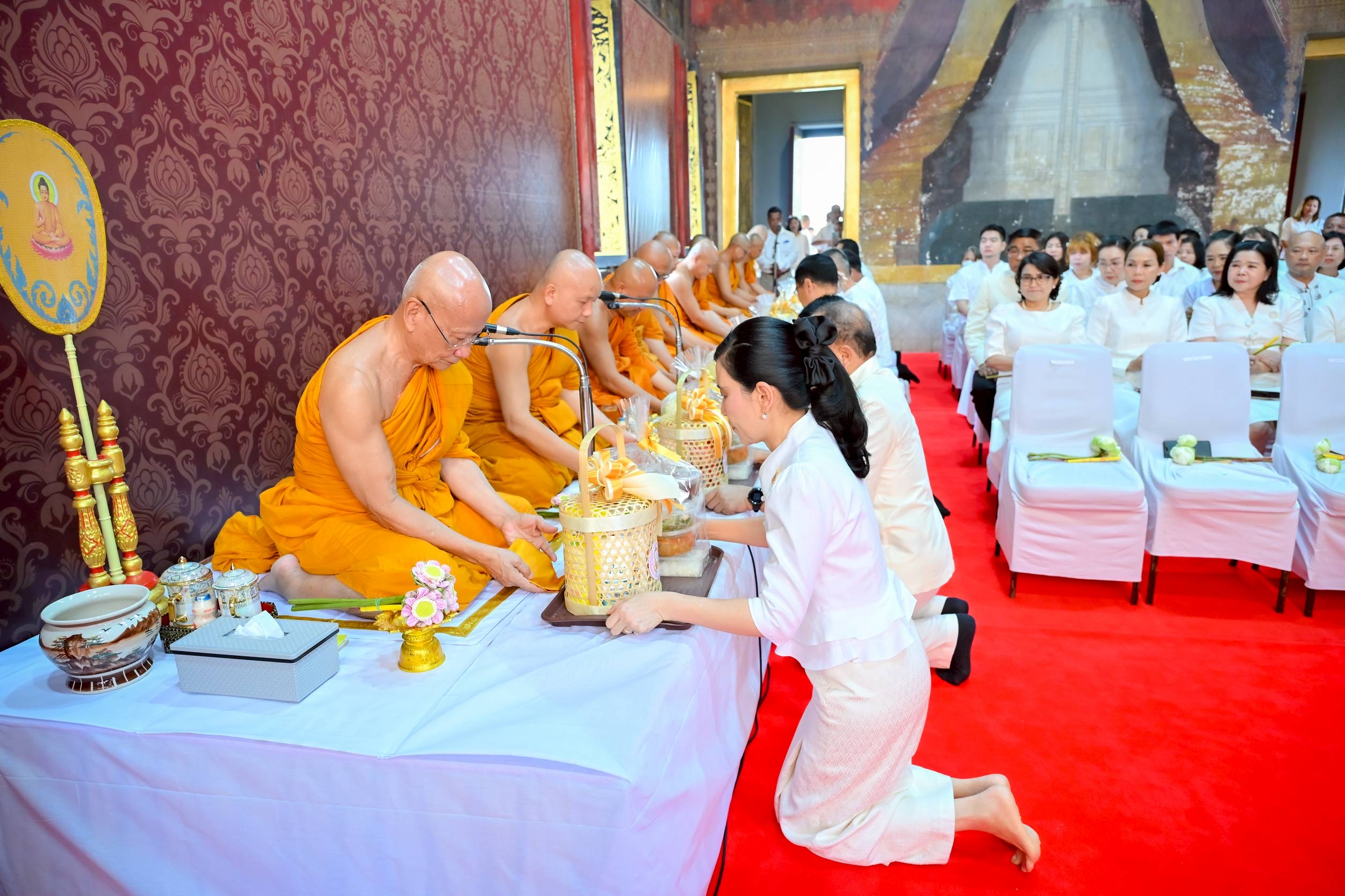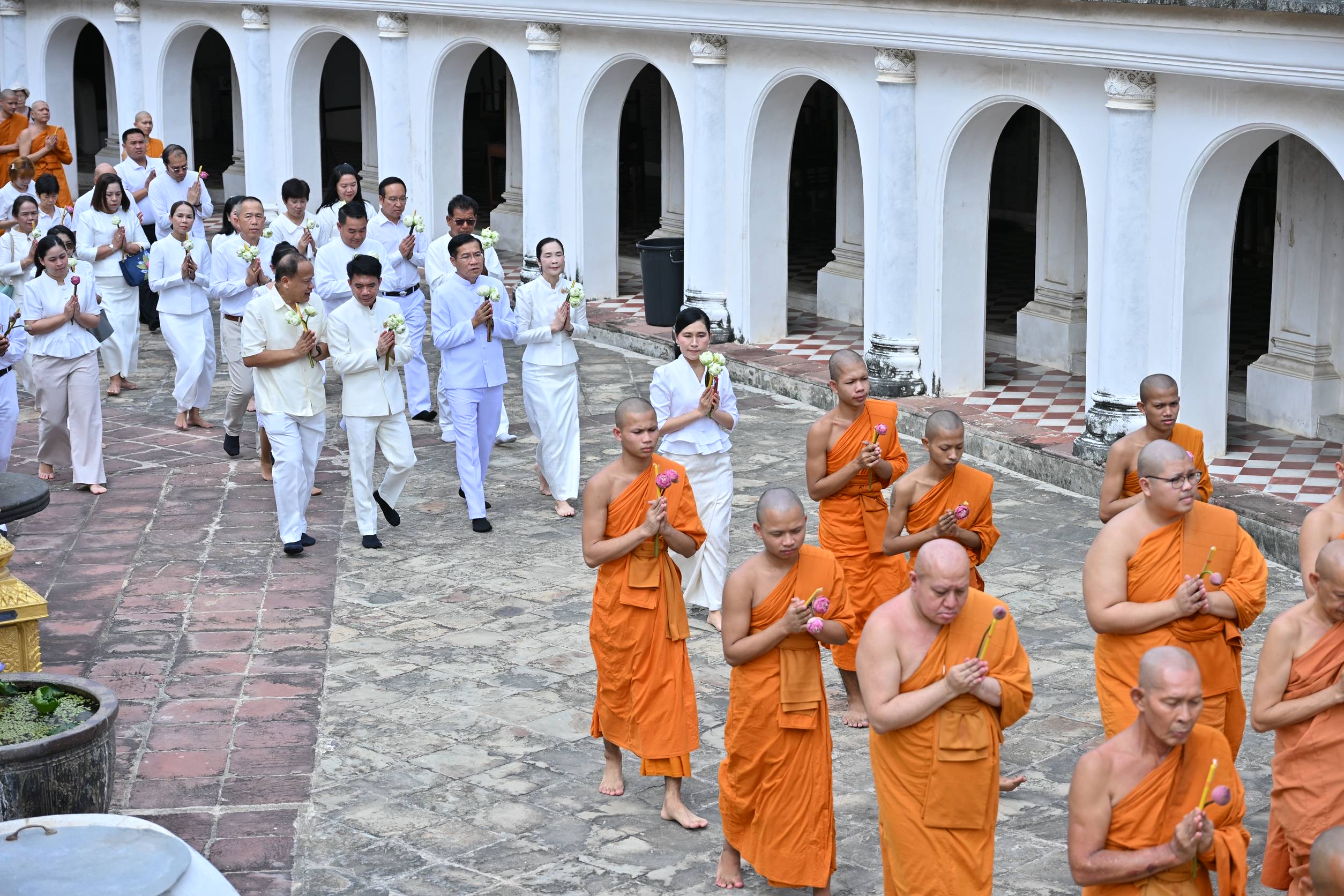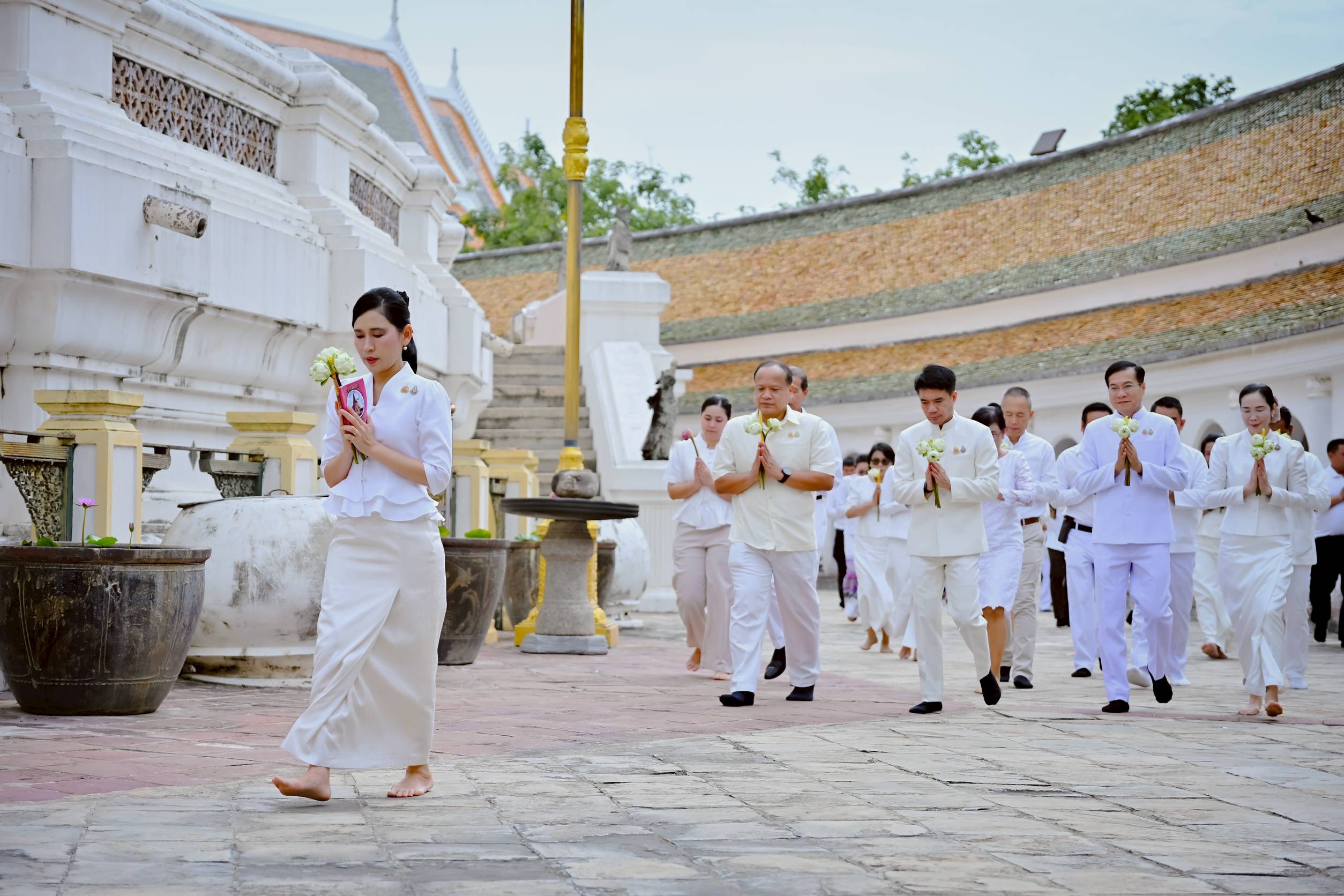 วันที่ 10 กรกฎาคม 2568 ที่บริเวณพระวิหารหลวง องค์พระปฐมเจดีย์ อำเภอเมือง จังหวัดนครปฐม นางสาวอโรชา นันทมนตรี ผู้ว่าราชการจังหวัดนครปฐม พร้อมด้วย นายรณภพ เวียงสิมมา นายยงยุทธ สวนทอง นายปรีชา ดิลกพรเมธี รองผู้ว่าราชการจังหวัด นางวันวิสาข์ ดิลกพรเมธี รองนายกเหล่ากาชาดจังหวัด หัวหน้าส่วนราชการ ข้าราชการ นักเรียน นักศึกษา และพุทธศาสนิกชนชาวจังหวัดนครปฐม ร่วมพิธีแสดงตนเป็นพุทธมามกะ และเวียนเทียนประทักษิณรอบองค์พระปฐมเจดีย์ เนื่องในวันอาสาฬหบูชา ประจำปี 2568 ซึ่งเป็นวันสำคัญทางพระพุทธศาสนา ตรงกับวันขึ้น 15 ค่ำ เดือน 8 เป็นวันที่พระพุทธเจ้าทรงประกาศพระศาสดาเป็นครั้งแรก โดยแสดงปฐมเทศนา ธรรมจักรกัปปวัตนสูตร ส่งผลให้เกิดพระสงฆ์รูปแรกขึ้นในพระพุทธศาสนา และเป็นวันแรกที่พระพุทธ พระธรรม พระสงฆ์ ครบเป็นองค์พระรัตนตรัย